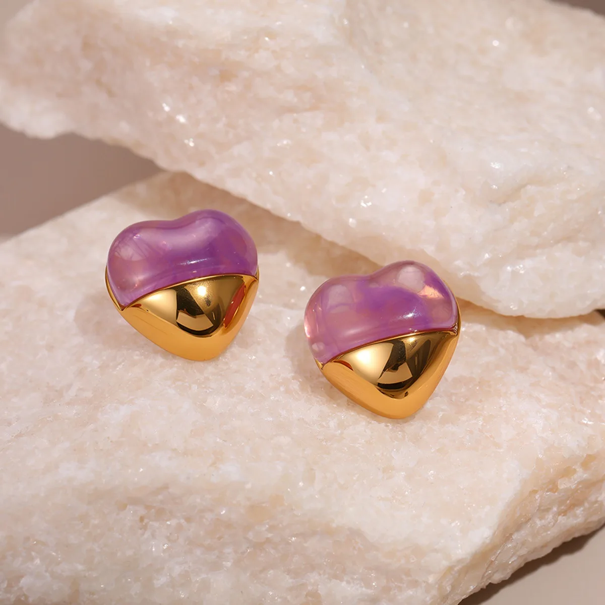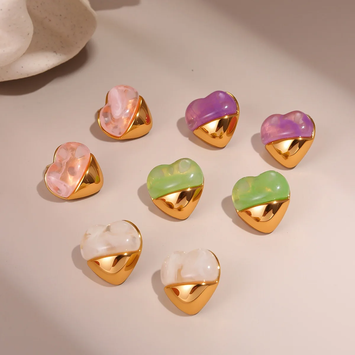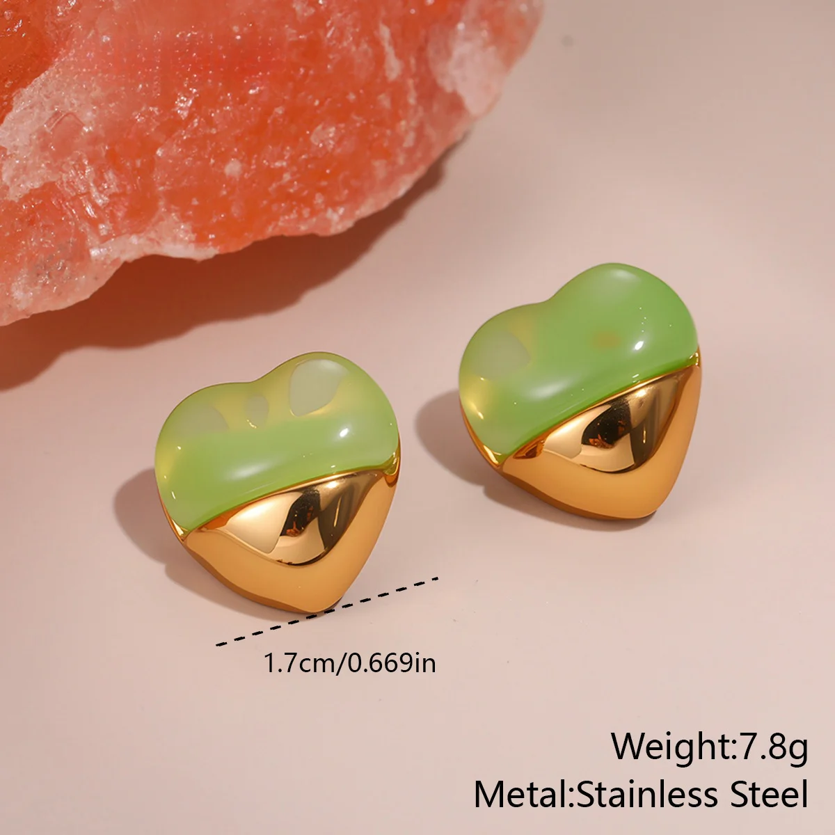 MW 18K Gold Stainless Steel Colorful Teardrop Geometric Stud Earrings Butterfly Pattern Pearl Women's Trendy Jewelry Earrings