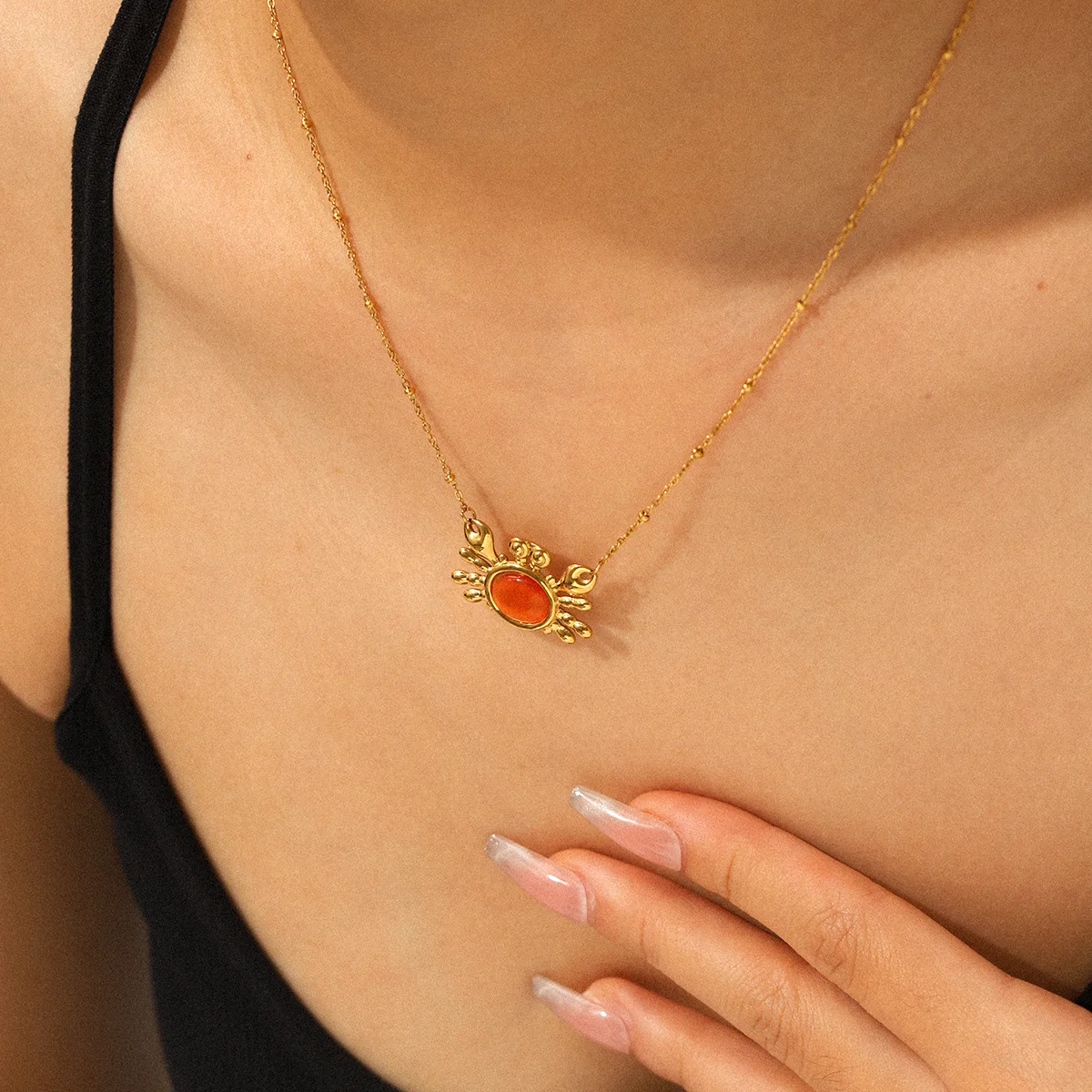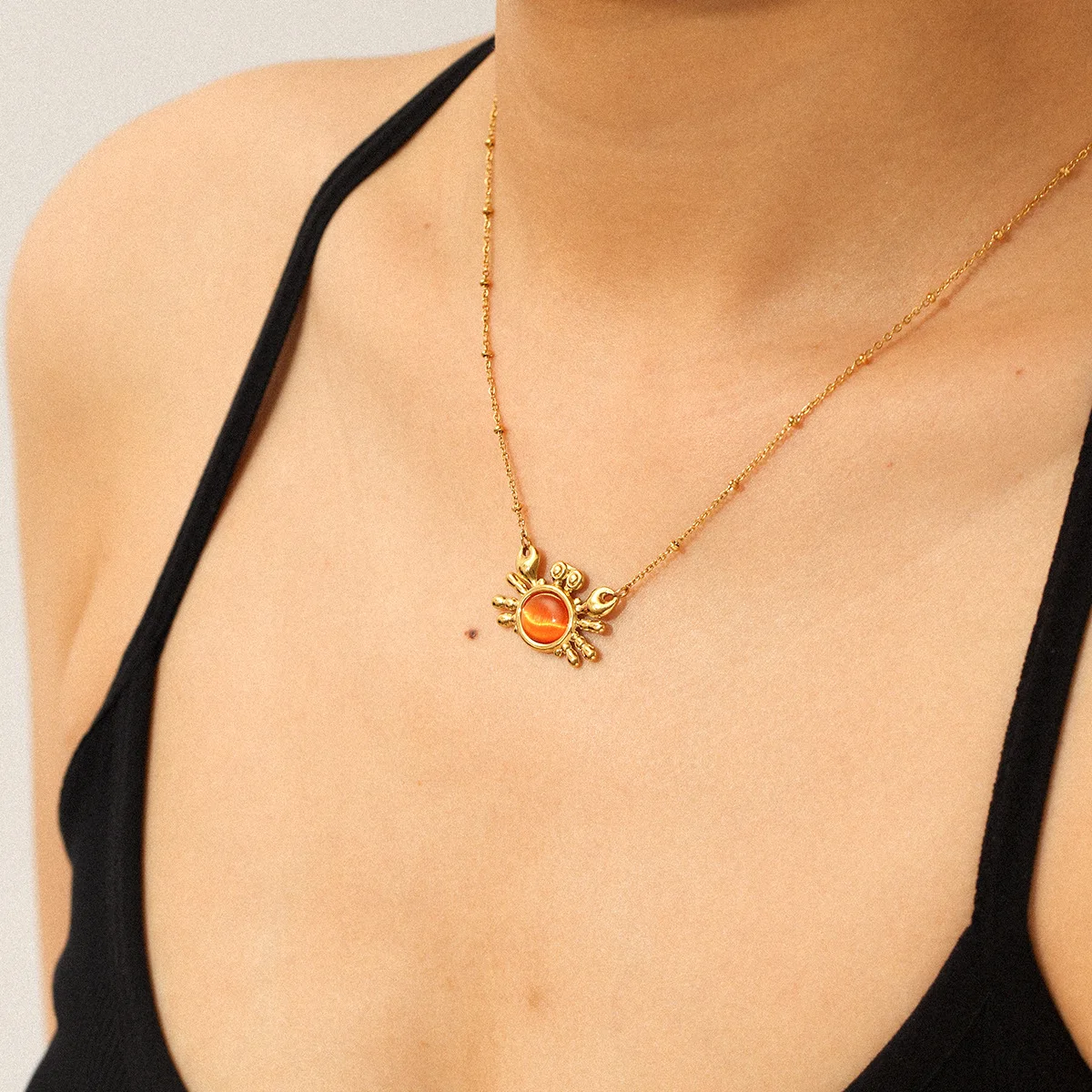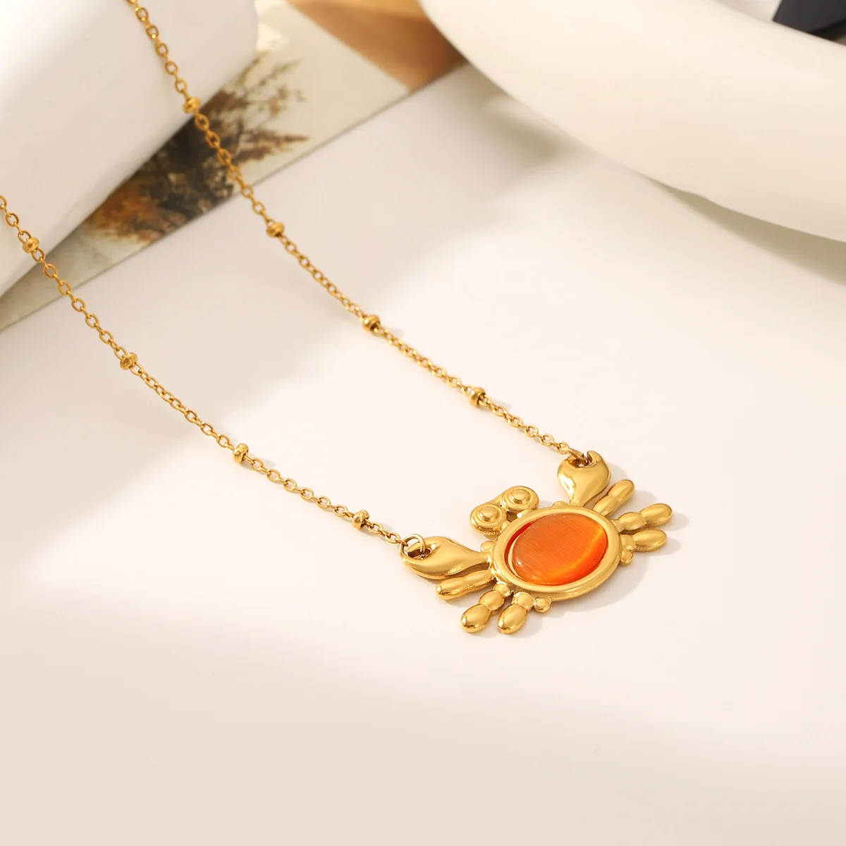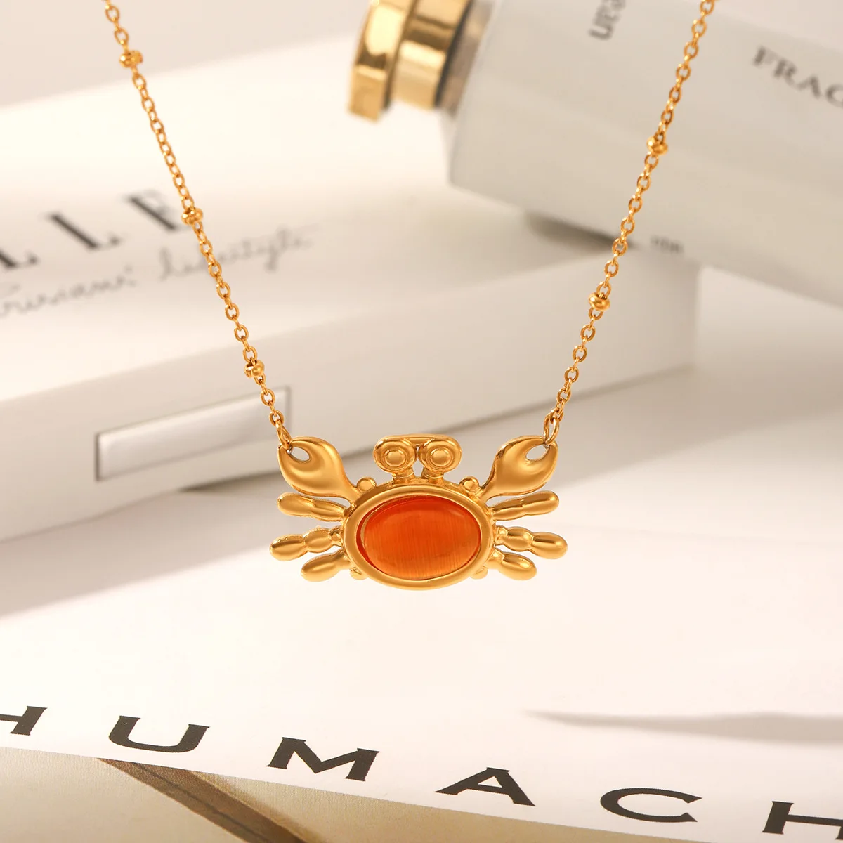 MW Summer Cute Animal Crab Cat Eye 18K Gold Plated Stainless Steel Strand Chain Necklace Gift