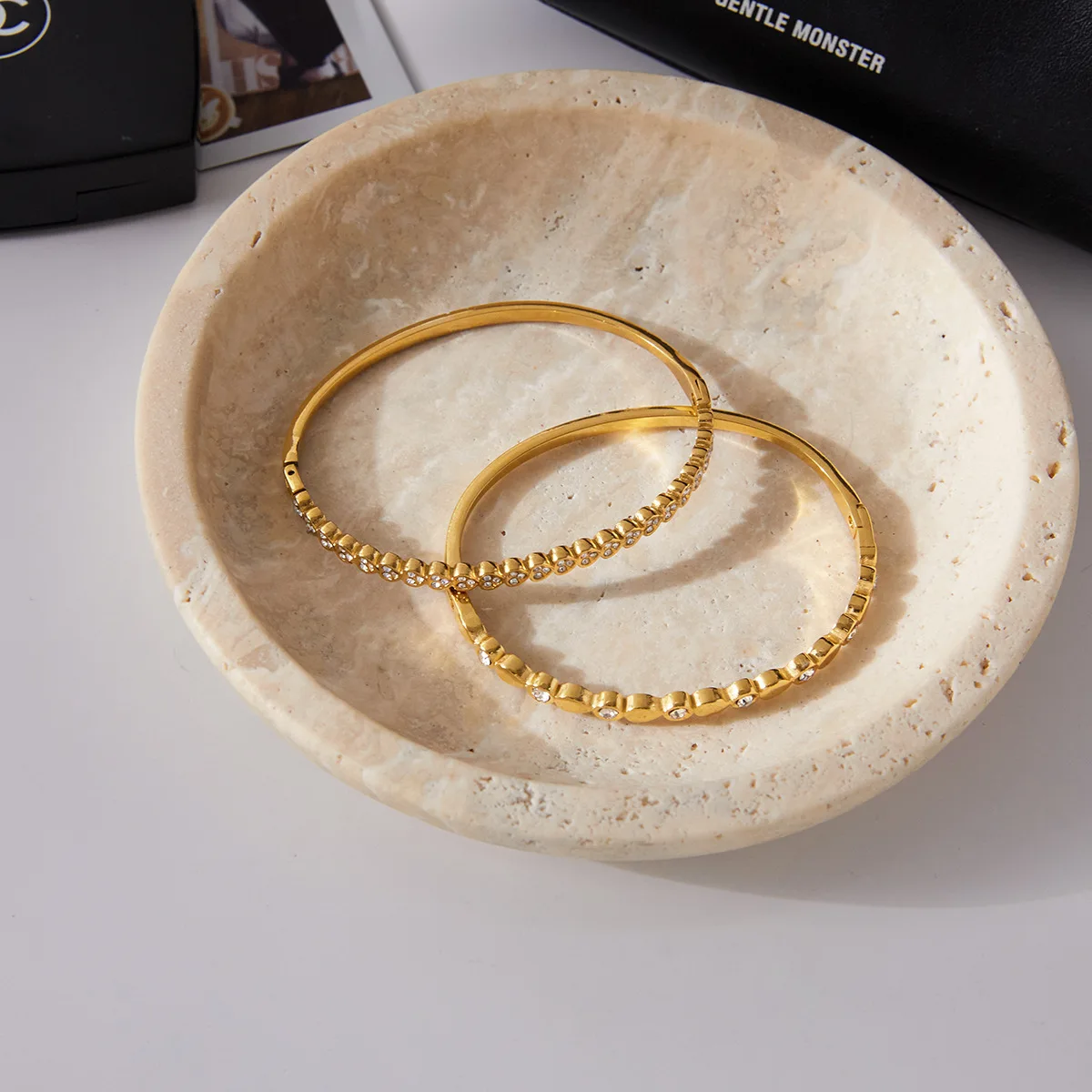 MW 18K PVD Gold-Plated Stainless Steel Waterproof Women's Trendy Bangle Round Heart Design Crystals and Zircon Hinge Closure