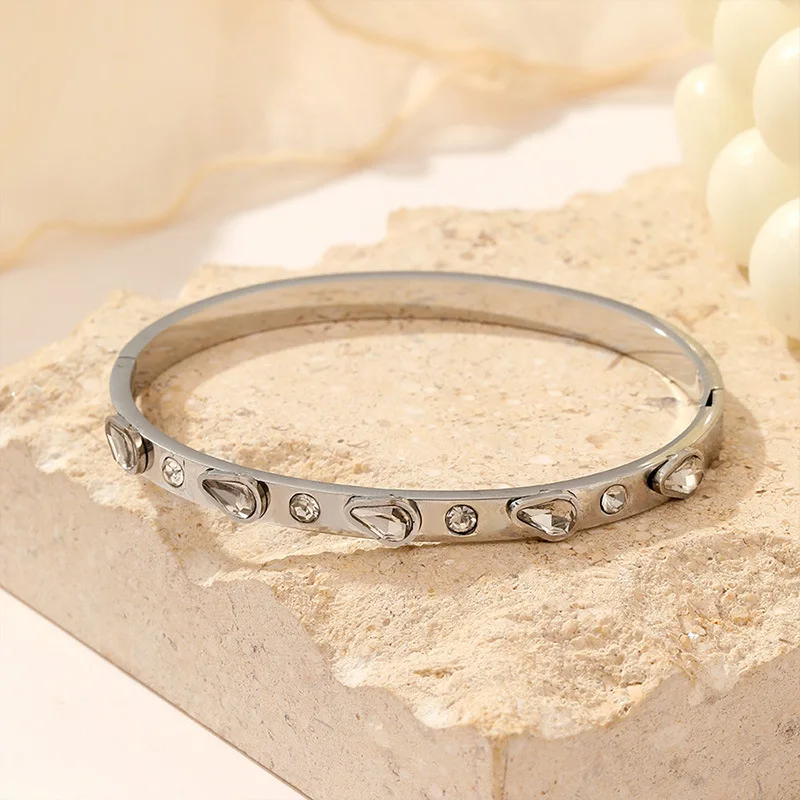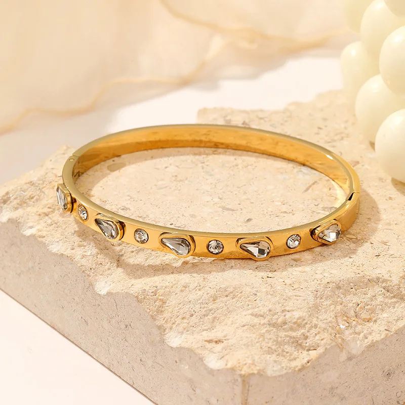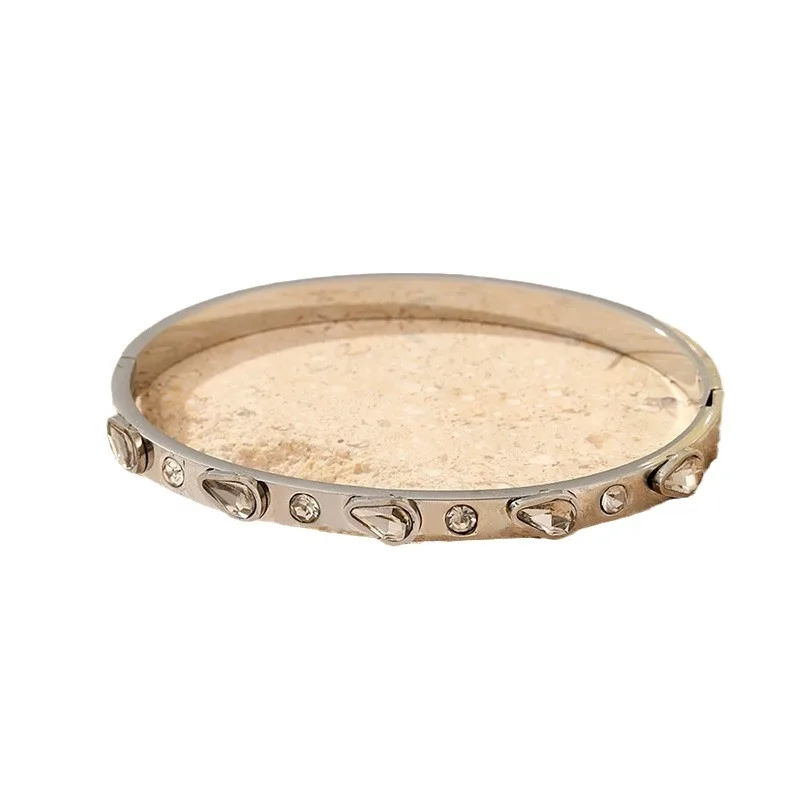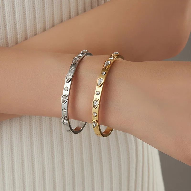 MW New Arrival Classic Stainless Steel Surround Cubic Zircon Couple Love Promise Bangle 18K Gold Plated