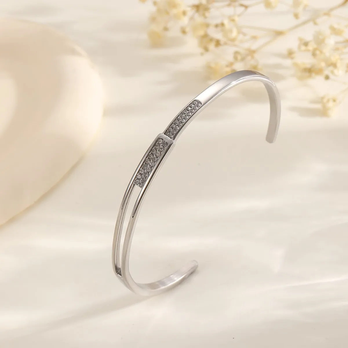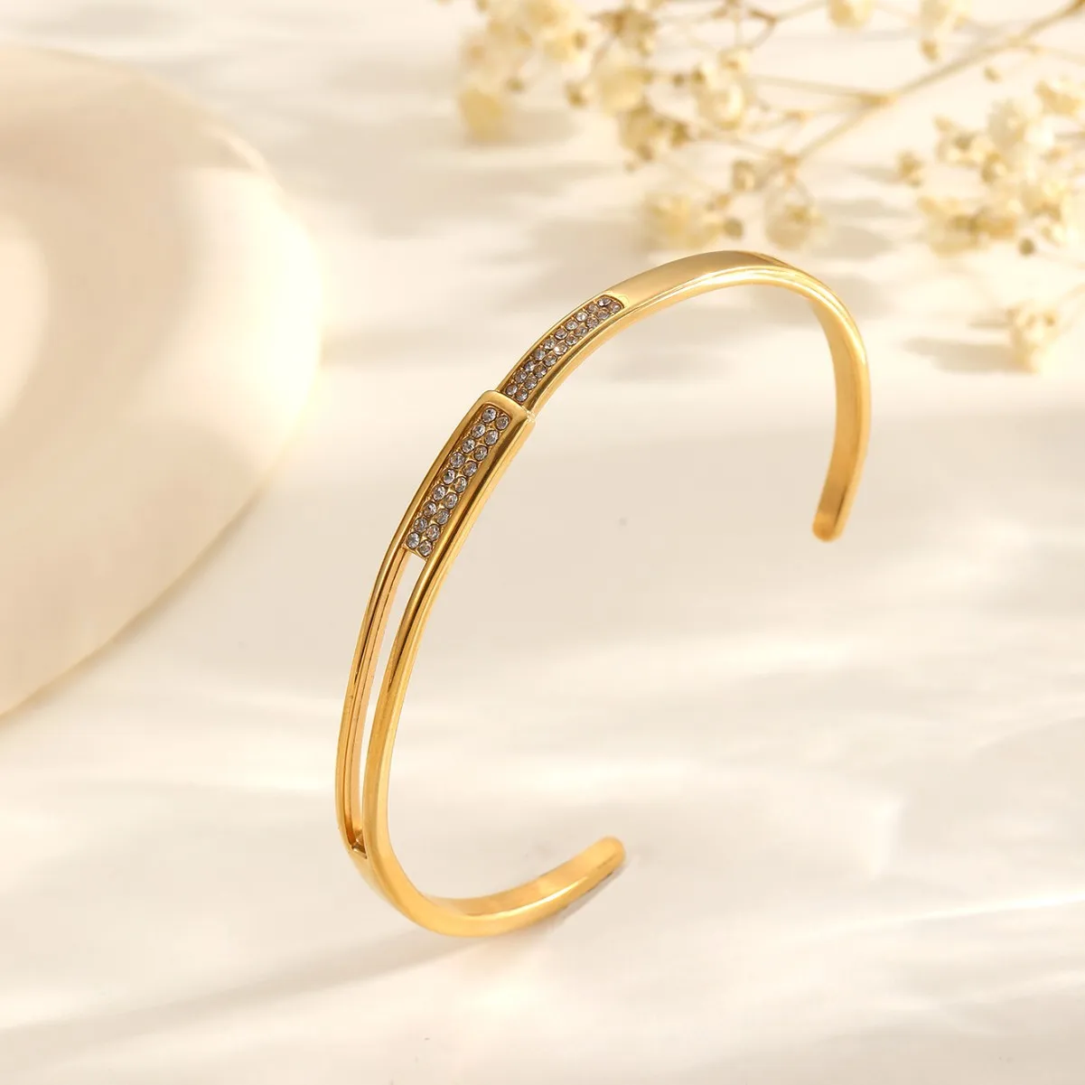 MW Small Fresh Star Zircon Fashion U-shaped Cuff Gold Plated Stainless Steel Bracelet Trendy Simple Design