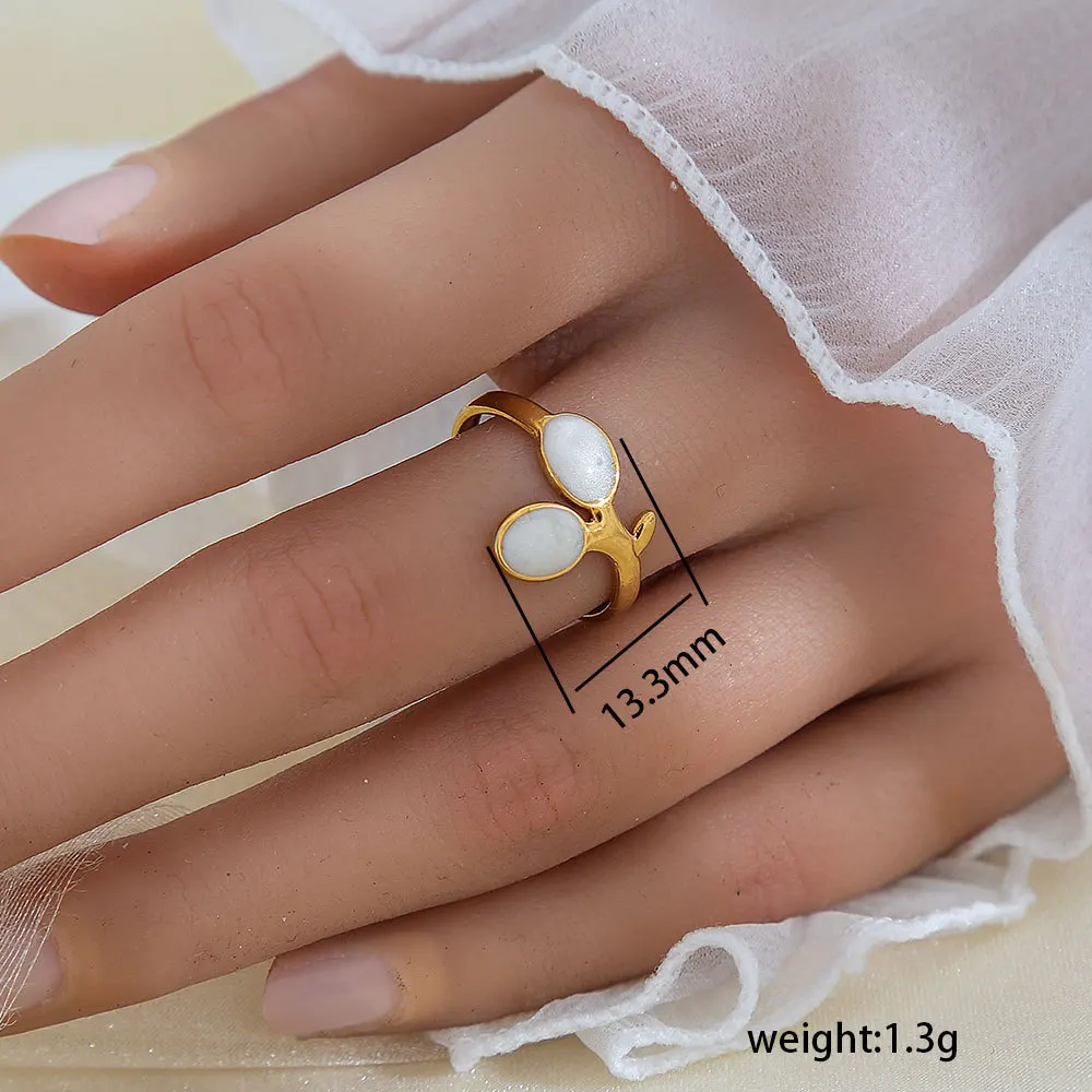 MW European American Popular Minimalist Fashion Stainless Steel Shell Leaf Ring Women's Trendy 18K Gold-Plated Personalized Ring