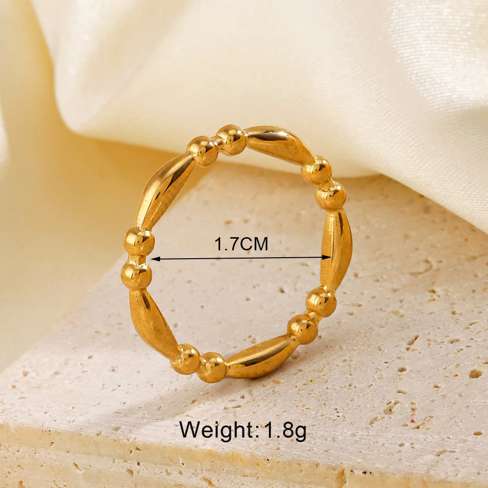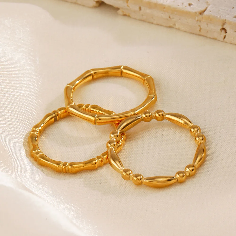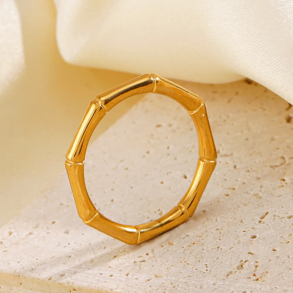 MW Minimalist Bamboo Design Stackable Wedding Ring 18K Gold Plated Stainless Steel Waterproof Women's Rings