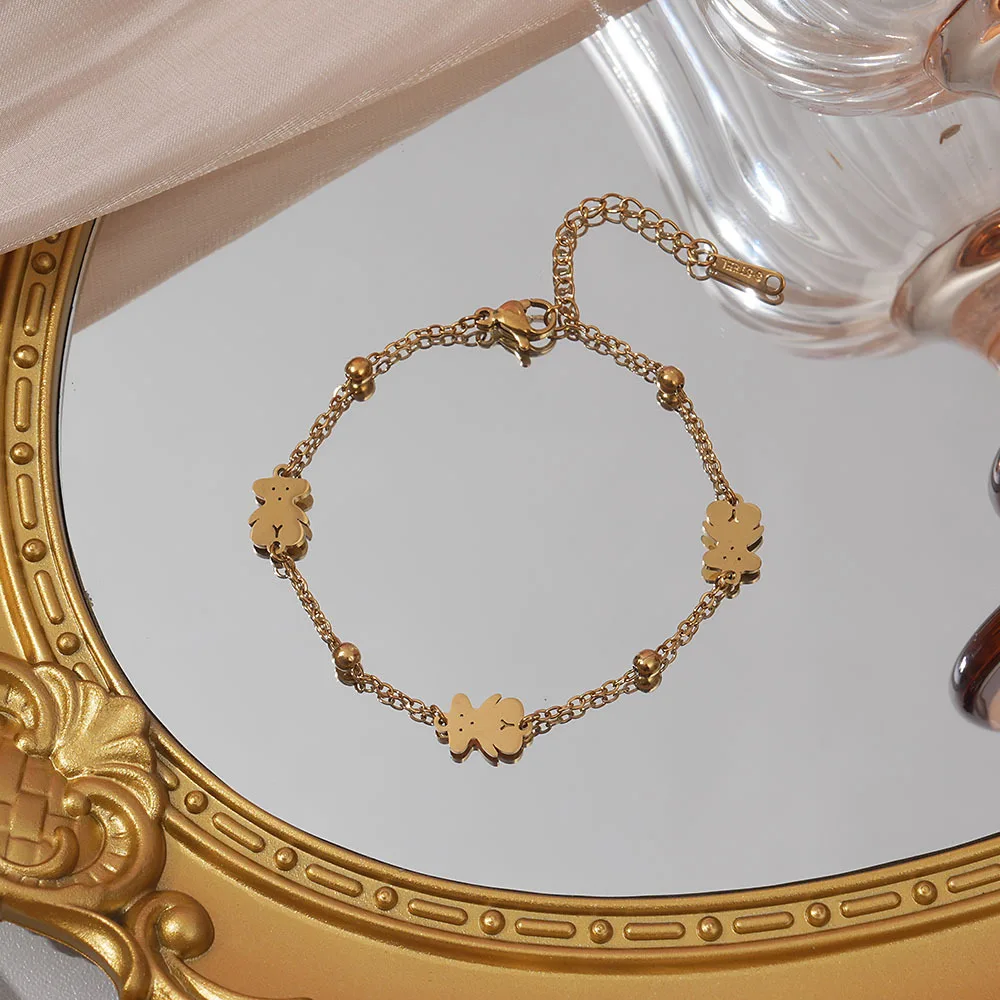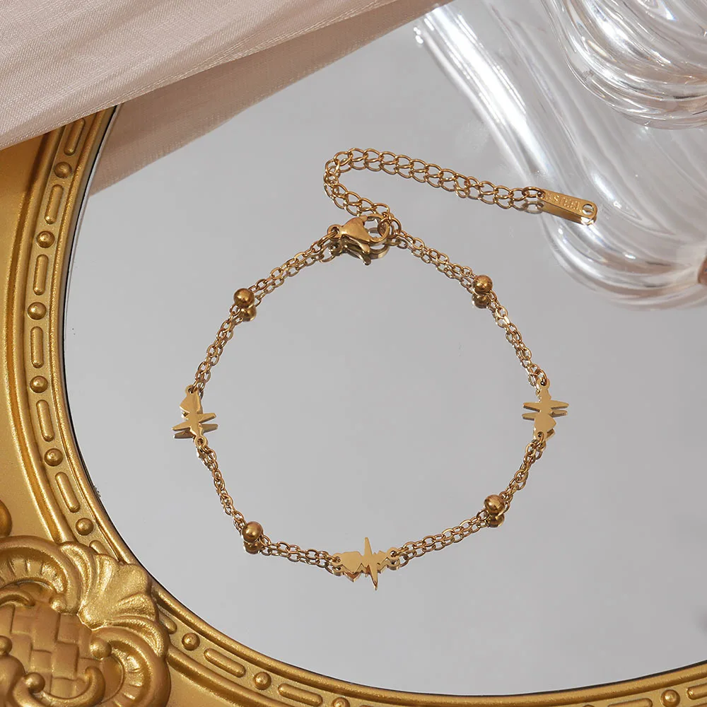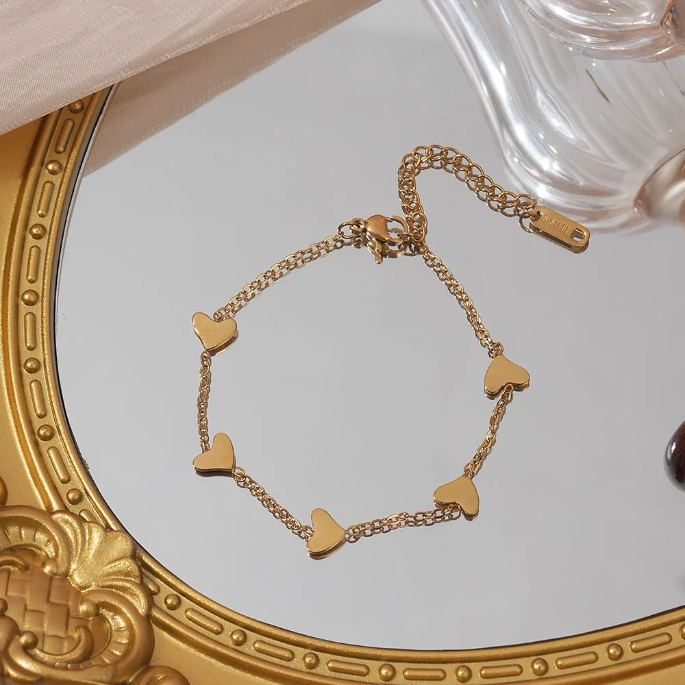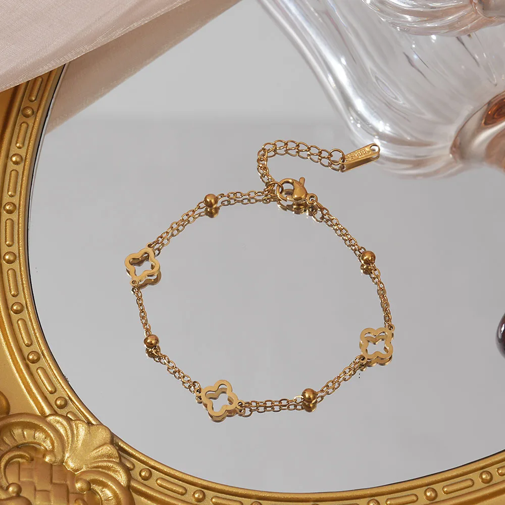 MW Women's Fashionable 18K Gold-Plated Stainless Steel Bracelet with Four-Leaf Clover & Heart Design