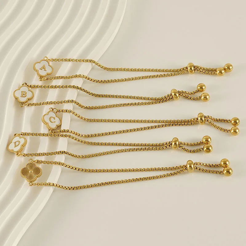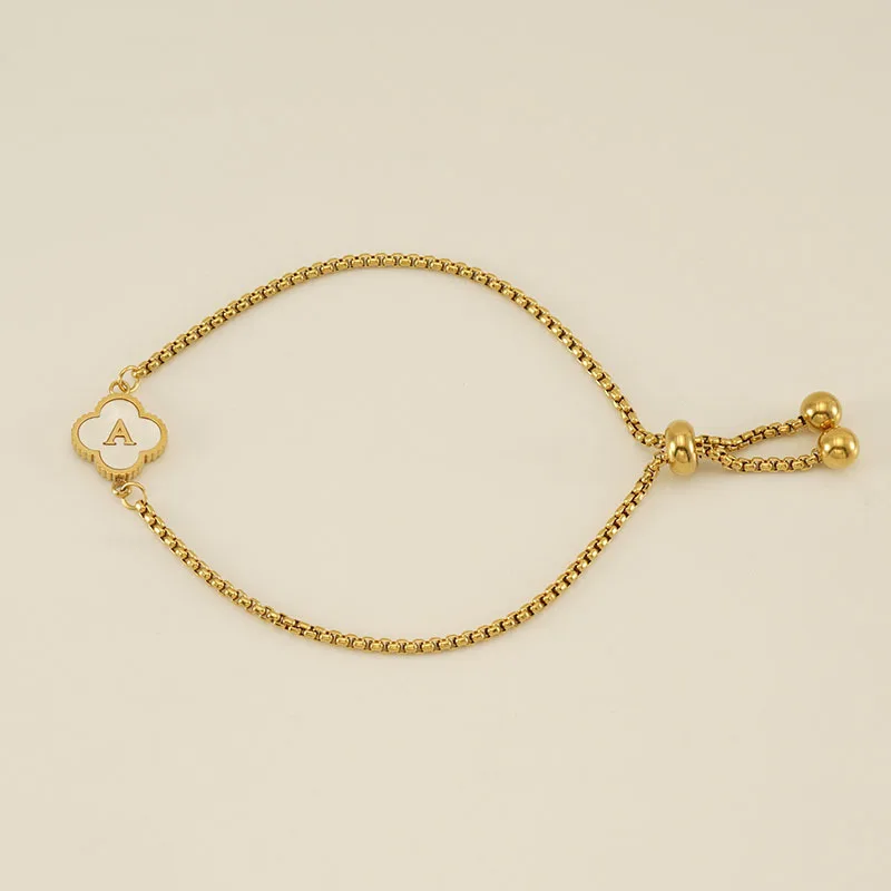 MW Women's Minimalist 18K Gold-Plated Stainless Steel Bracelet with Shell, Four-Leaf Clover and Letter Designs