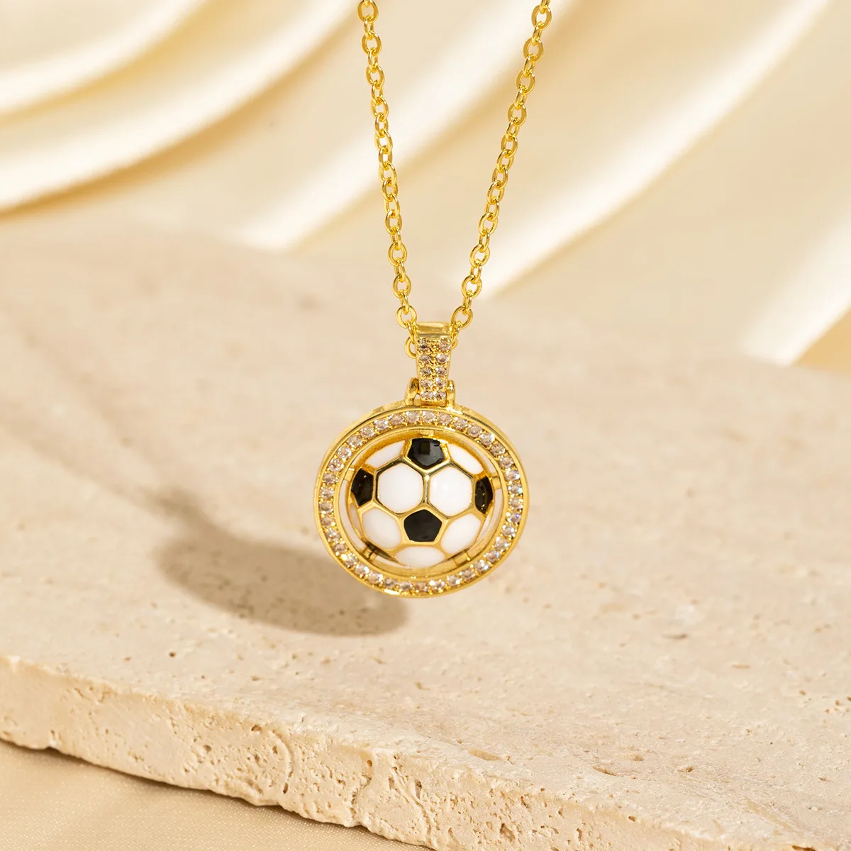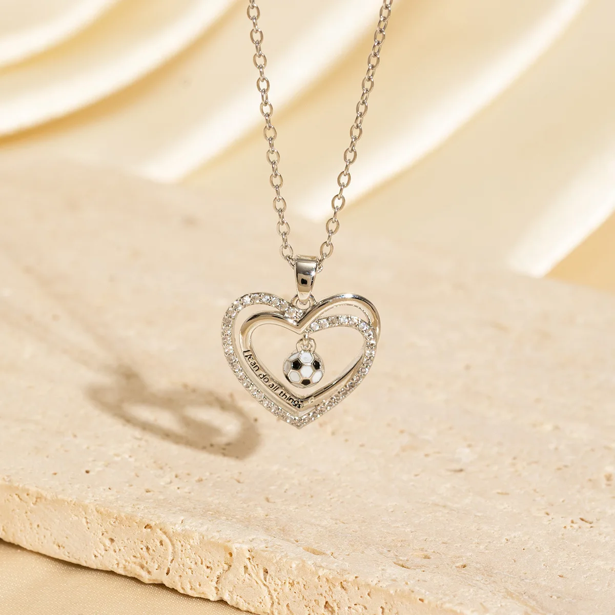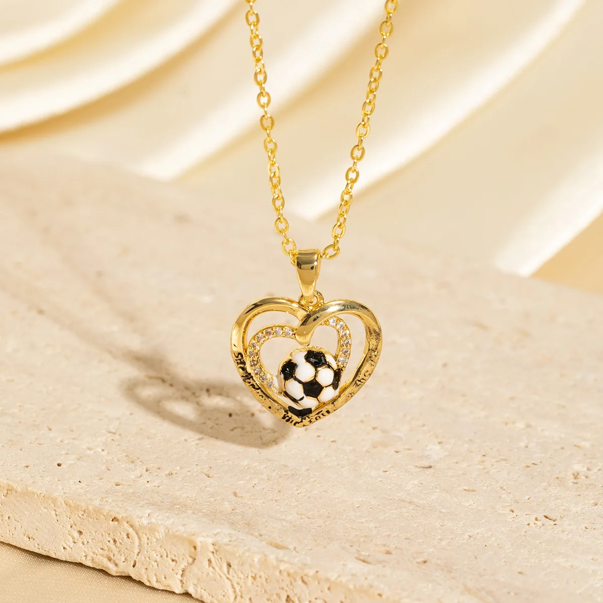MW Women's Fashionable Sporty 18K Gold-Plated Stainless Steel Hollow Heart Soccer Necklace
