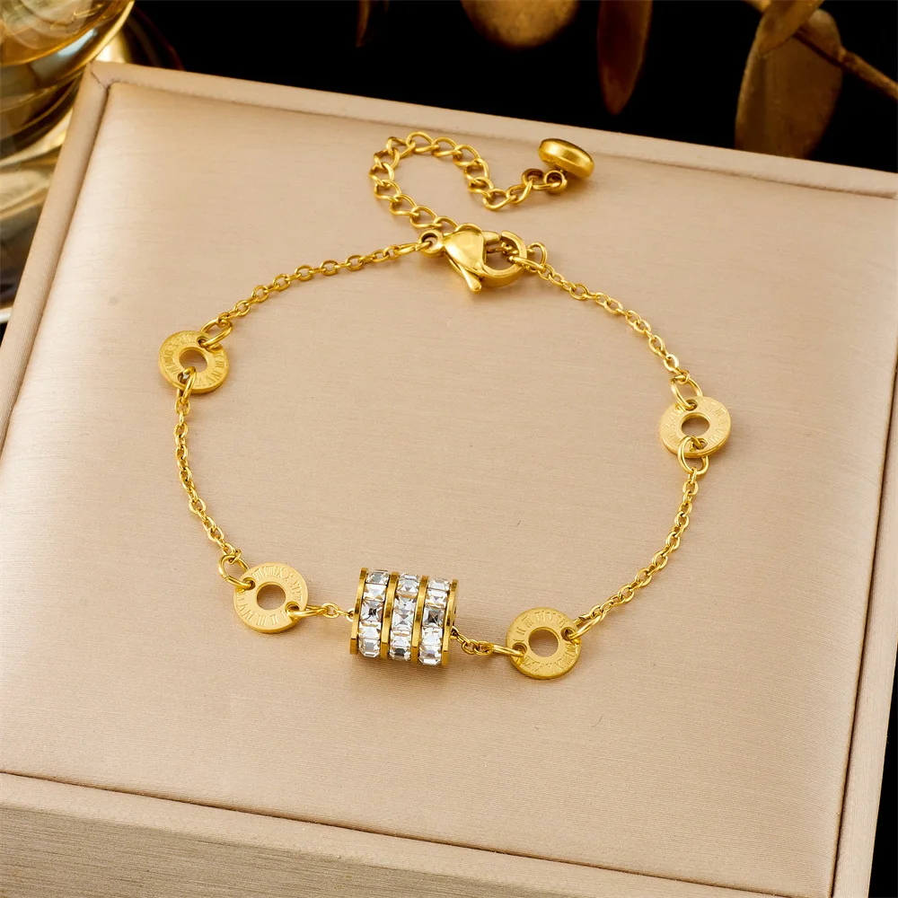 MW 2026 Vintage Zircon 18K Gold Plated Stainless Steel Heart Shape Roman Numerals Square Five Flower Star Bracelet