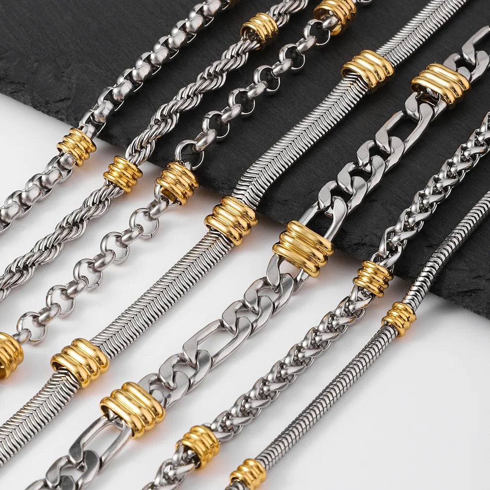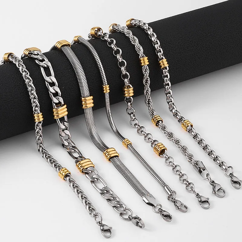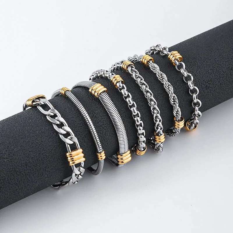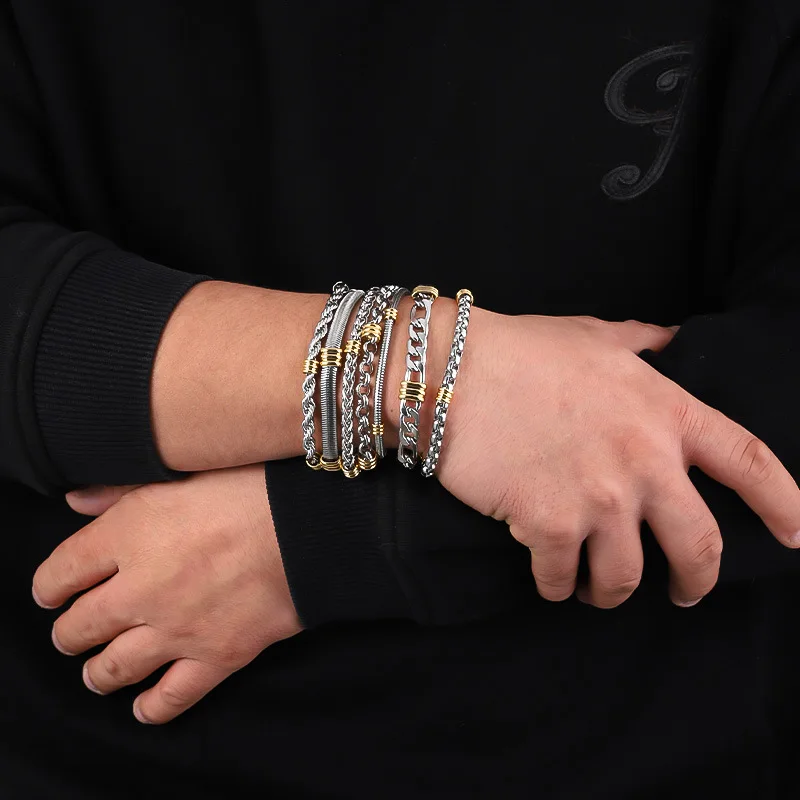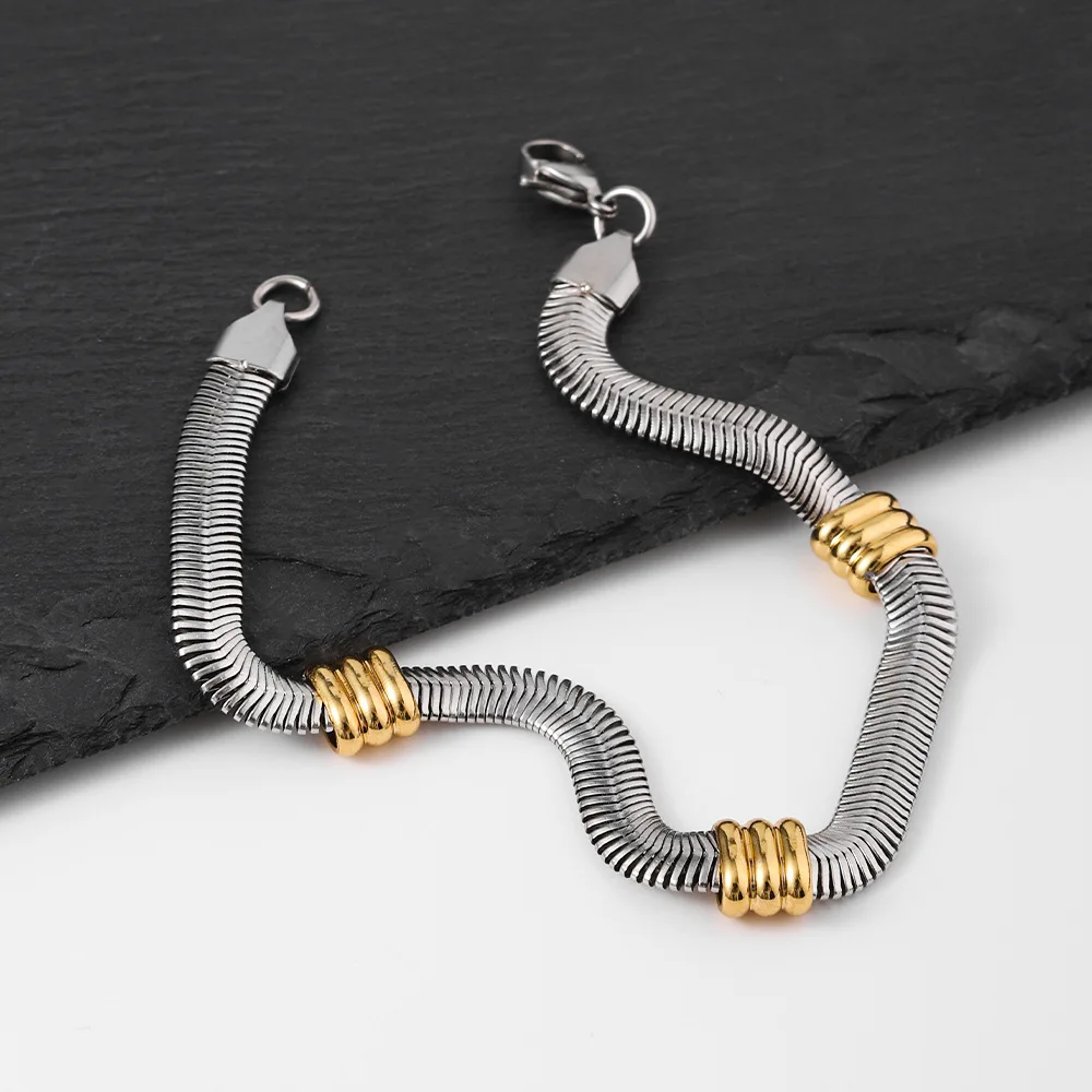 MW Wholesale Men's Vintage Geometric Stainless Steel Cuban Chain Bracelet DoubleColored Twisted Snake Design Silver Gold Fashion