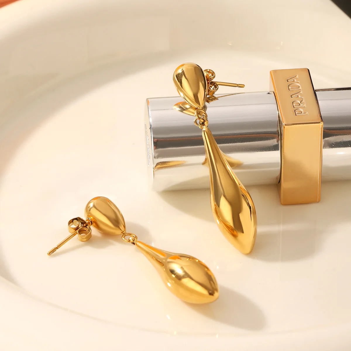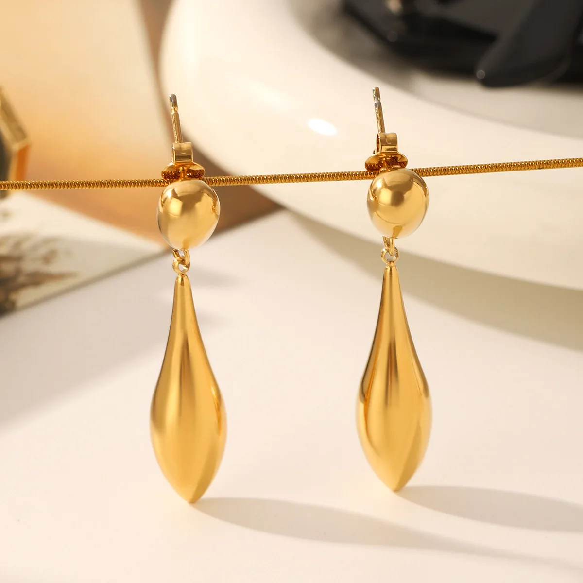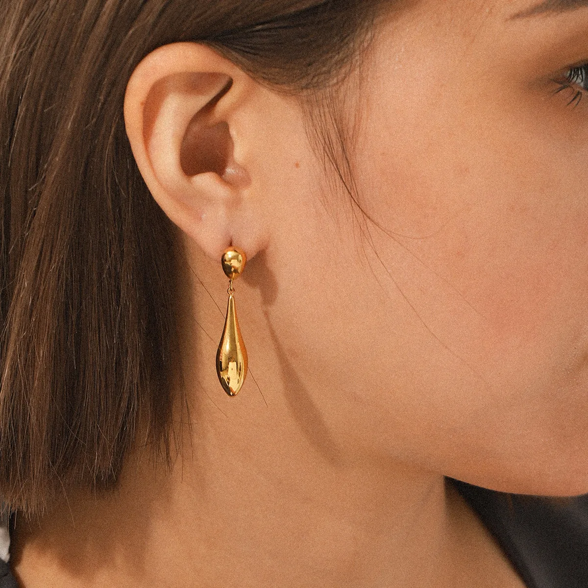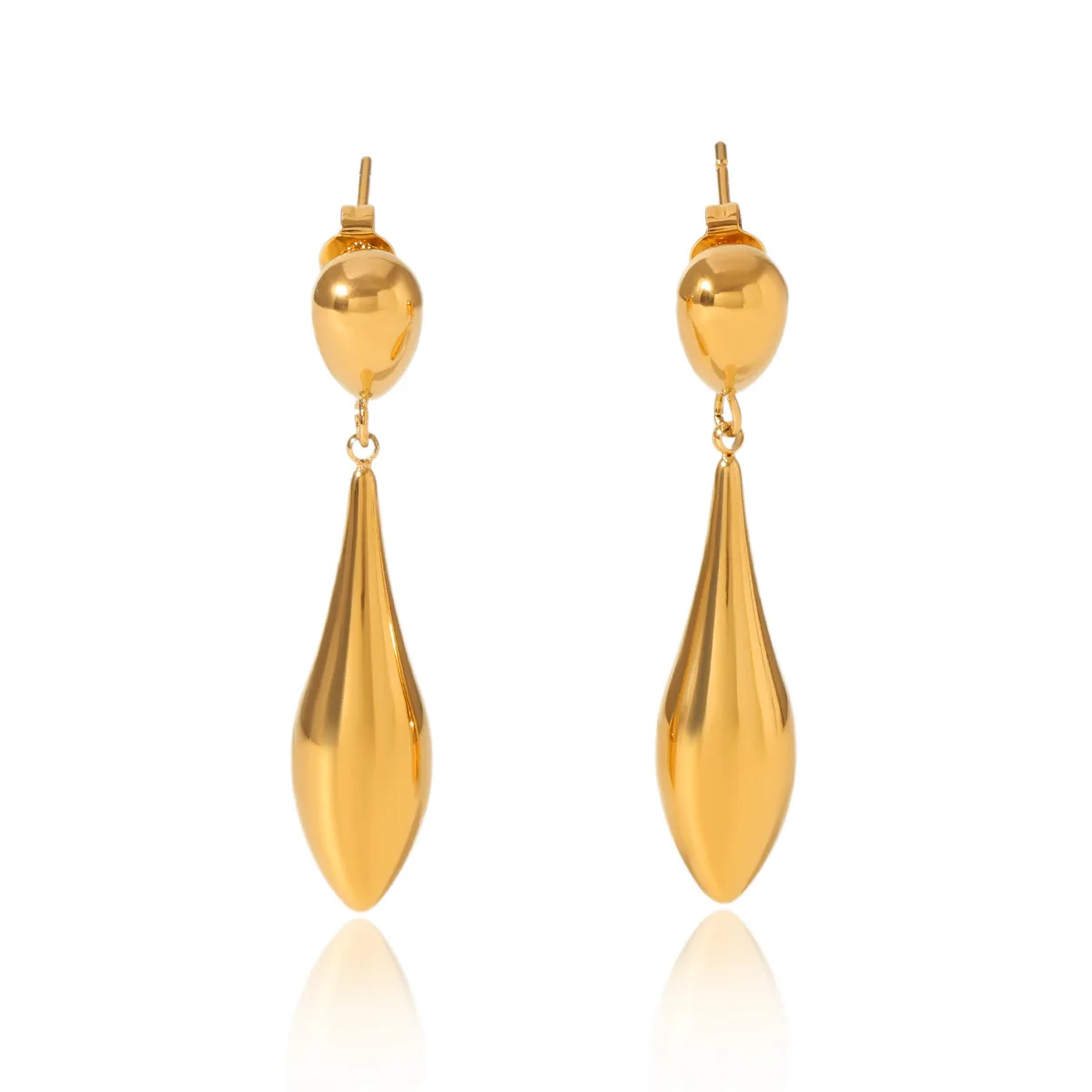 MW Trendy Simple Design Smooth Metal Water Drop Long Earrings 18K Gold Plated Stainless Steel Waterproof Women