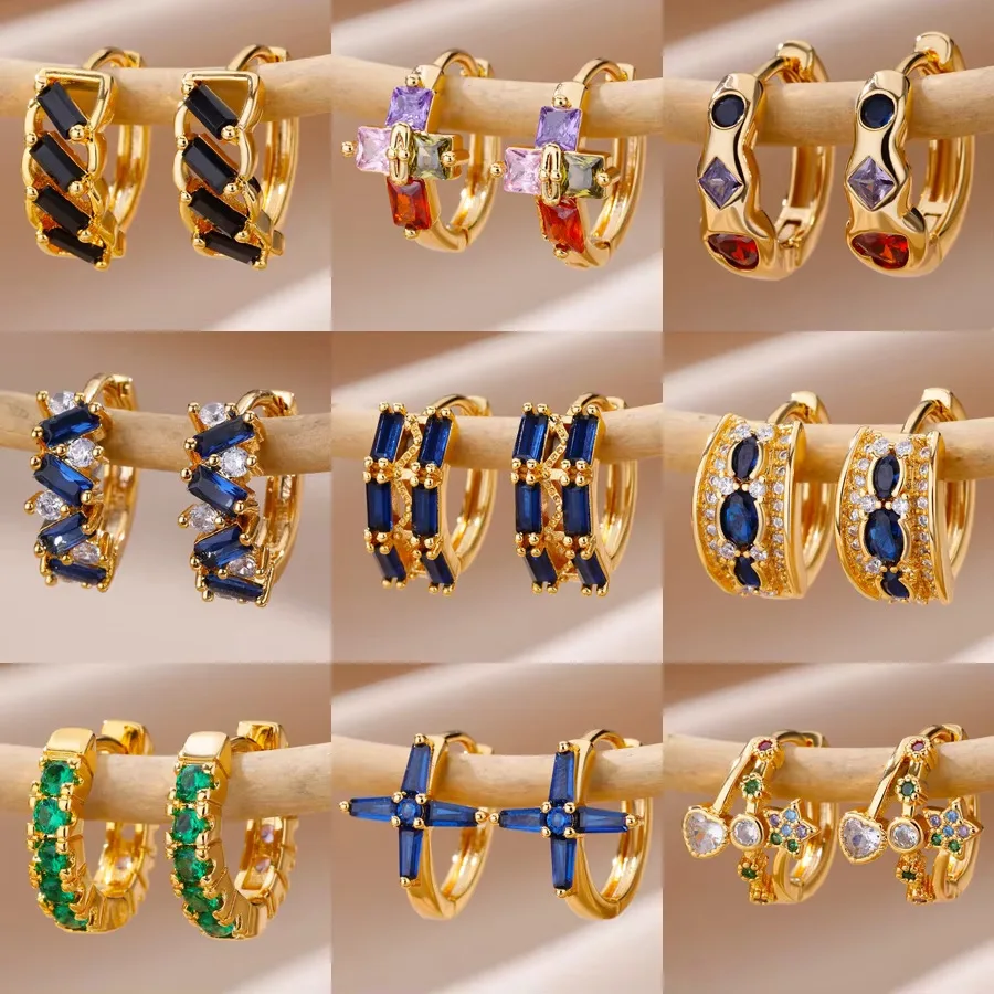 MW Factory Wholesale Mulit Colors Crystal Rhinestone Earings Gold 18k Women Zircon Huggies Hoop Earring for Gift