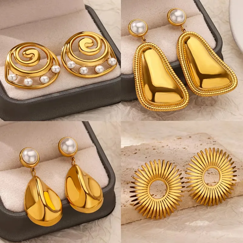 MW Fashion Zircon Imitation Pearl Flower Drop Earrings Stainless Steel 18K Gold-plated Non Fading Geometric Stud Earrings