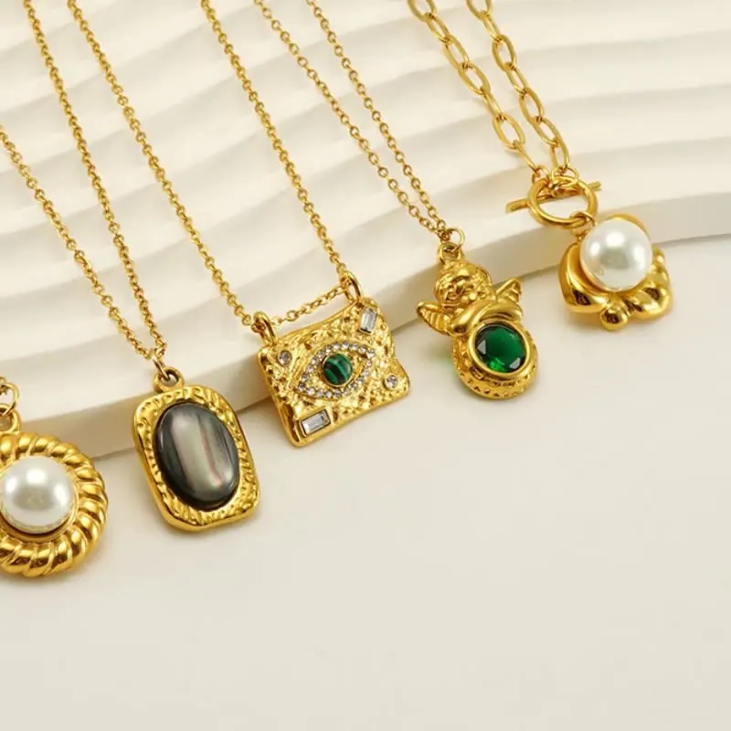 MW Women's Minimalist Fashion 18K Gold-Plated Stainless Steel Necklace with Natural Stone Pendant