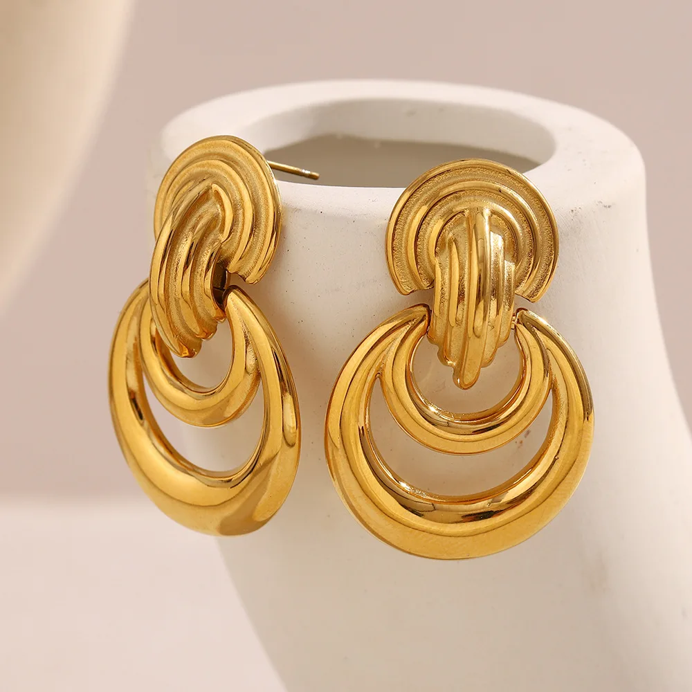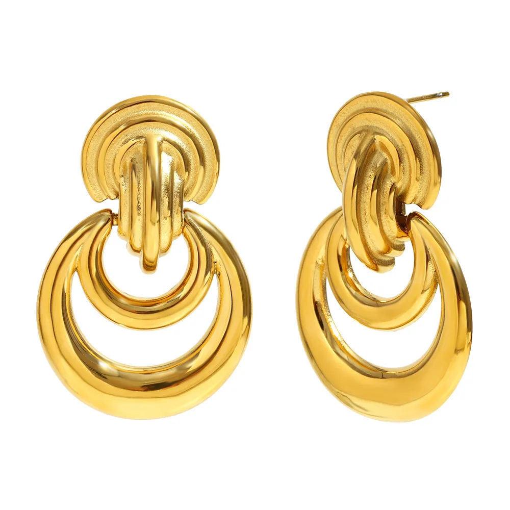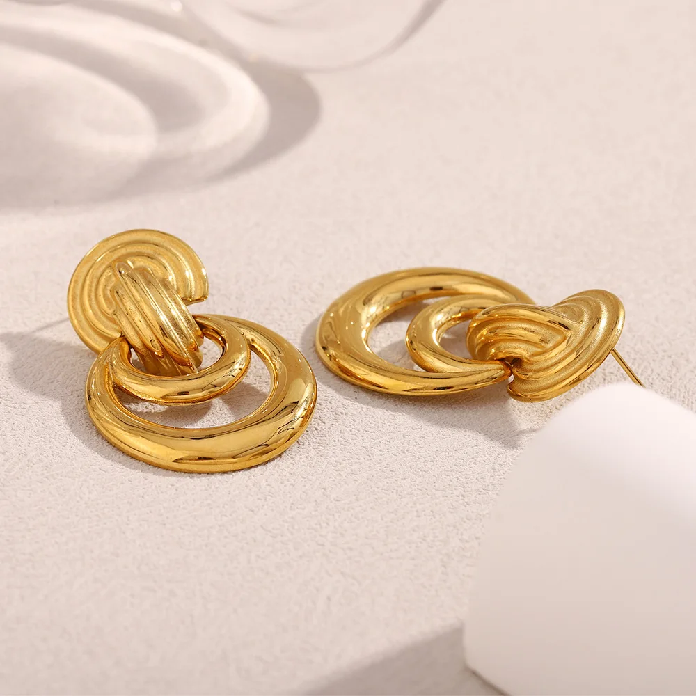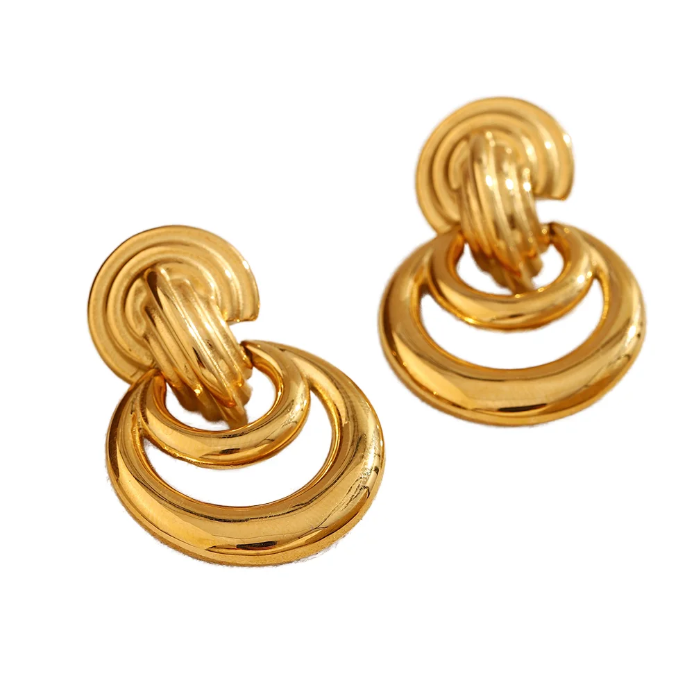 MW Women's Trendy 18K Gold Plated Stainless Steel Classic Earrings Hoop Geometric Pattern Emerald Cut Micro Insert Parties