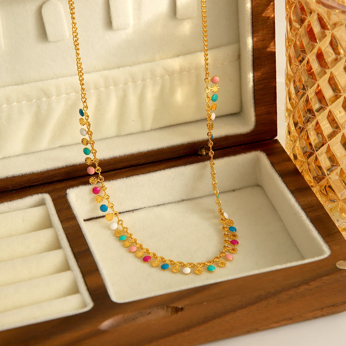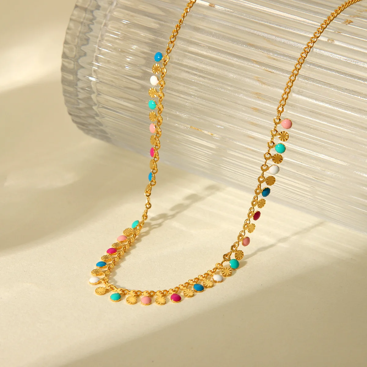 MW Women's European and American Style Fashion 18K Gold-Plated Stainless Steel Necklace with Colored Enamel Fringes