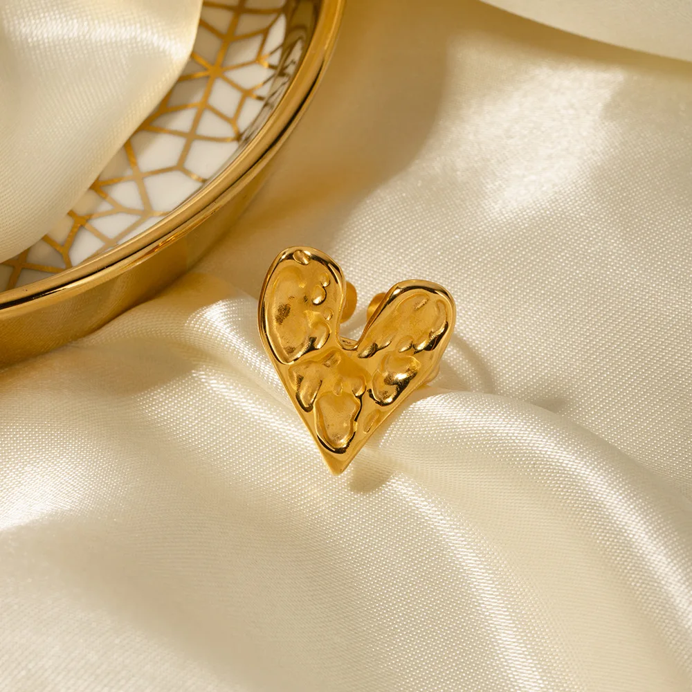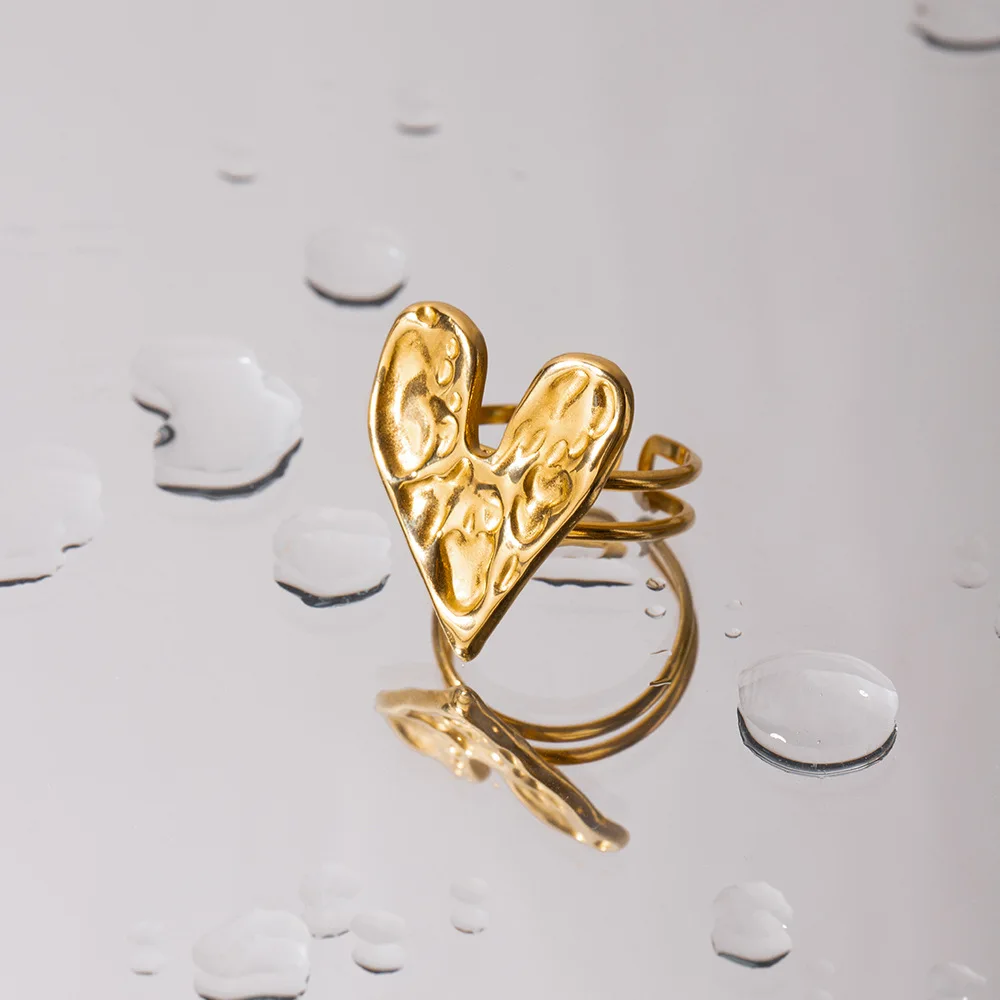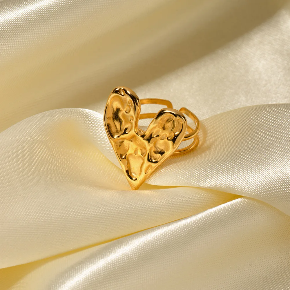 MW Women's 18K Gold-Plated Minimalist and Stylish Irregular Hammered Heart Ring - Waterproof Jewelry Suitable for Daily Wear