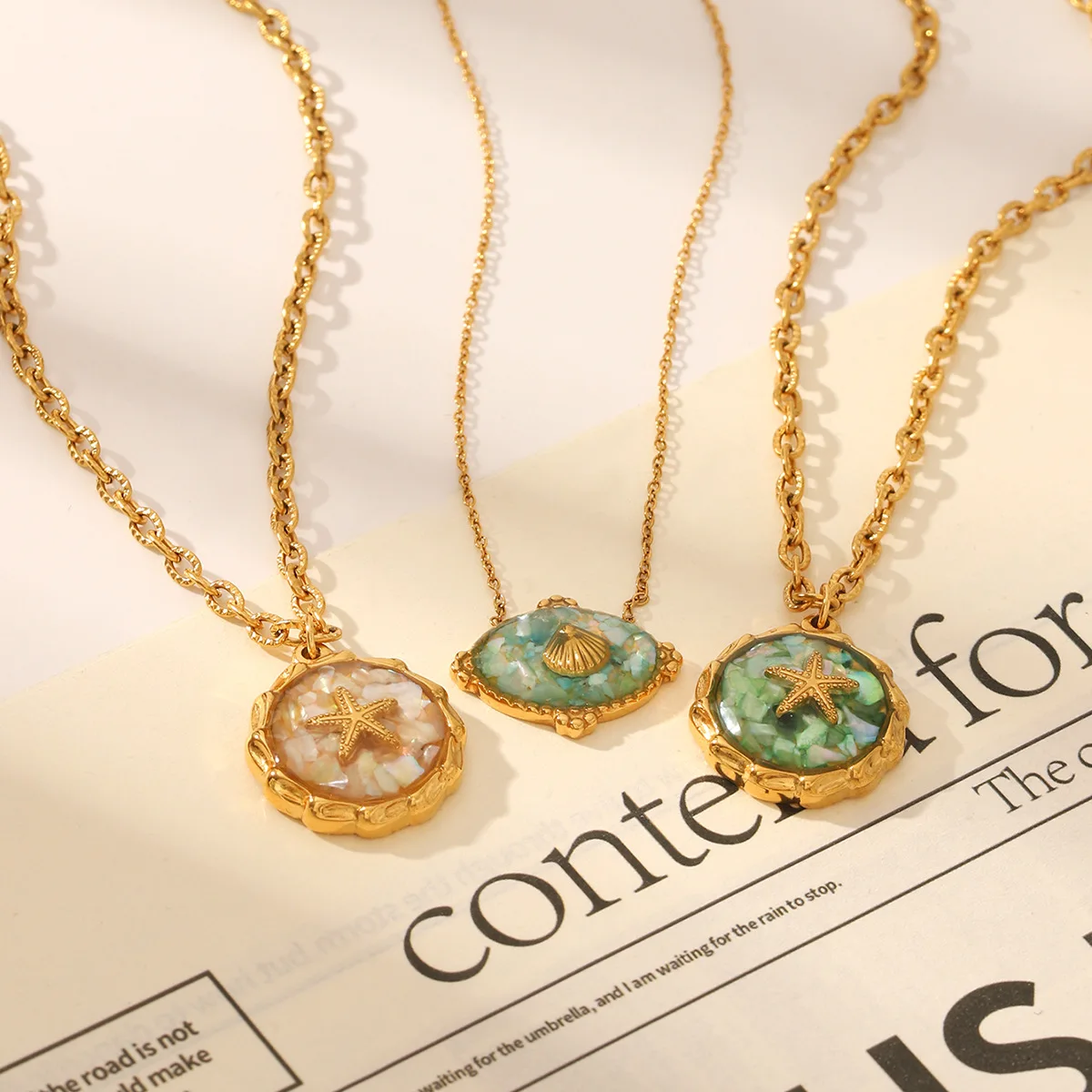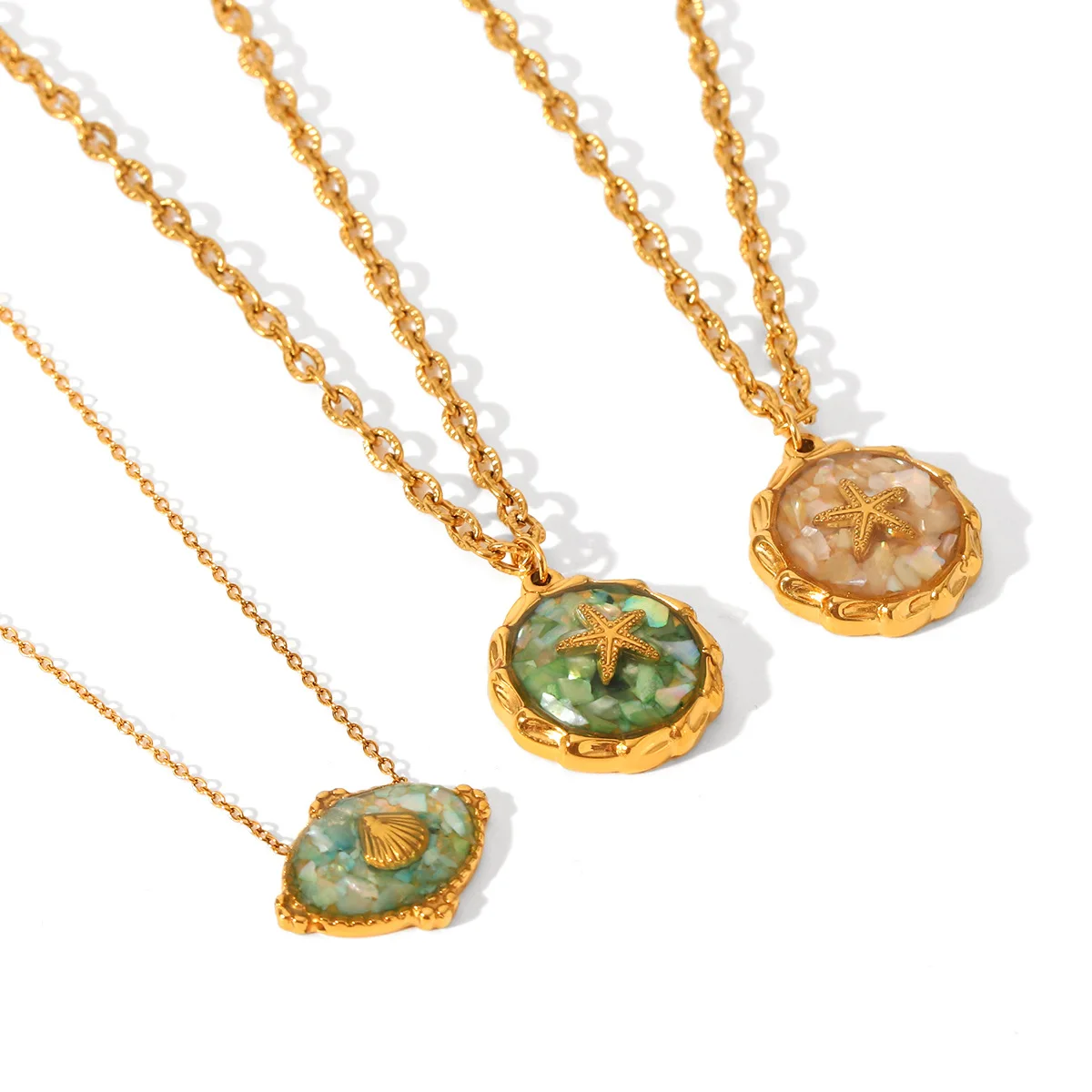 MW Summer Ocean Fashionkids Stainless Steel Necklace Green Enamel Dripping Oil Seashell Starfish Pendant Necklace Jewelry