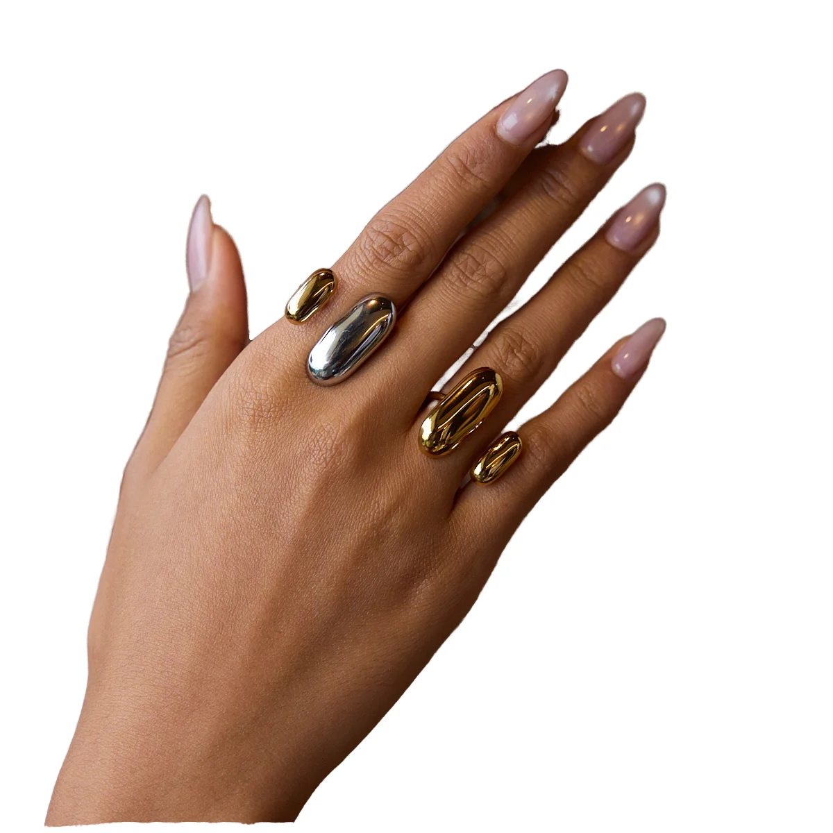 MW 18K Gold Stainless Steel Adjustable Beaded Stackable Ring Modern Minimalist Oval Design Trendy Wedding Jewelry Gift Rings