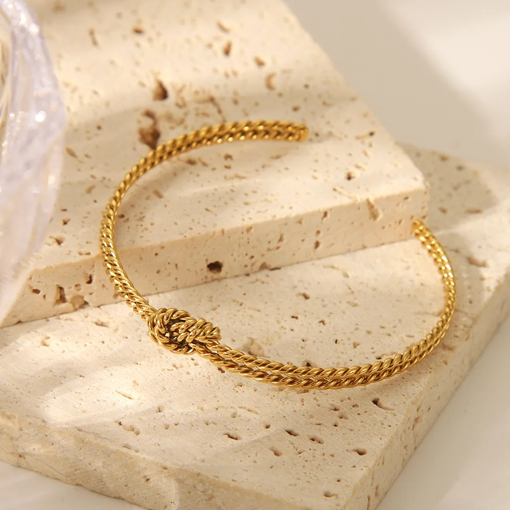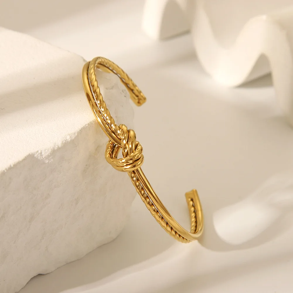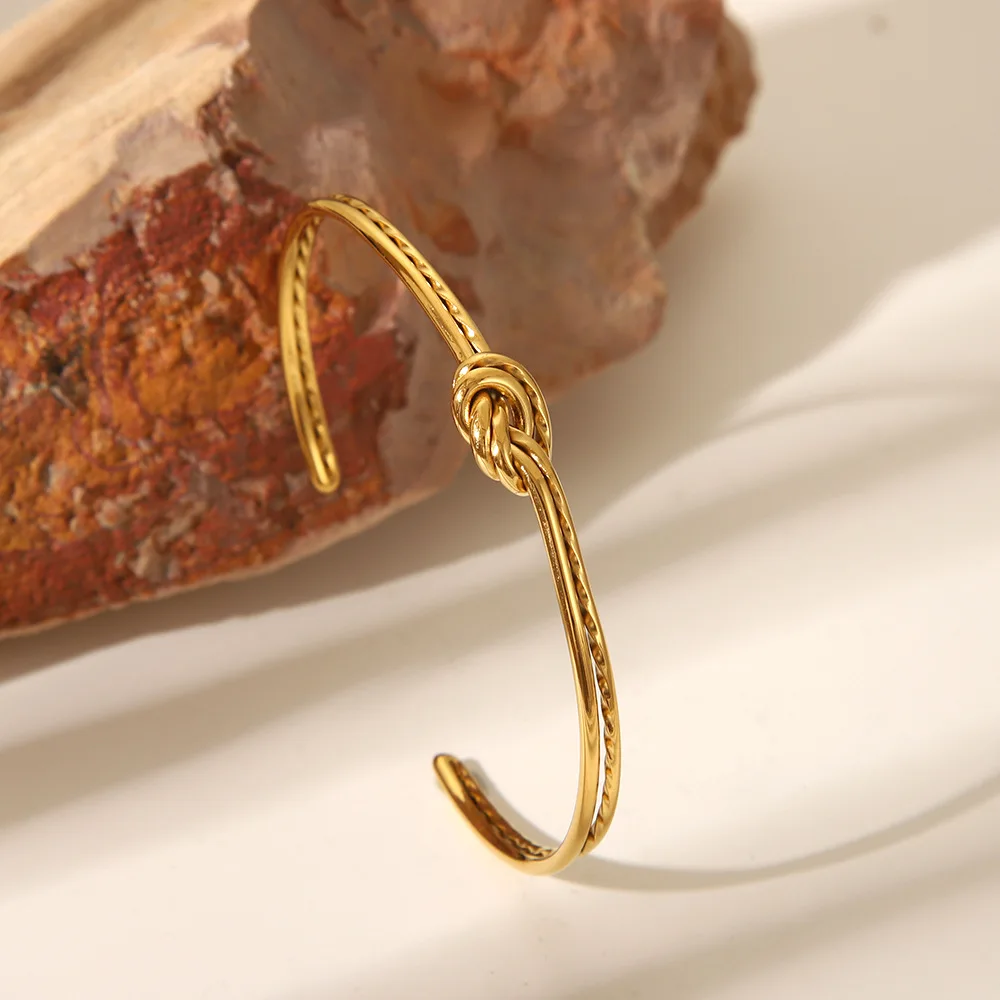 MW Women's Minimalist 18K Gold-Plated Stainless Steel Geometric Knotted Open Cuff Adjustable Bracelet
