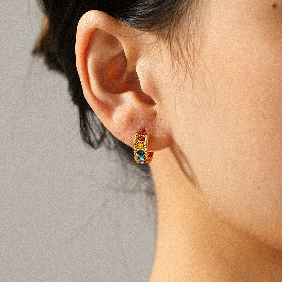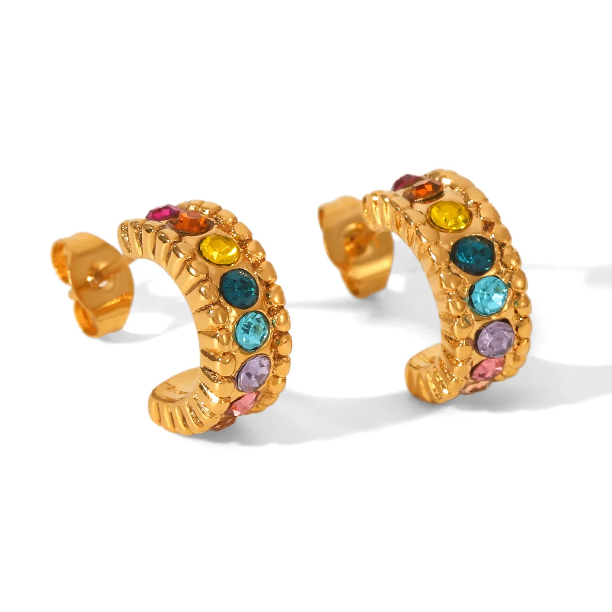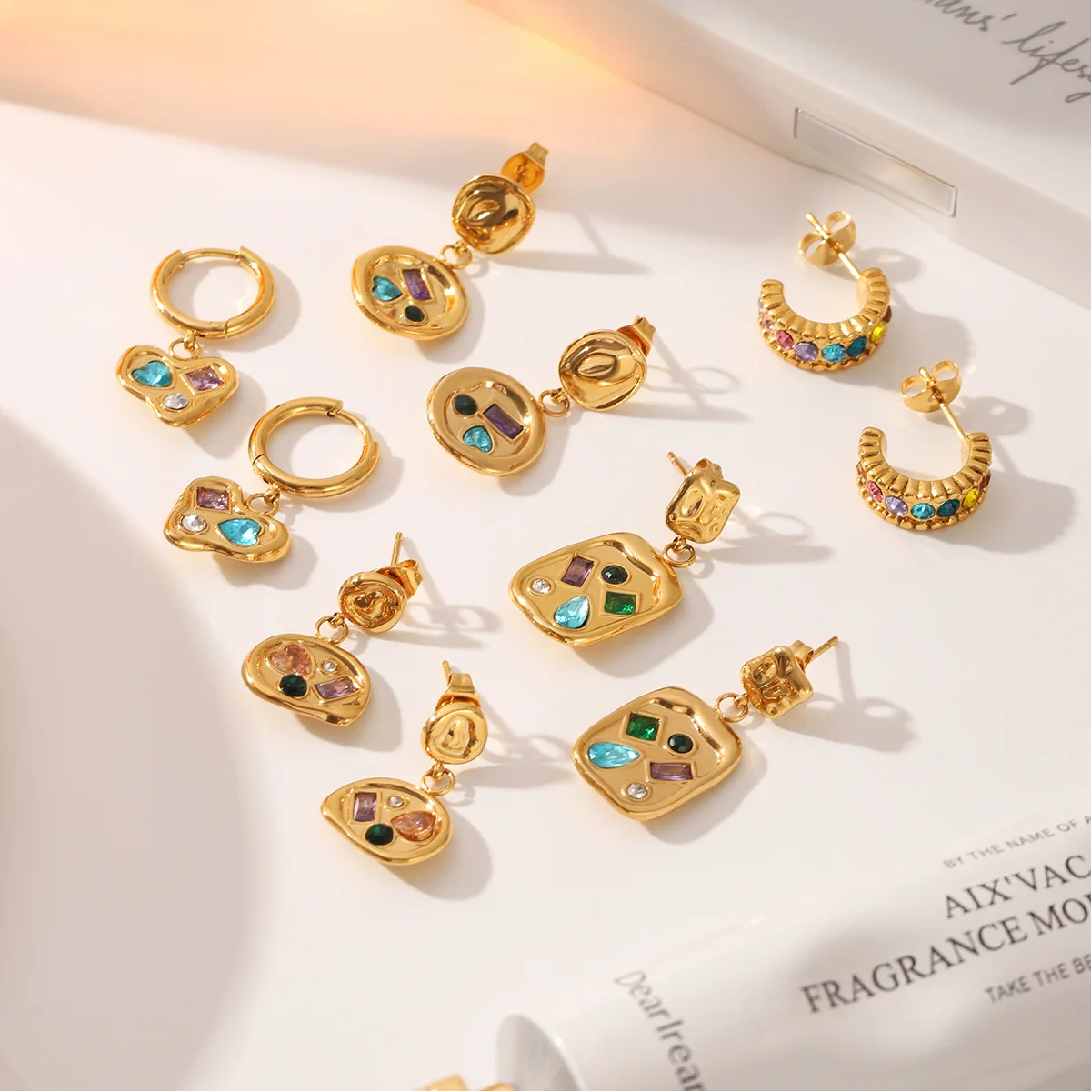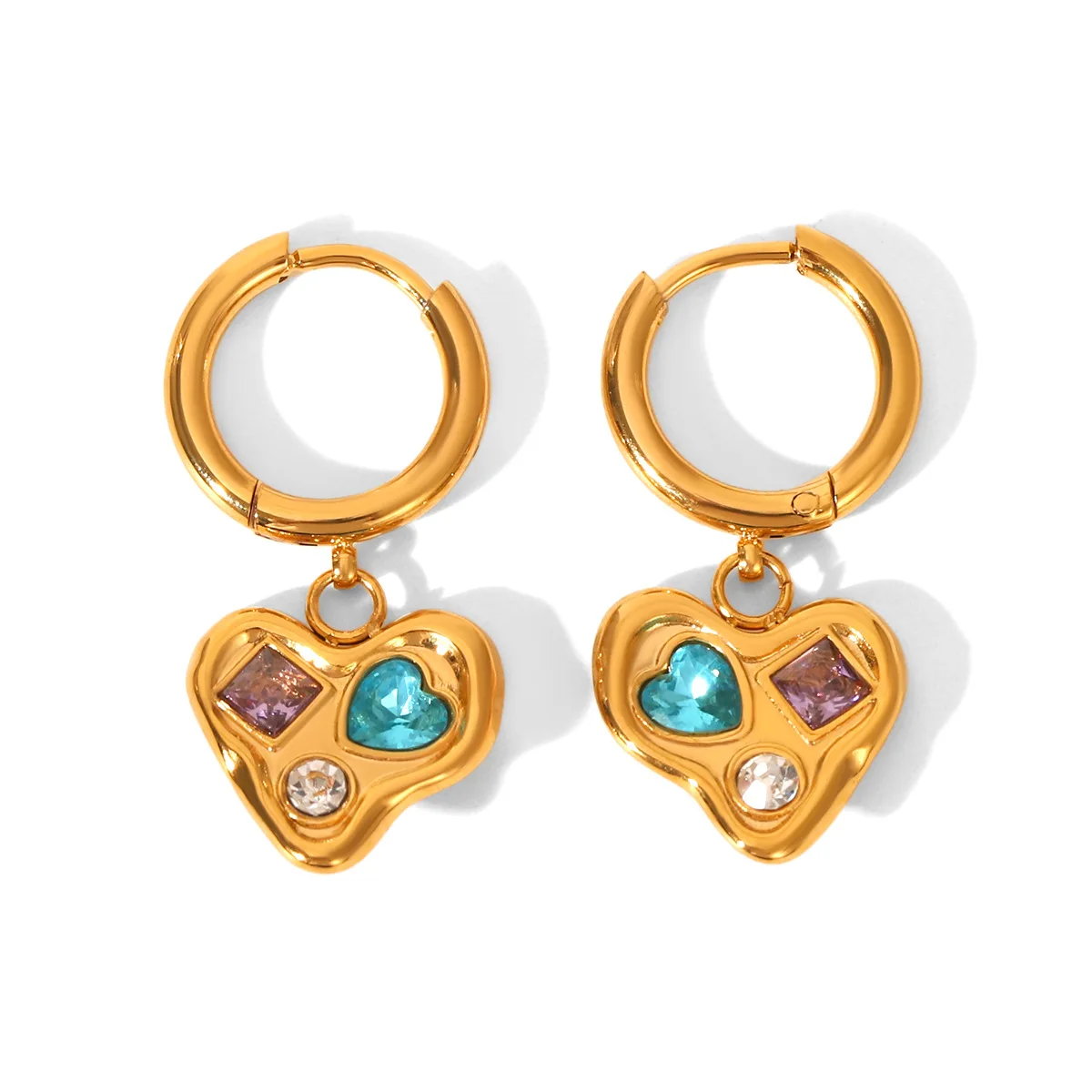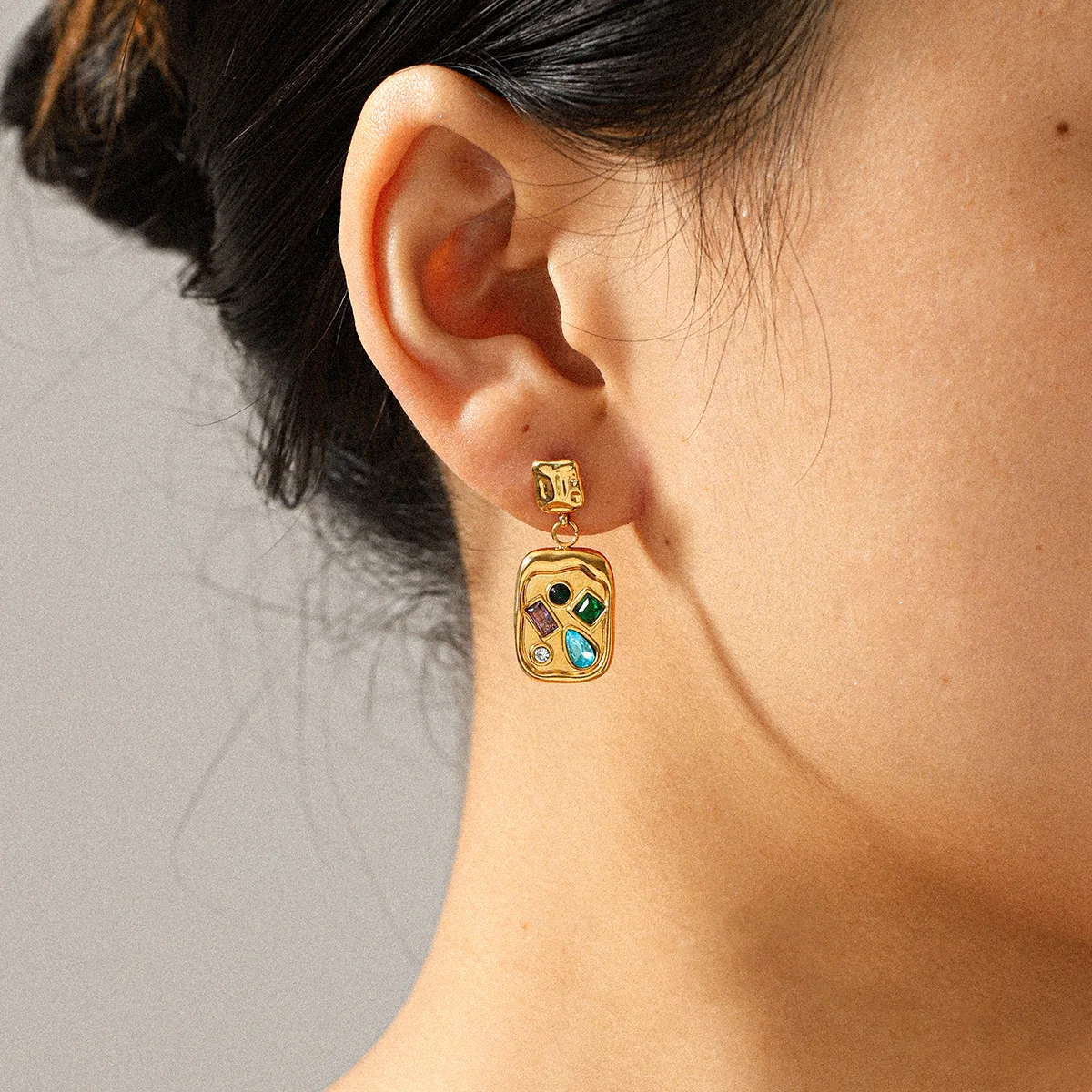 MW Trendy Stainless Steel 18k Gold Plated Electroplated Vacuum Plated Colorful Zircon Geometric Irregular Drop Earrings for Gift