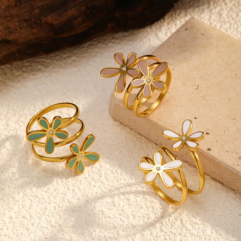 MW Wholesale Vintage-Style 18K Gold-Plated Stainless Steel Adjustable Teardrop Floral Flower Ring Tarnish Free Women Ring