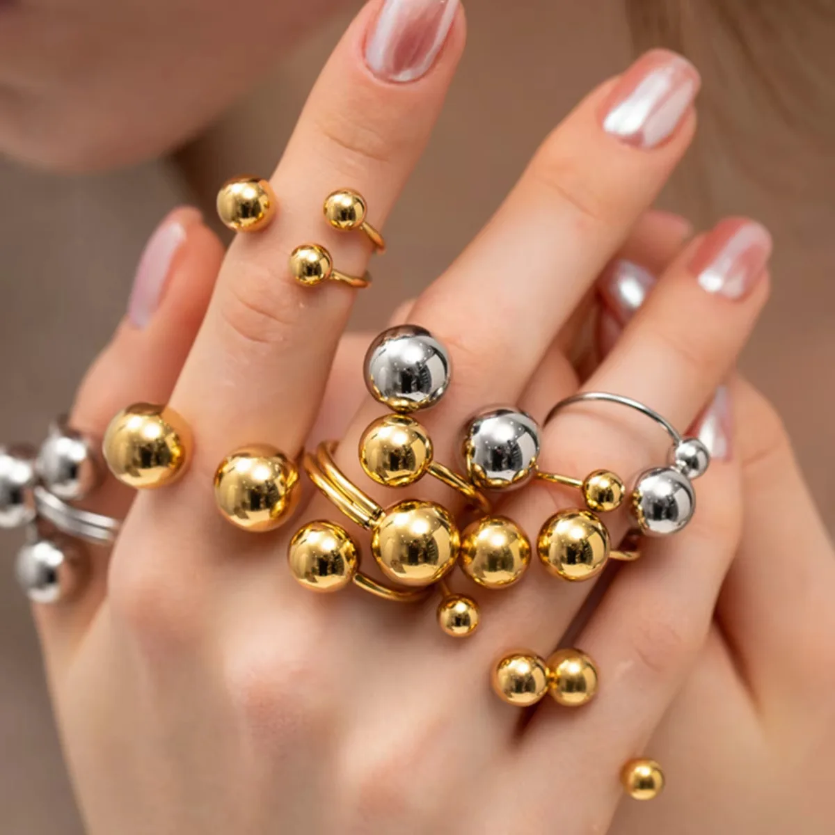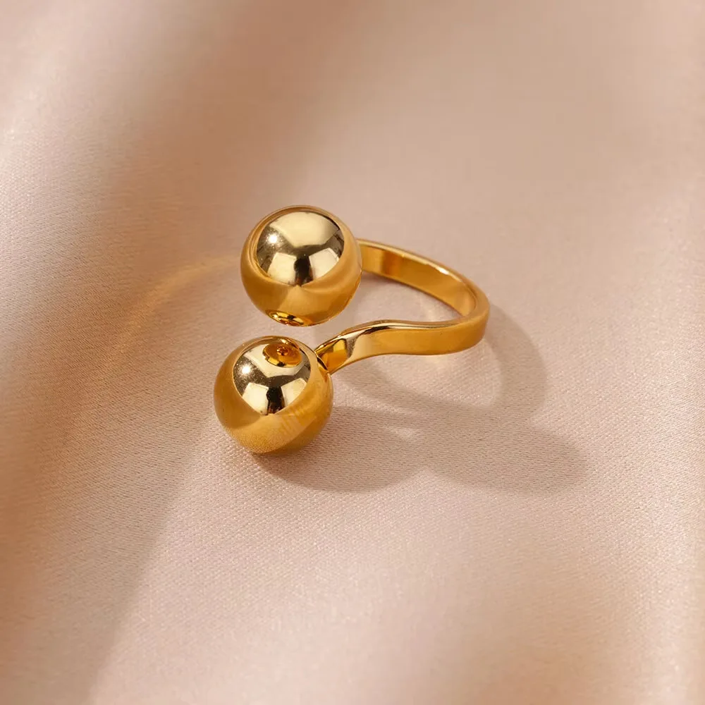 MW Women's 18K Gold-Plated Stainless Steel Open Ball Ring - Stylish Jewelry with Unique Waterproof & Tarnish-Resistant