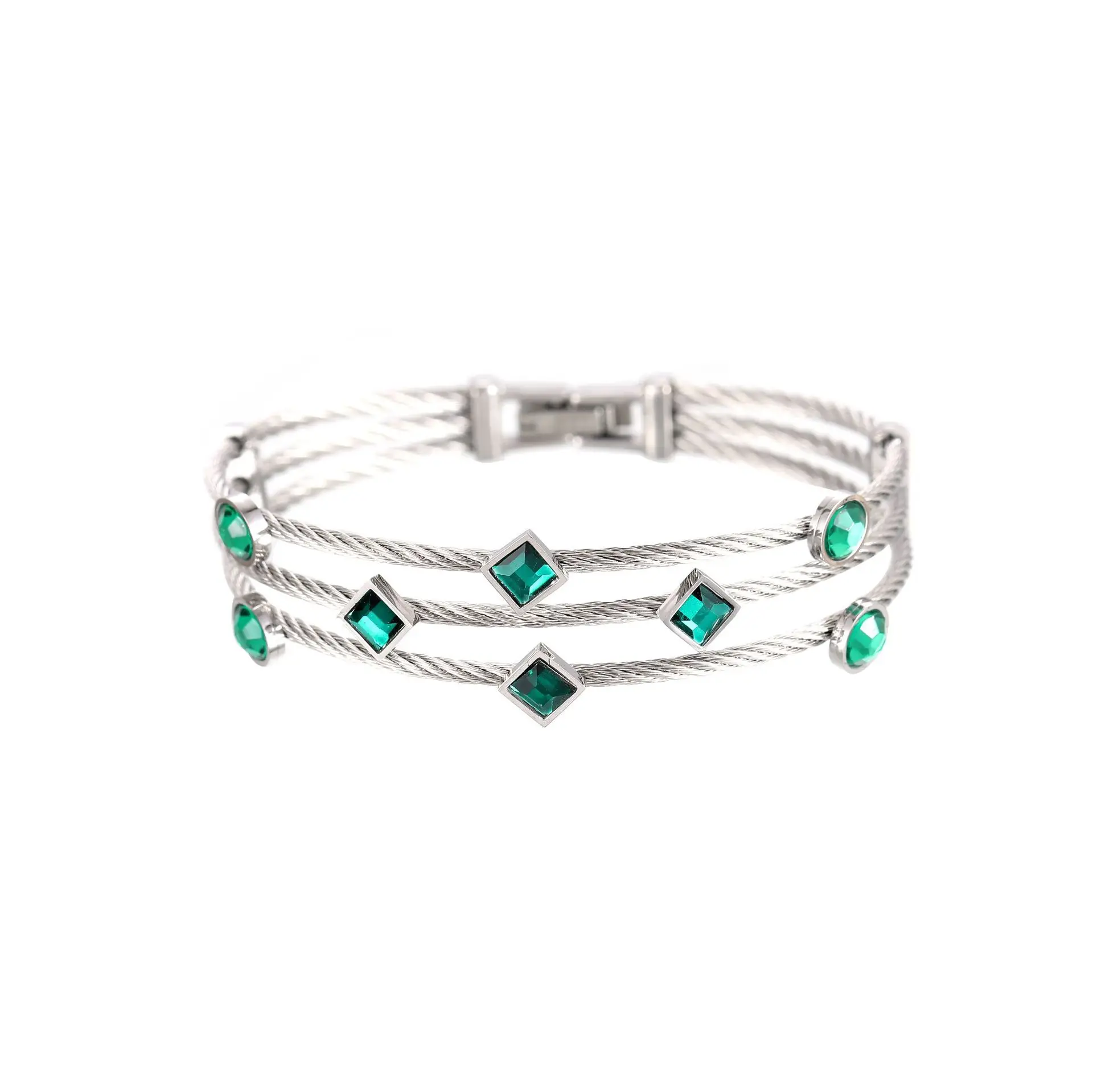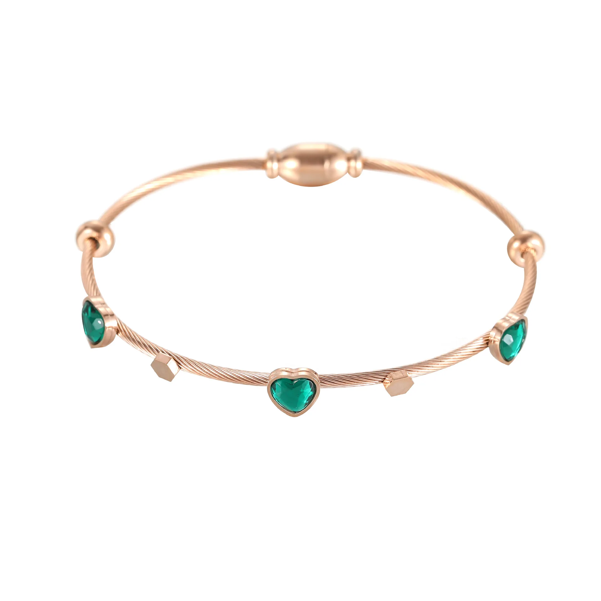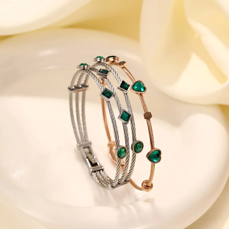 MW Designer Famous Brand Ladies Women Green CZ Cubic Zirconia Stainless Steel Rose Gold Multi-Layers Bangles