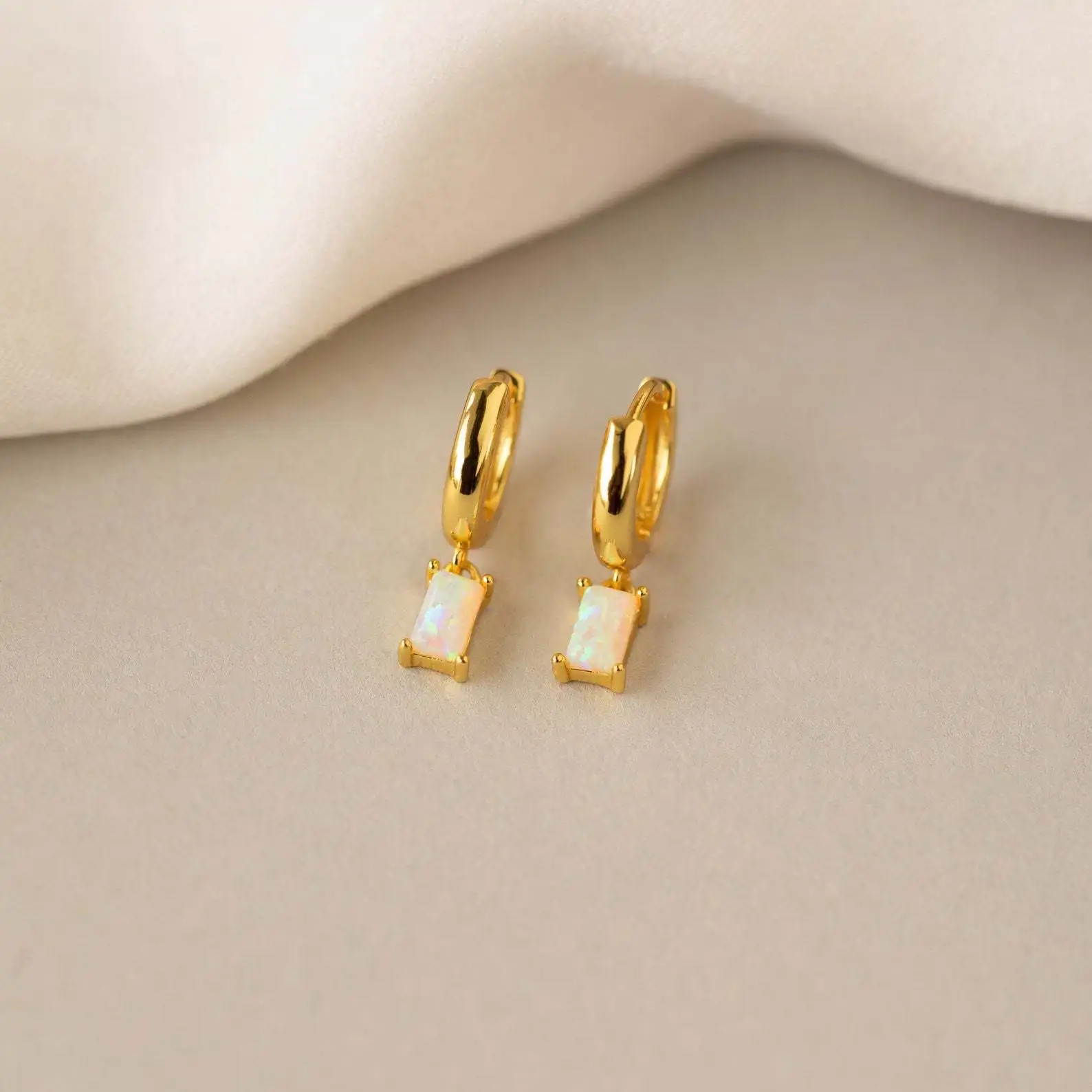MW Wholesale Stainless Steel 18k Gold Luxury Jewelry Baguette Birthstone Joyeria De Moda Hoop Crystal Earrings for Women Girl