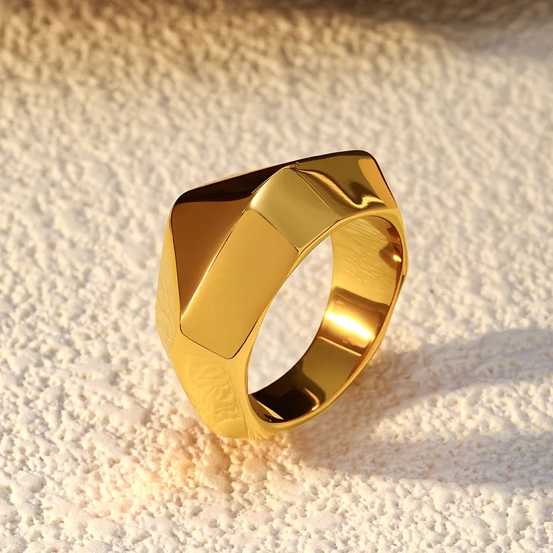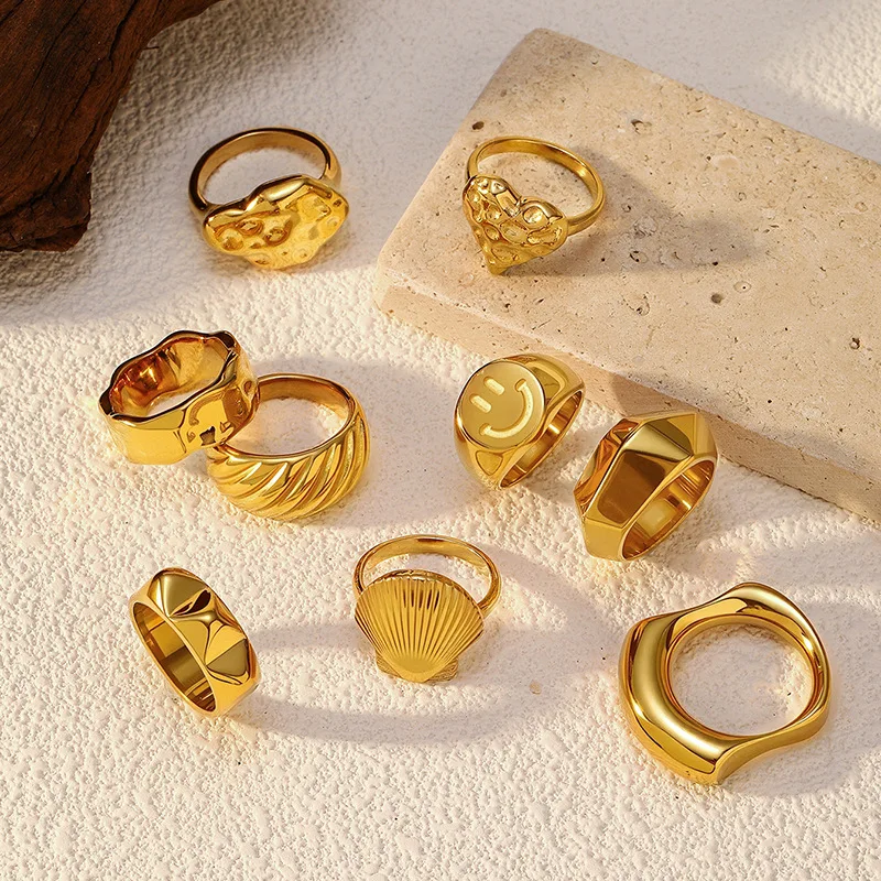 MW Fashion Irregular Jewelry Embossed Chunky Thick Waterproof 18K Gold Plated Pvd Stainless Steel Rings for Women Wholesale