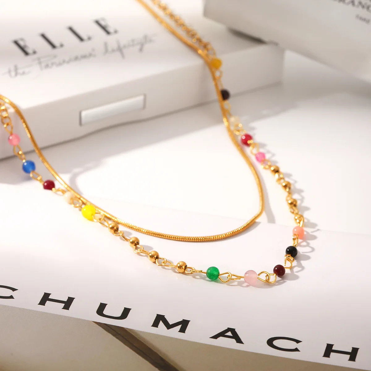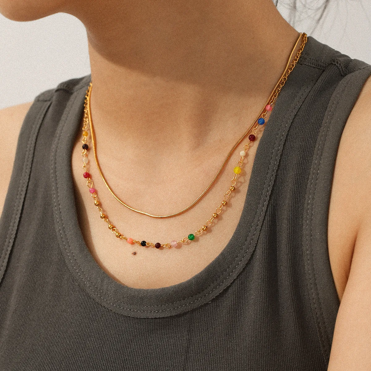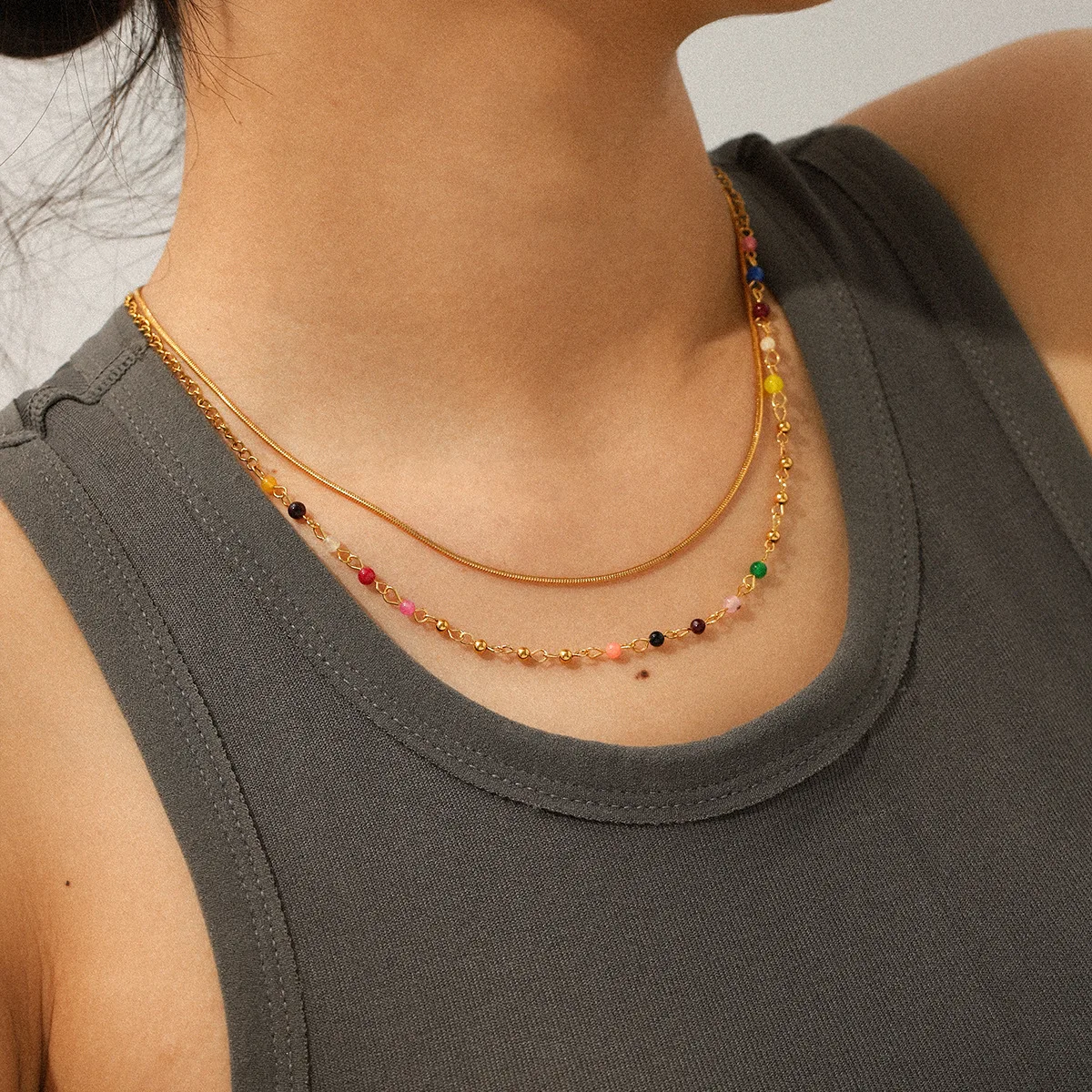 MW Designer 18K Gold Plated Geometric Snake Layered Choker Necklace Women Dainty Colorful Charms Stainless Steel Gift