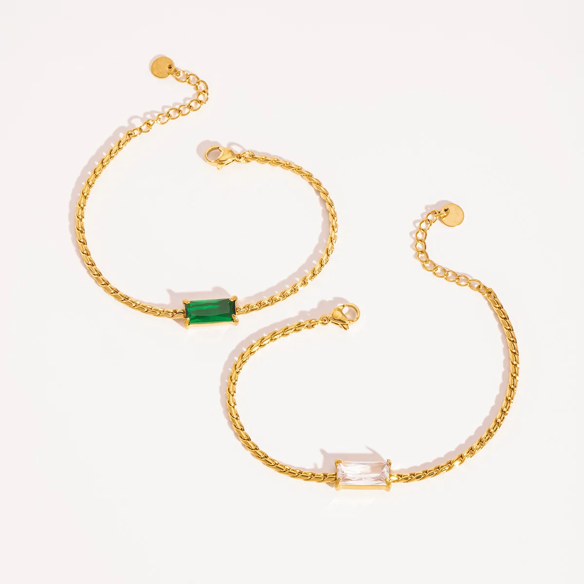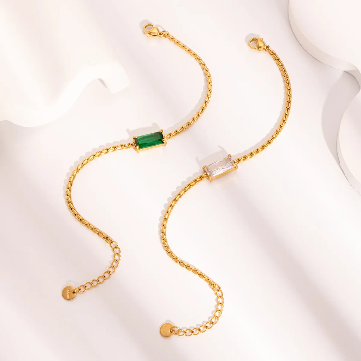 MW Women's Fashionable 18K Gold-Plated Stainless Steel Bracelet with Inlaid Square Cubic Zirconia