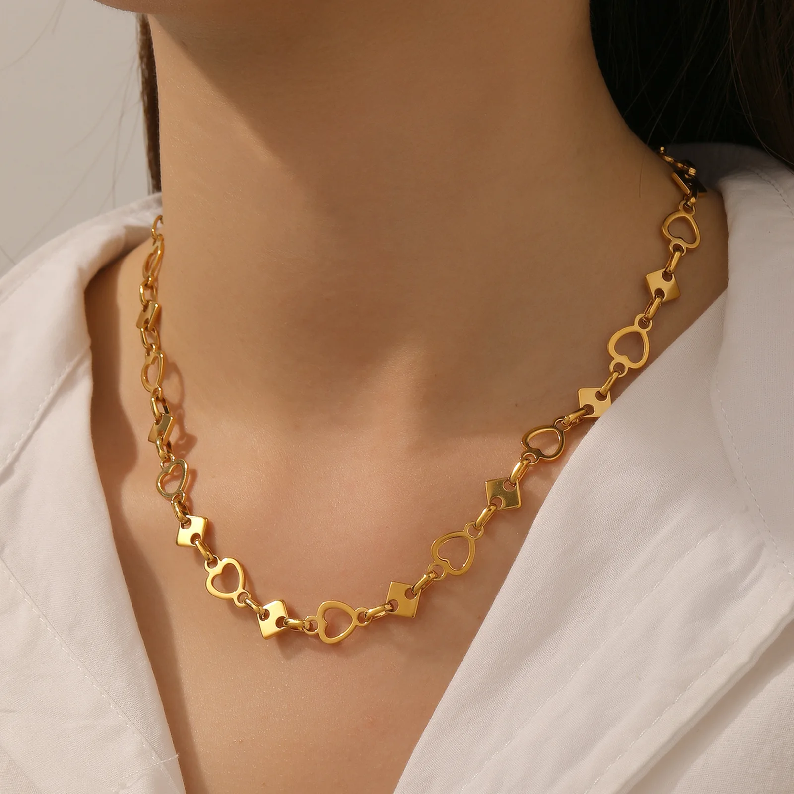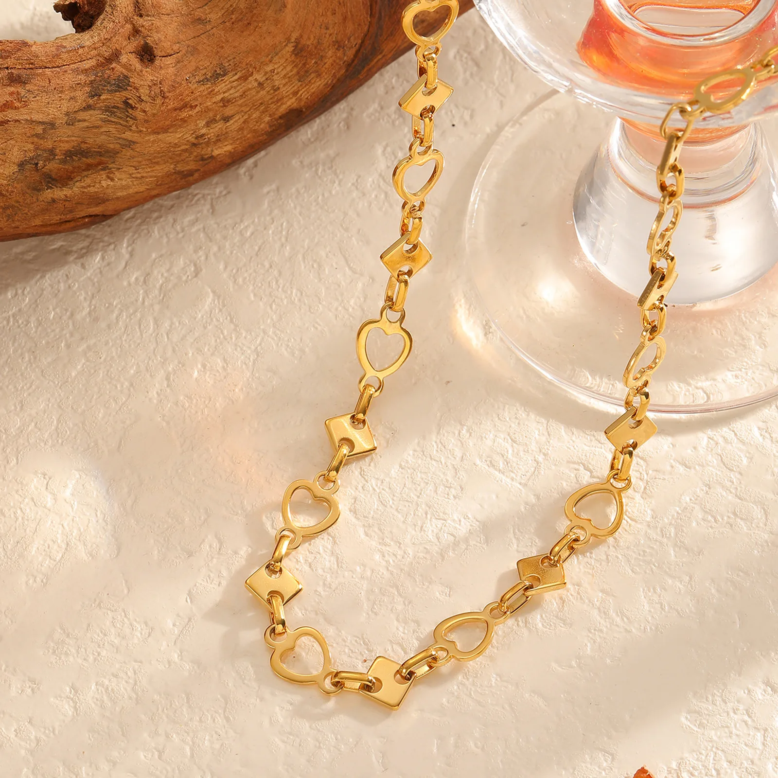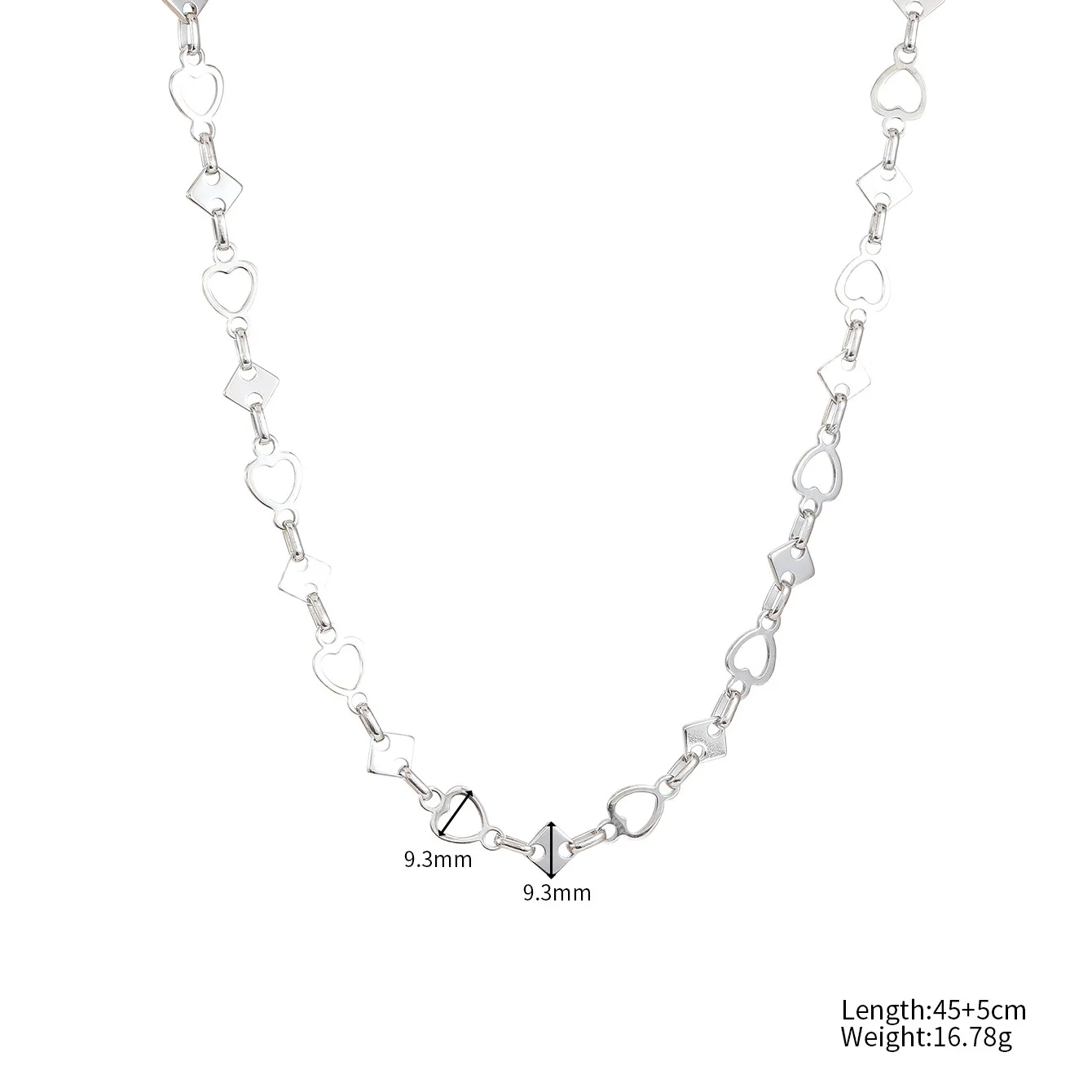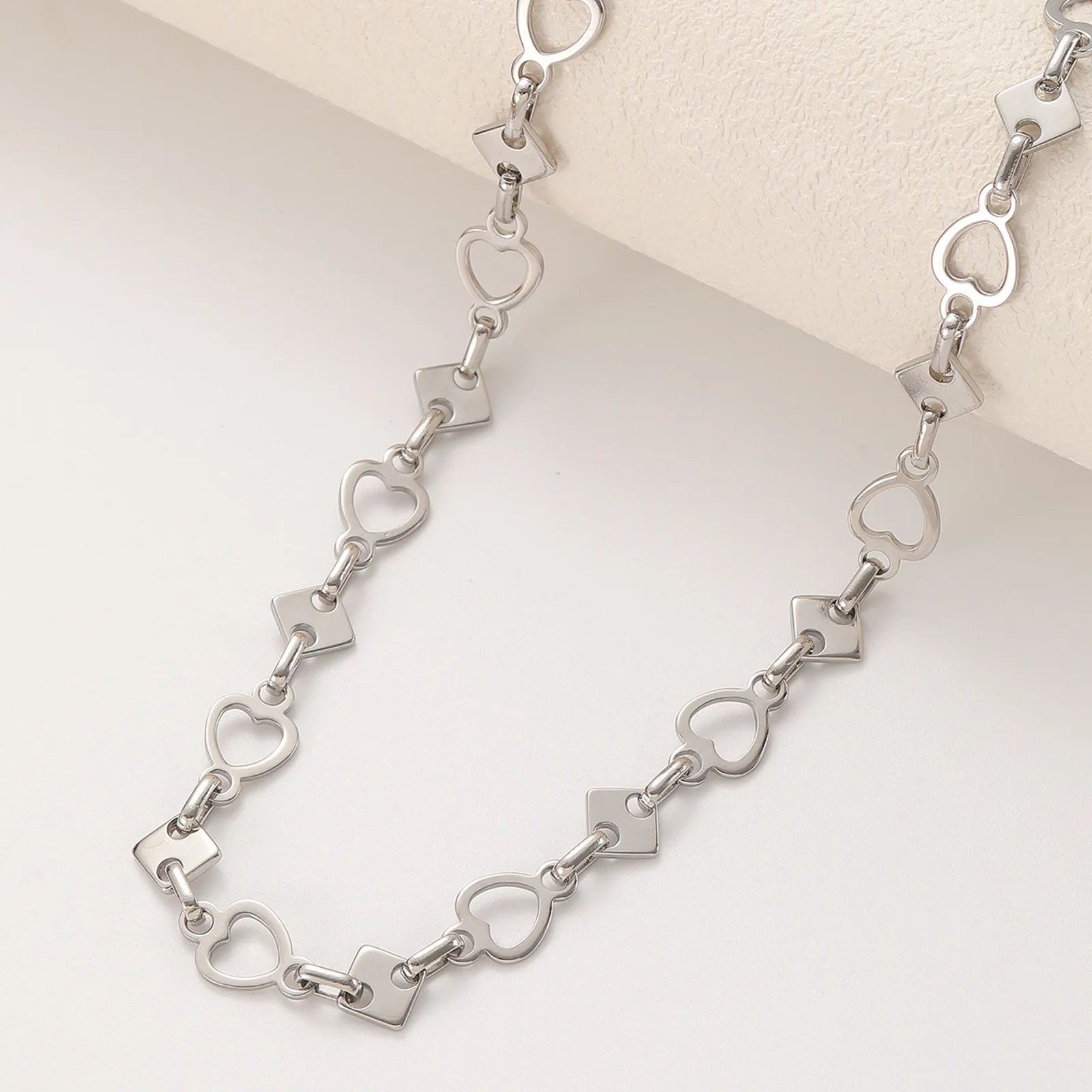 Diamond Square Love Splicing New Stainless Steel Heart Bamboo Women's Sporty Necklace Bracelet Clavicle Chain DIY Chain