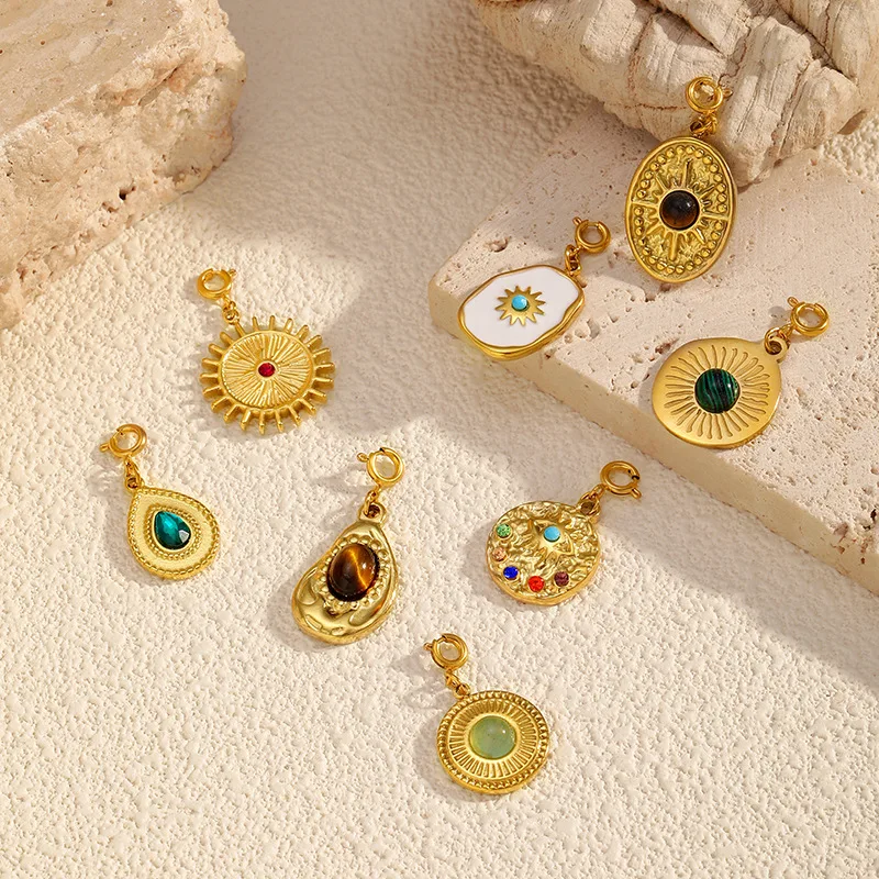 Cross-Border Stainless Steel Furnace Vacuum Electroplating Non-Fading Natural Stone Trendy Necklace Bracelet DIY Pendant Hanging
