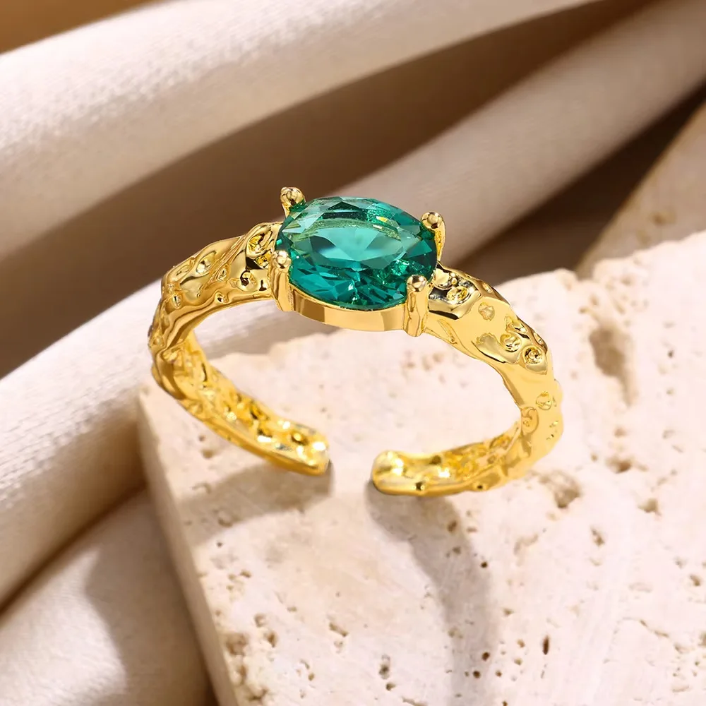 MW Wholesale Women's Trendy Retro Style Ring Natural Stone Stainless Steel Advanced 18K Gold Plating Geometry Fashion Ring
