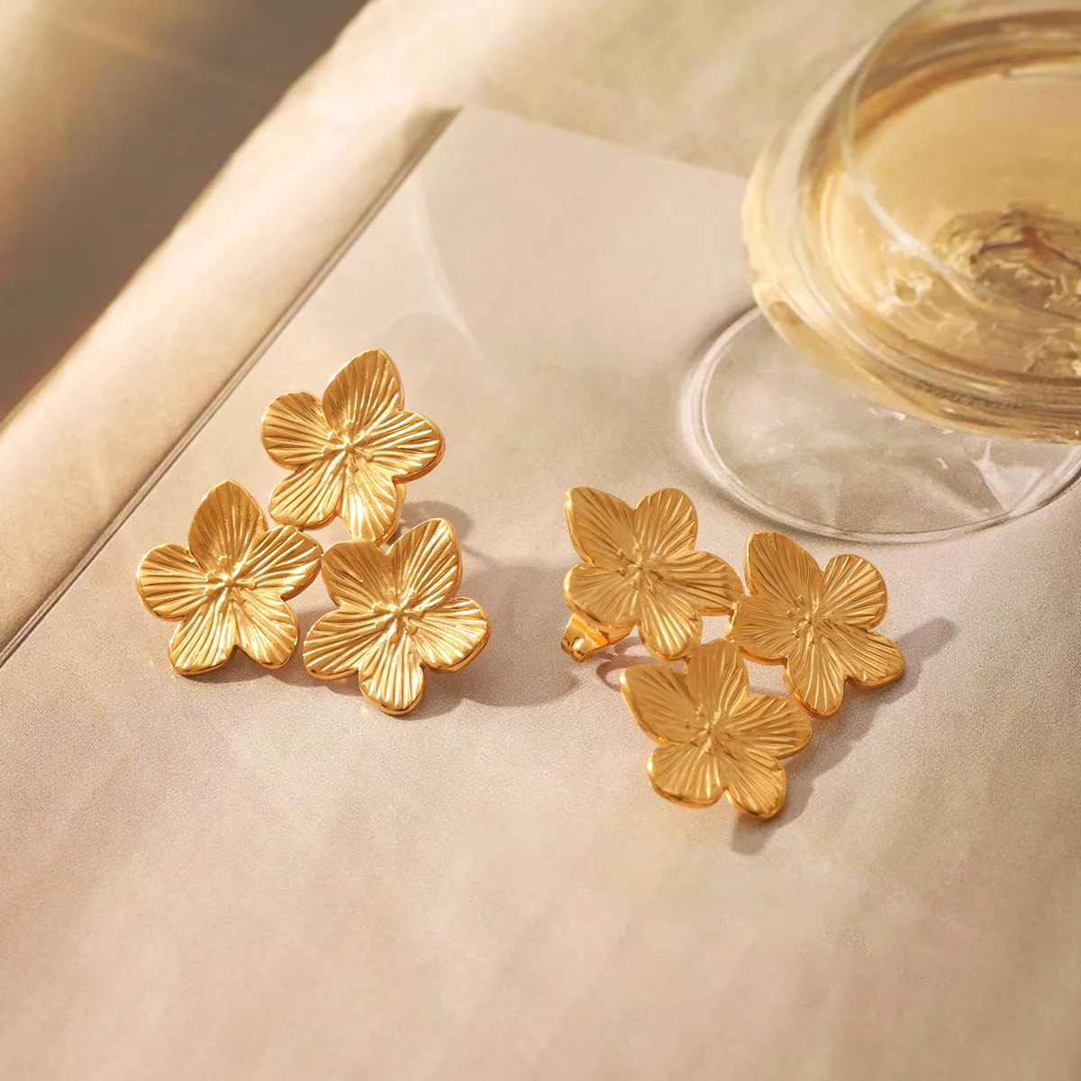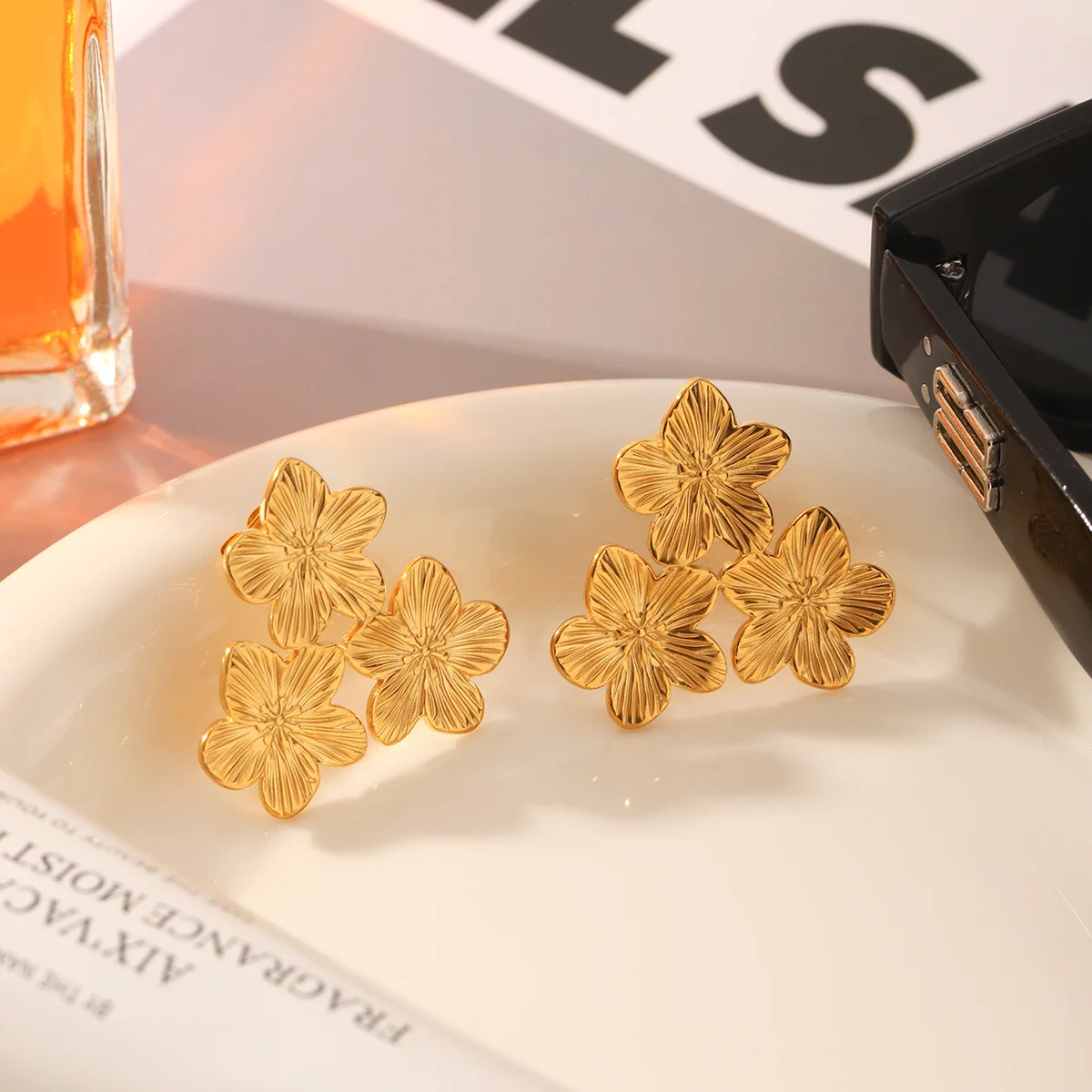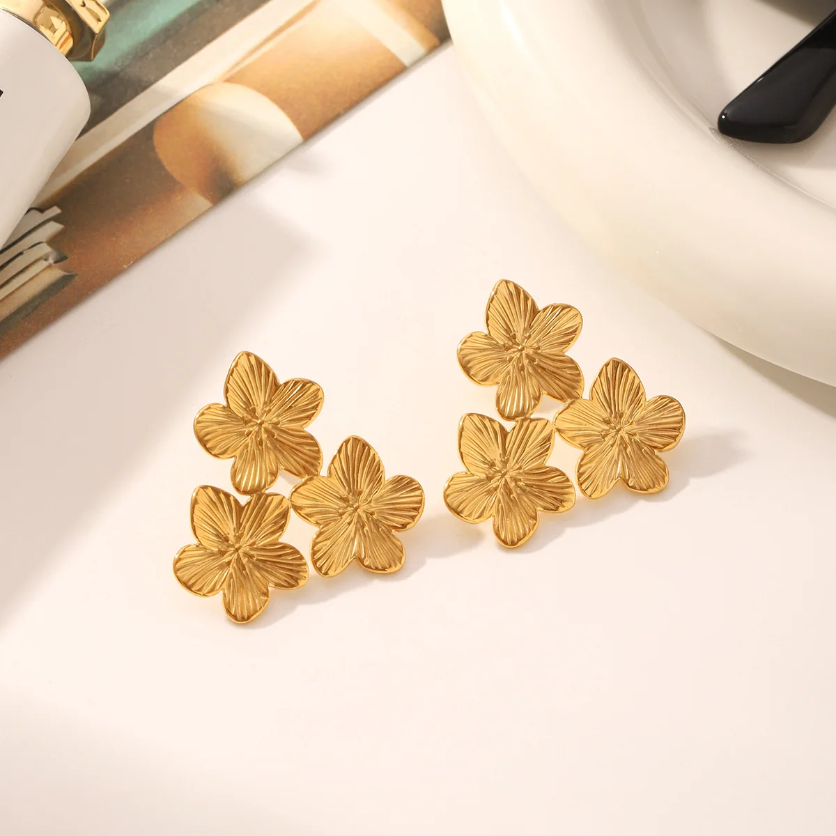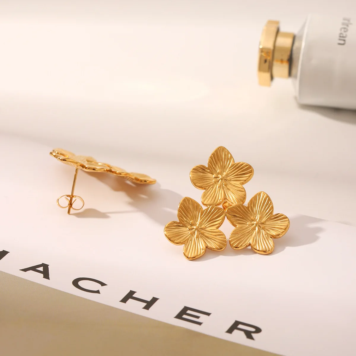 MW New Design Gold Plated Stud Earrings Stainless Steel Flower Shape Stud Earrings Women Trendy Party Wholesale