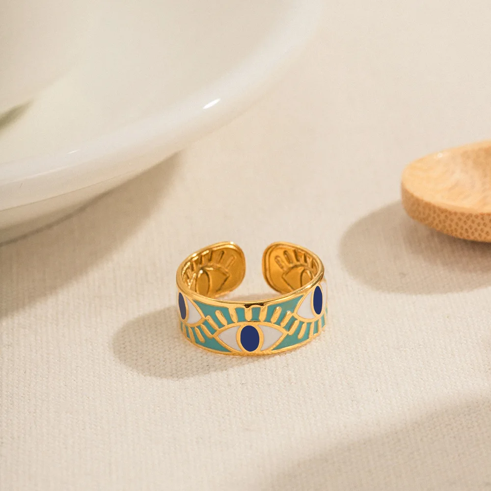 MW Women's 18K Gold-Plated Stainless Steel Fashionable Minimalist Jewelry - French Retro Eye Design Mysterious Non-Tarnish Ring