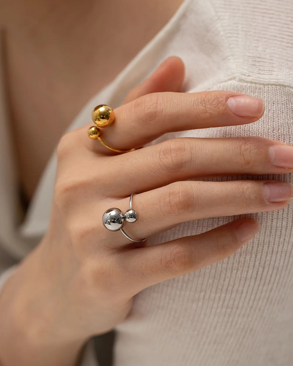 MW Women's Simple and Stylish 18K Gold - Plated Stainless Steel Open - Adjustable Ring, Punk - Style Beaded Jewelry