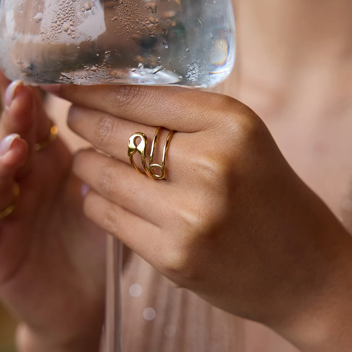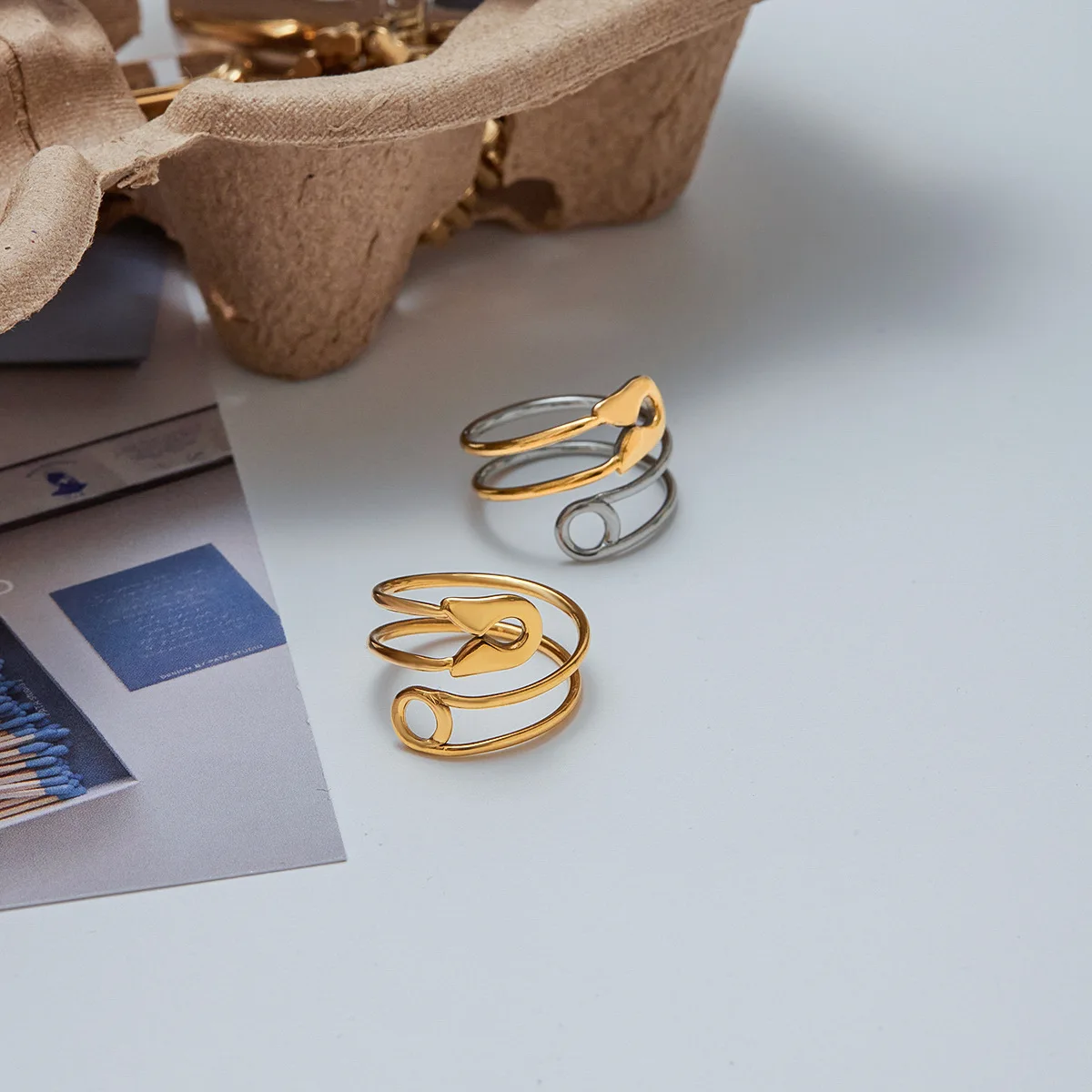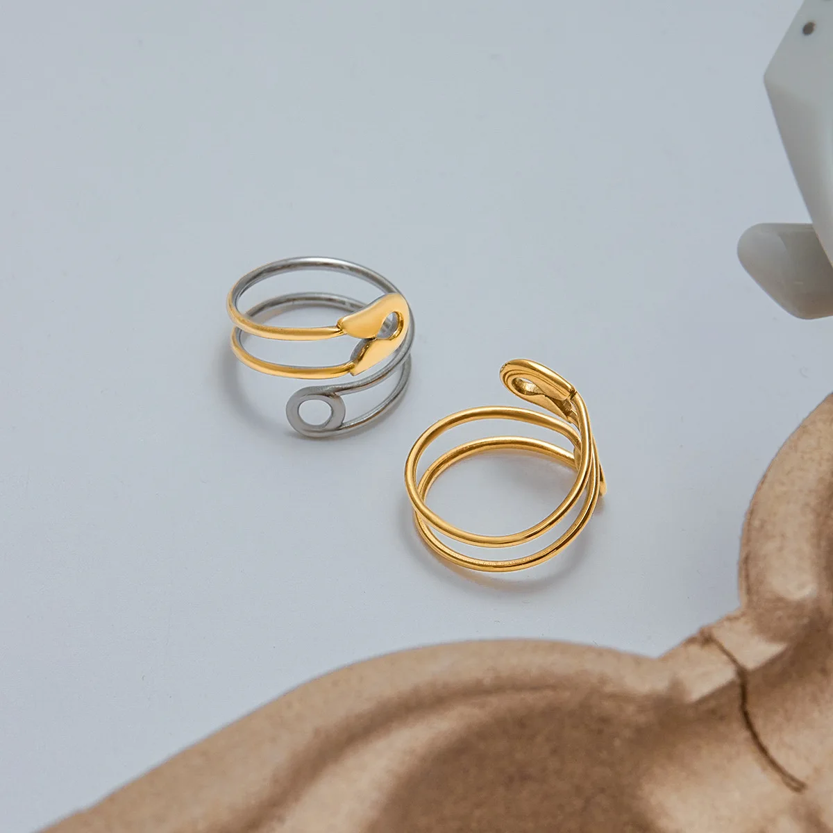 MW Women's 18K Gold-Plated Stainless Steel Minimalist Double-Layer Hollow Paper Clip Adjustable 316l Stainless Steel Rings