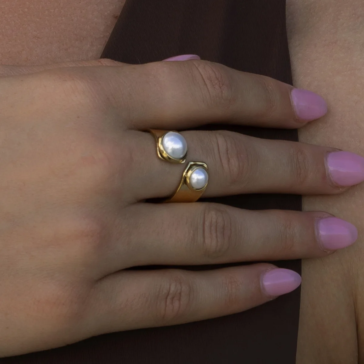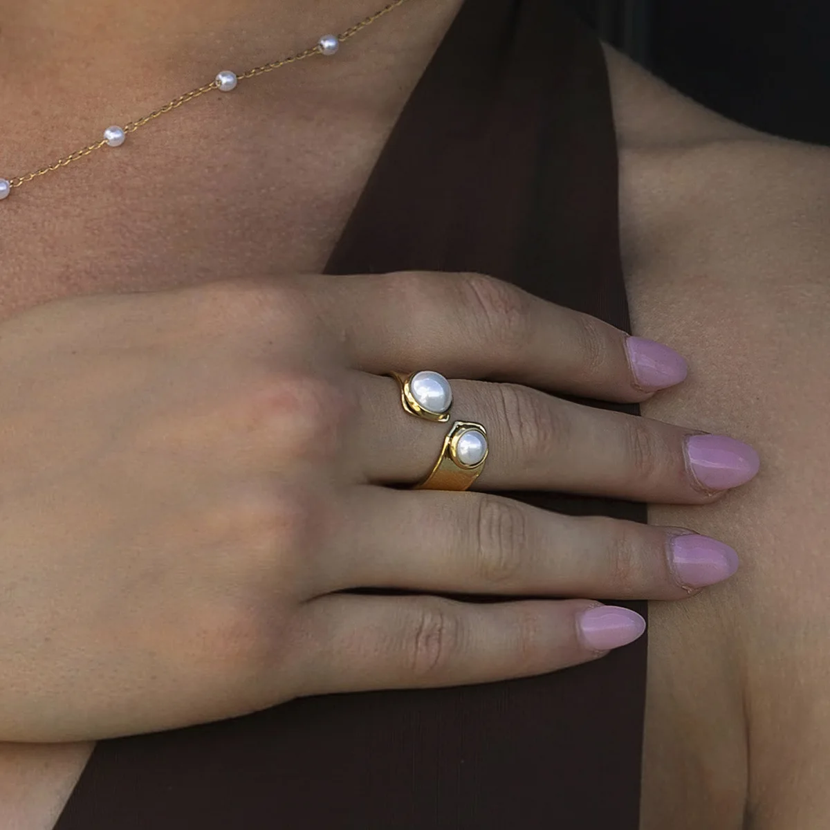MW Women's Fashion 18K Gold-Plated Stainless Steel Ring with Pearl Inlay - Minimalist & Personalized, Waterproof Jewelry