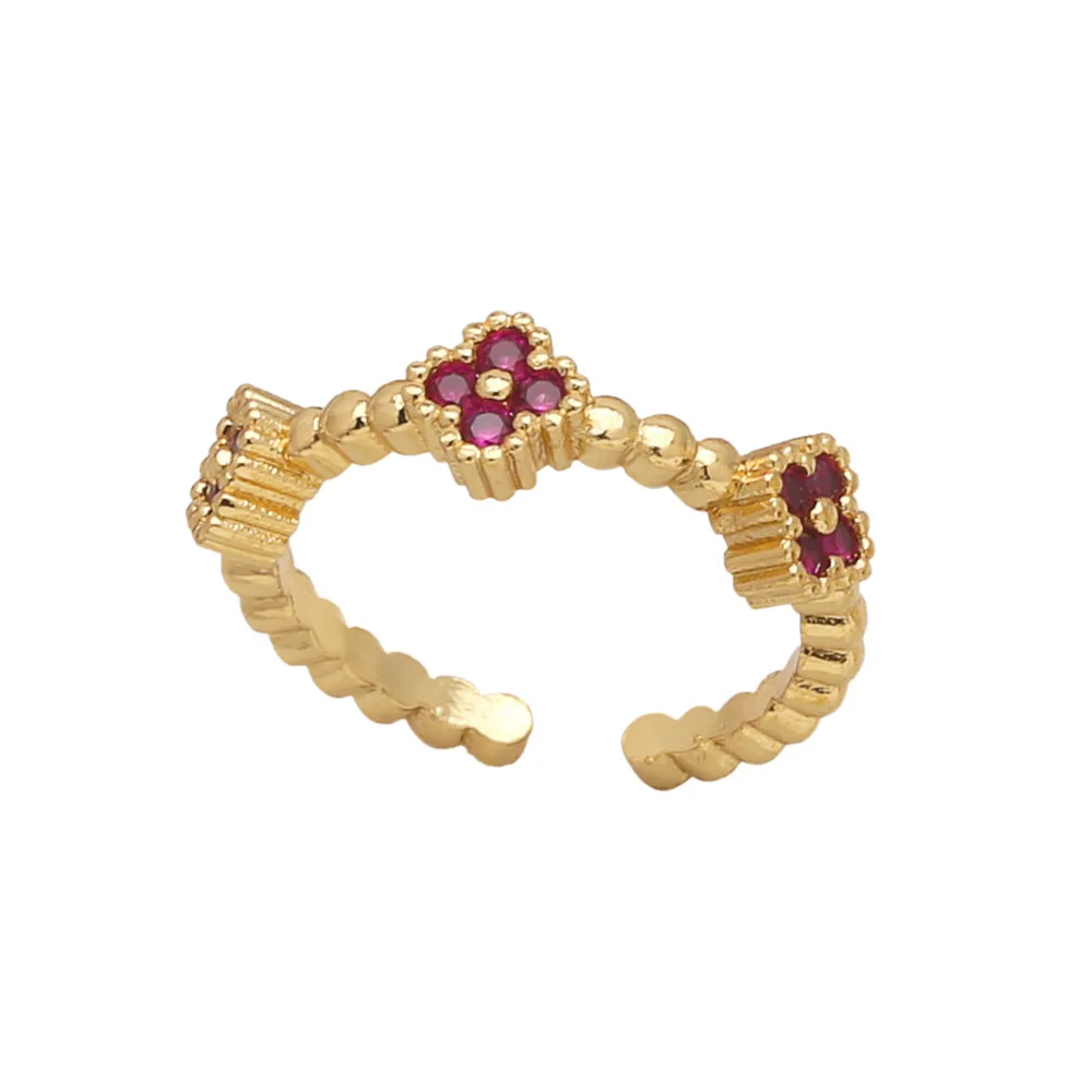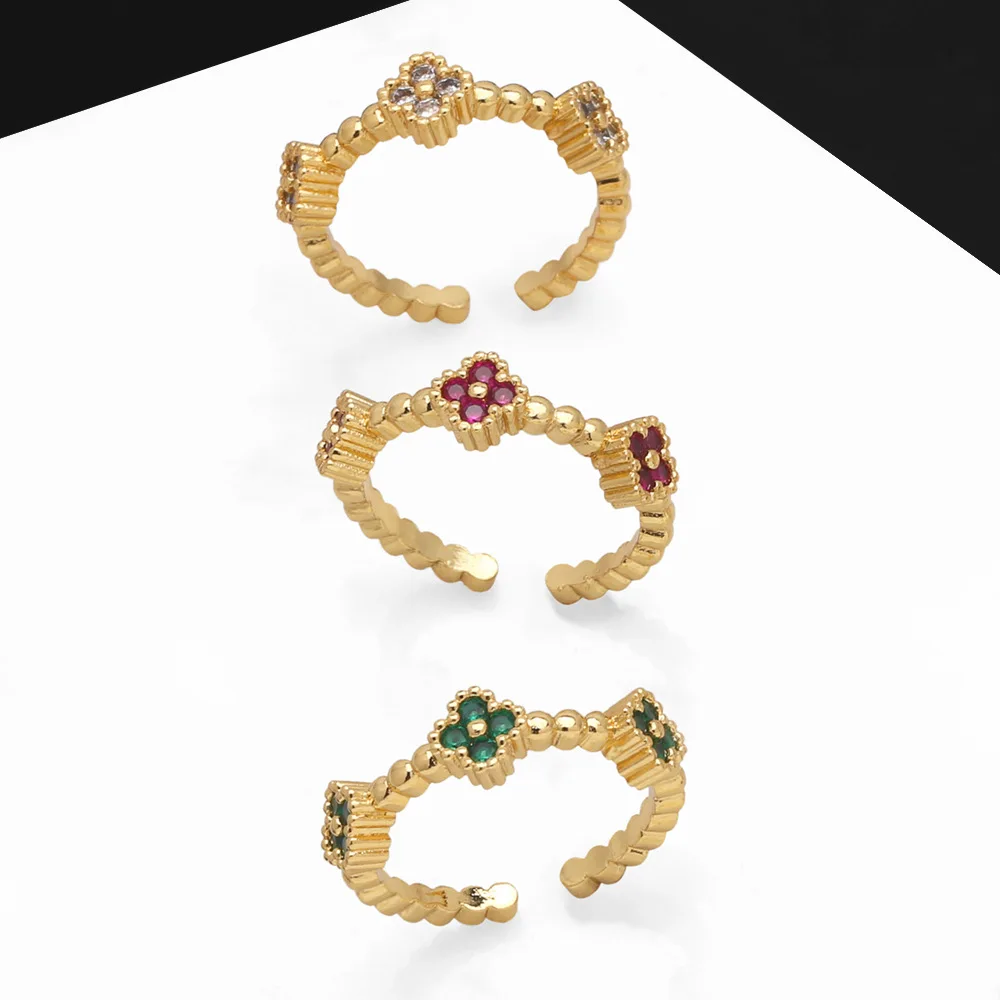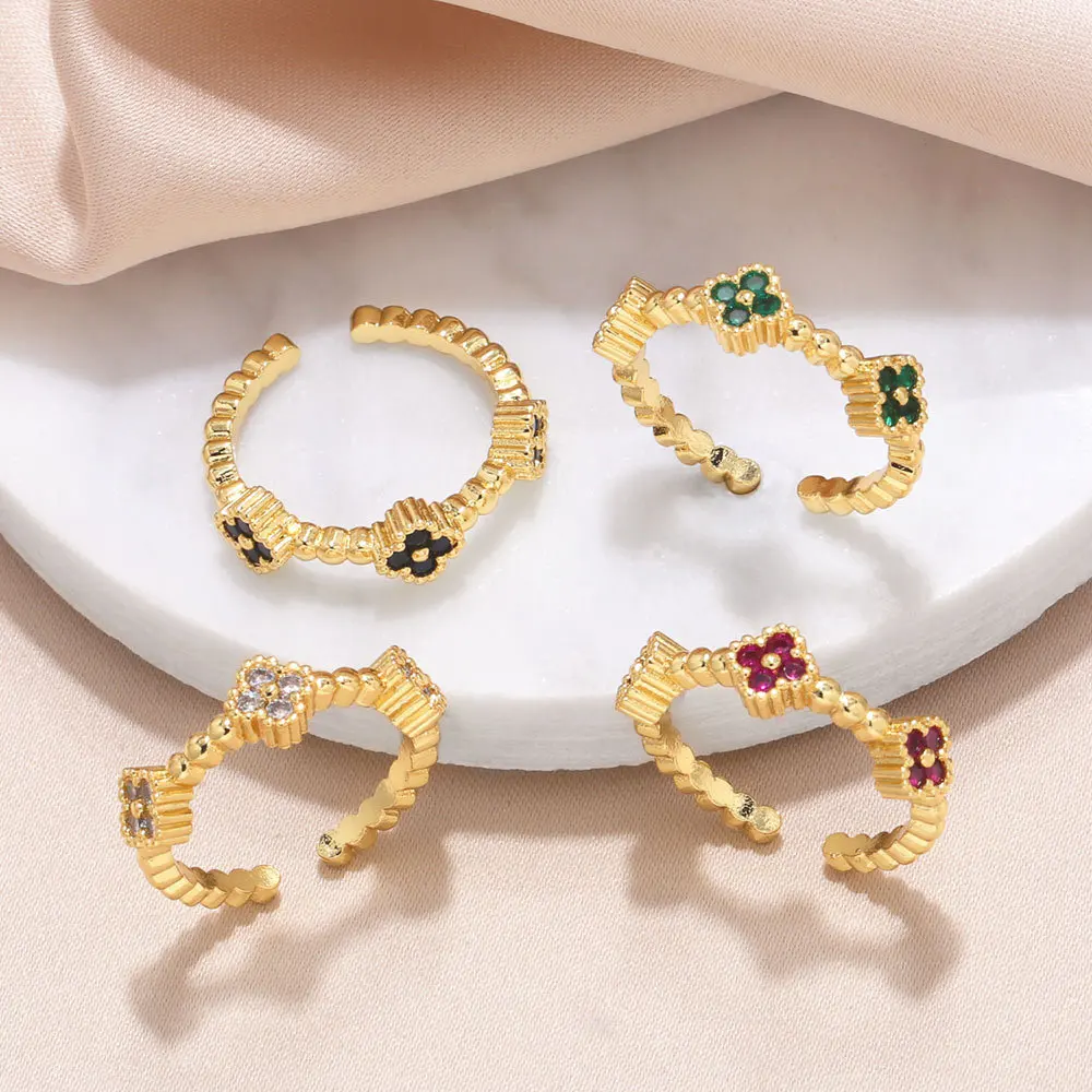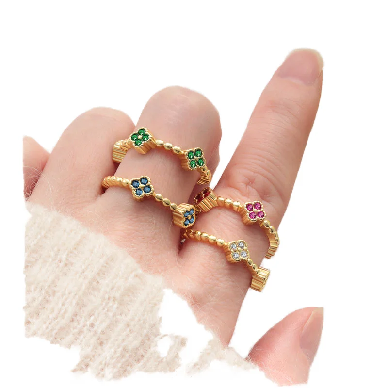 MW Valentine's Day Gift Luxury 18K Gold Stainless Steel Zircon Copper Inlaid Colorful Fresh Four-leaf Clover Sweet Ring