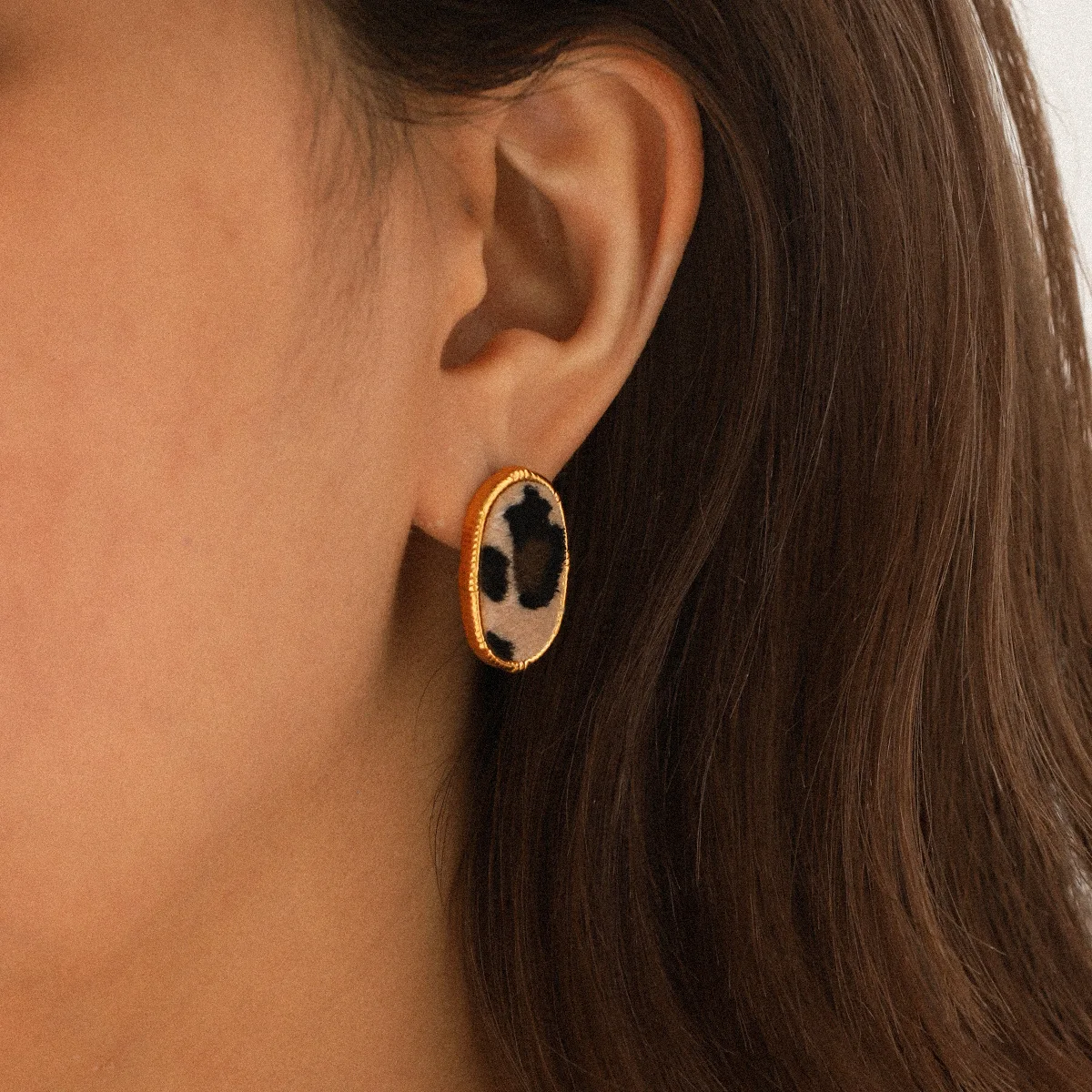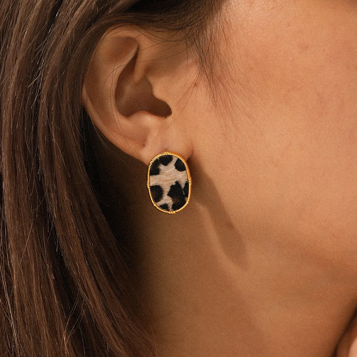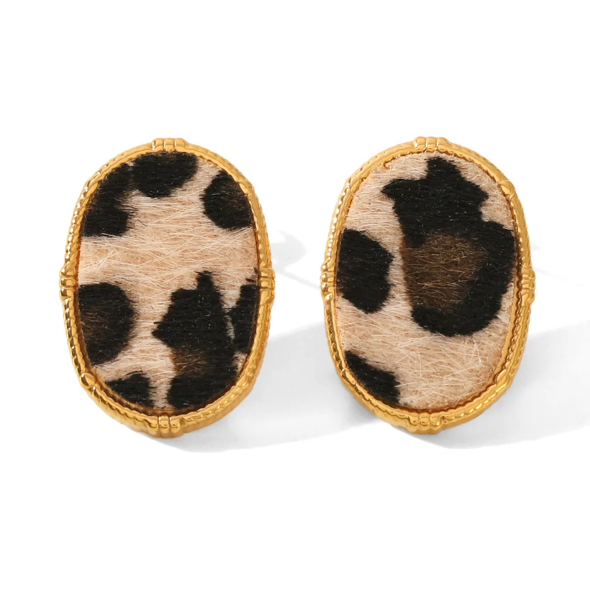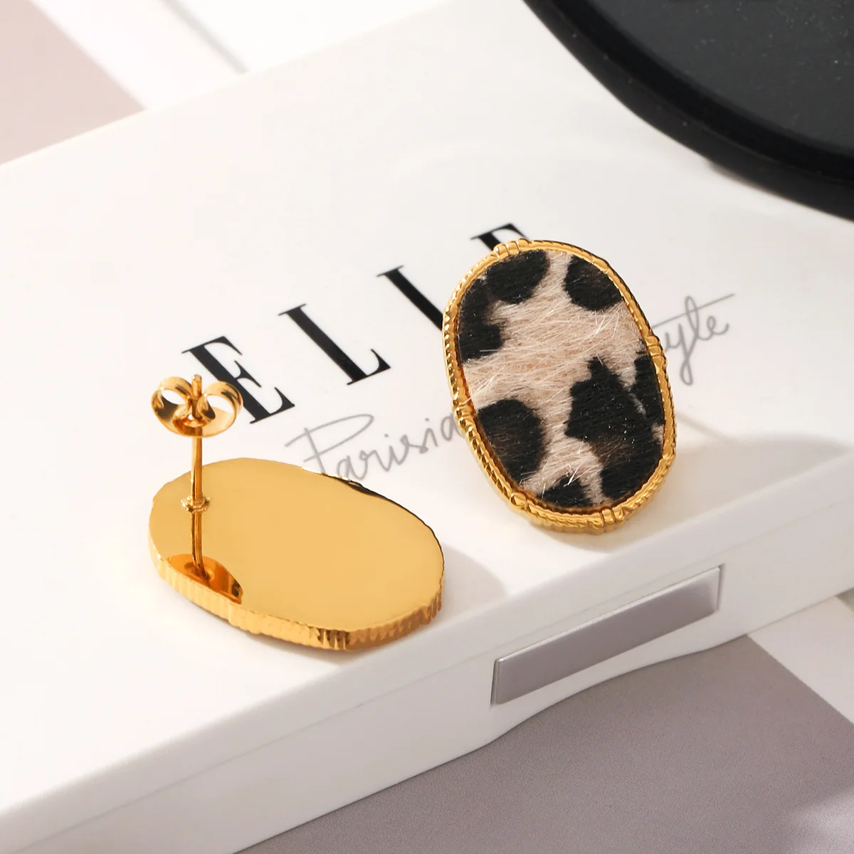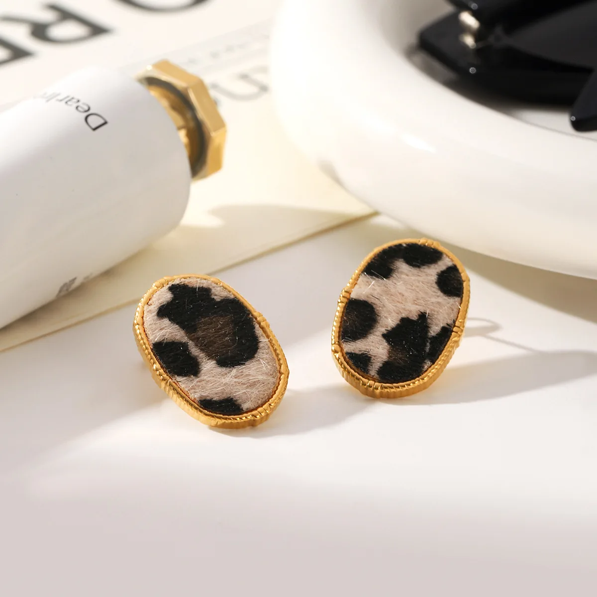 MW Light Luxury High-end Non-fading Jewelry Vintage Gold Plated Stainless Steel Earrings Velvet Leopard Print Earrings for Women
