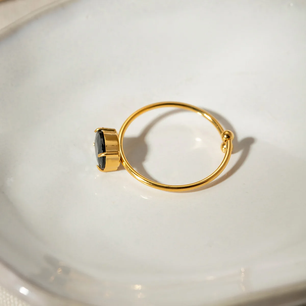 MW Women's Fashion 18K Gold-Plated Stainless Steel Ring with Oval Zircon Inlay - Minimalist, Adjustable & Open Design