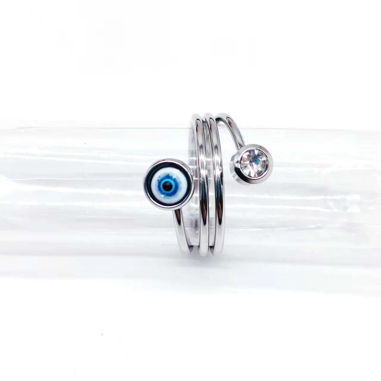 MW Simple Devil Eye Ring Adjustable Stainless Steel Ring for Unisex Trendy Silver Crystal Turkish Blue Eye Design Anniversary