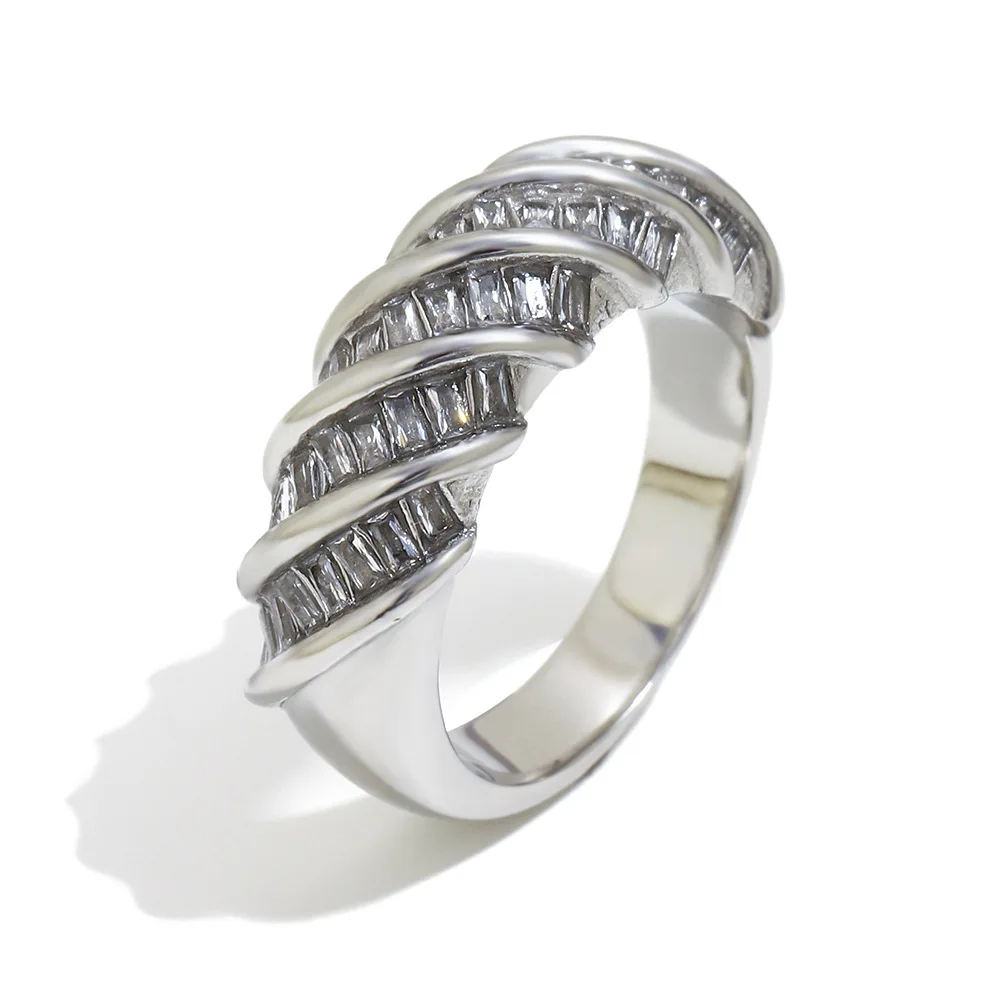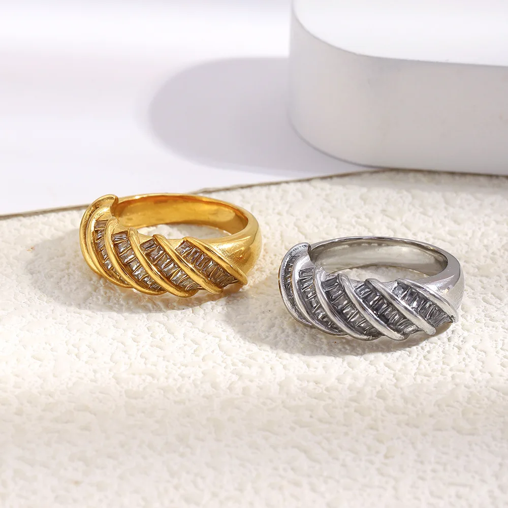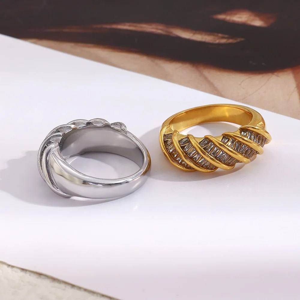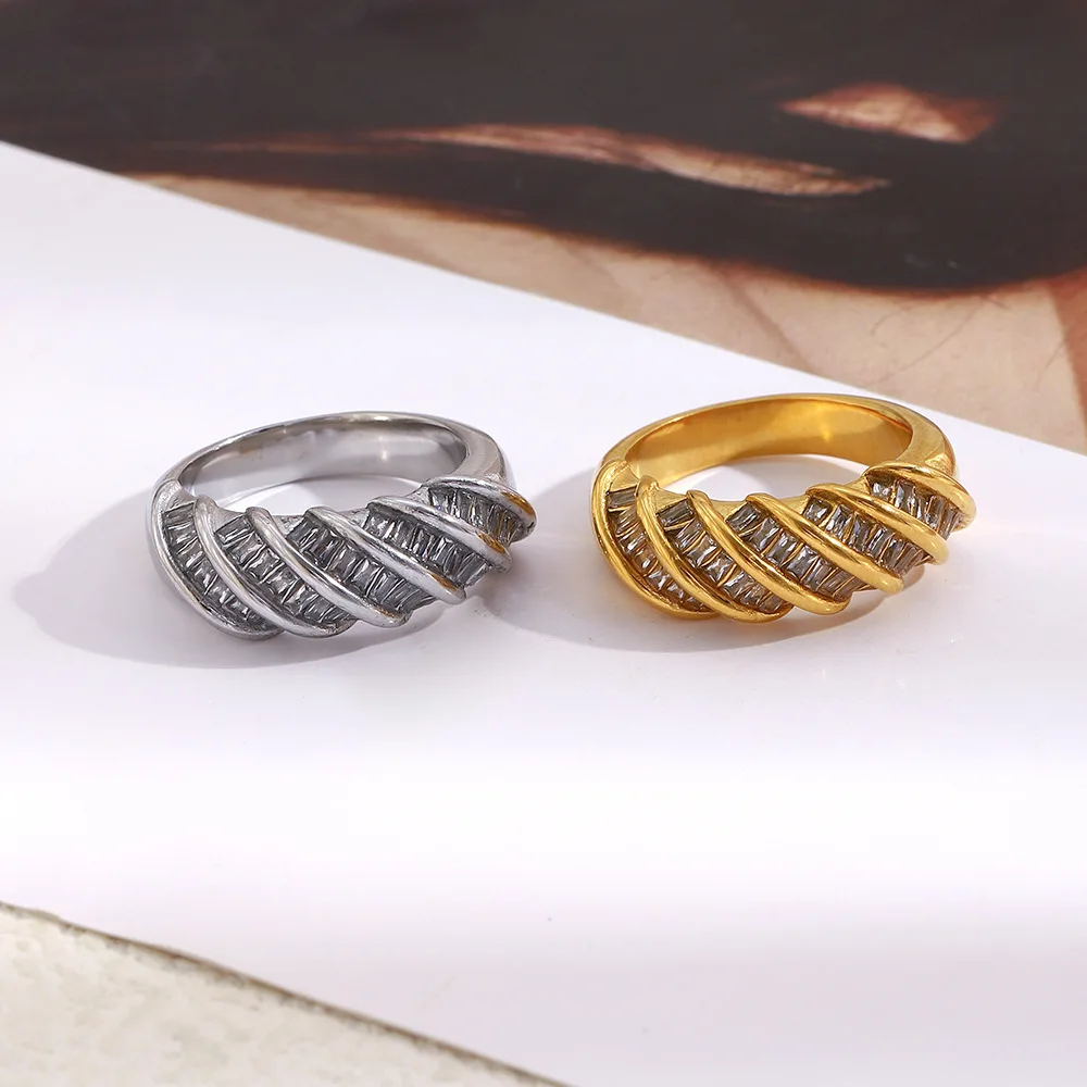 MW 18K Gold Plated Jewelry Man Ring Stainless Steel Trendy Wedding Unique Design Rectangle Zircon Winding Surface Women Rings