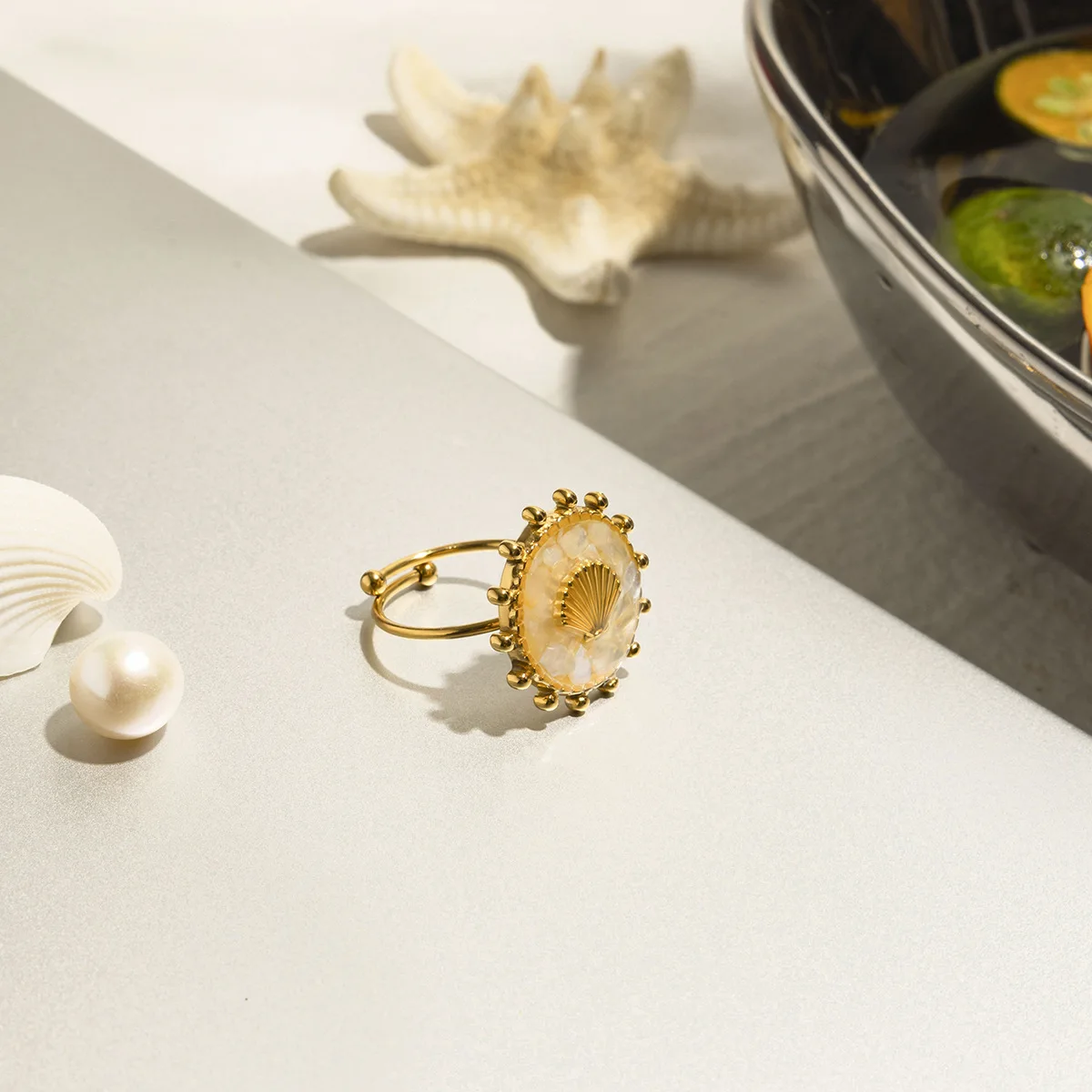 MW Women's Ocean-Themed 18K Gold-Plated Stainless Steel Ring Adjustable Opening Modern Shell Design