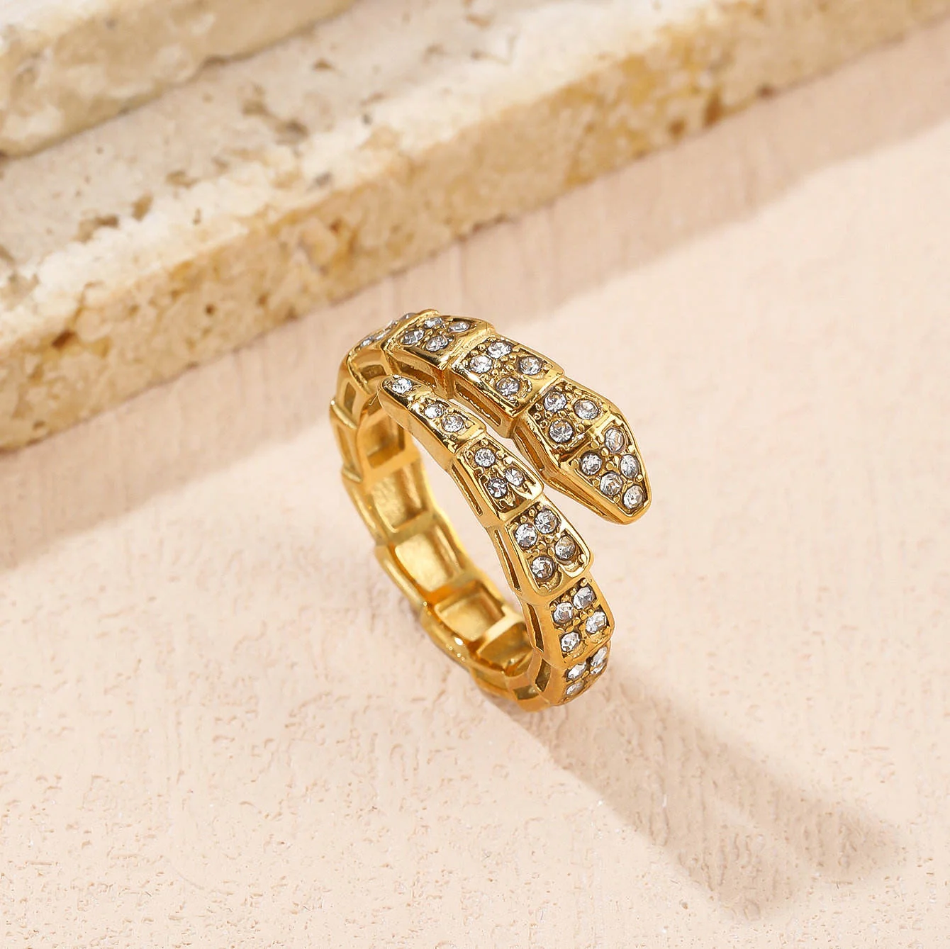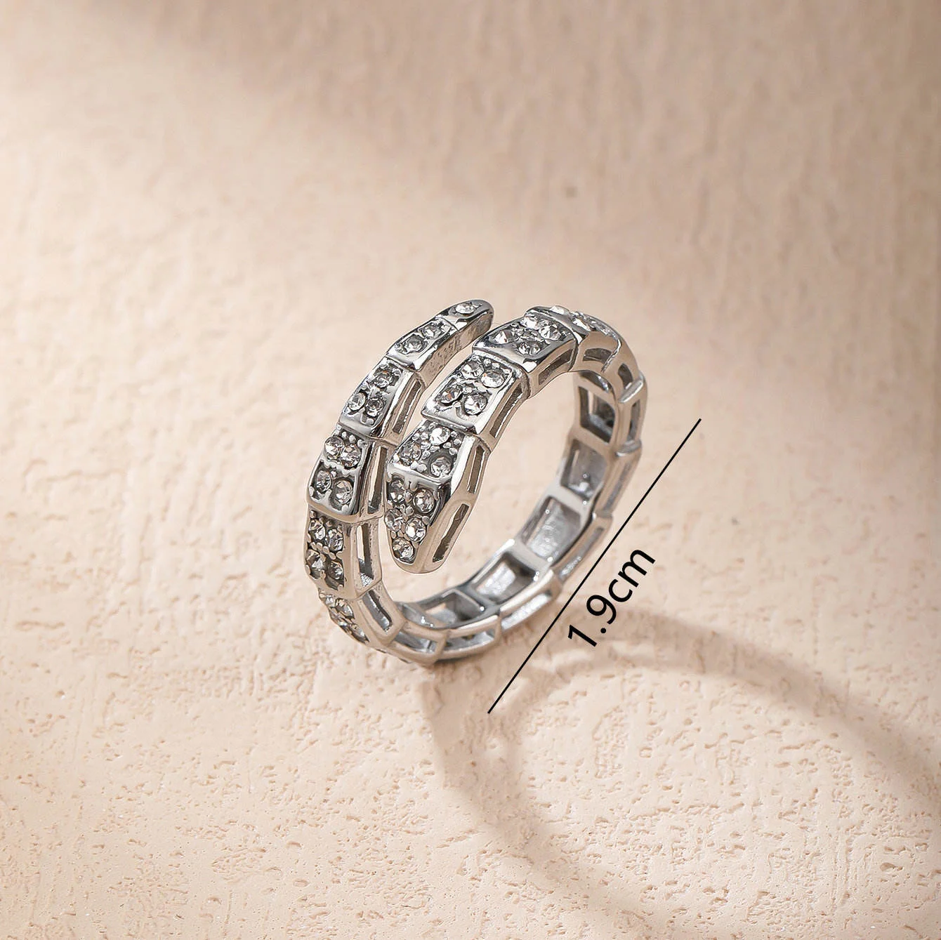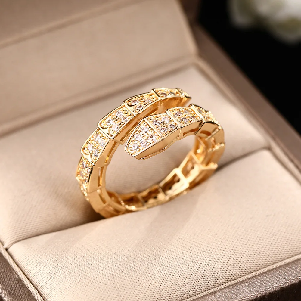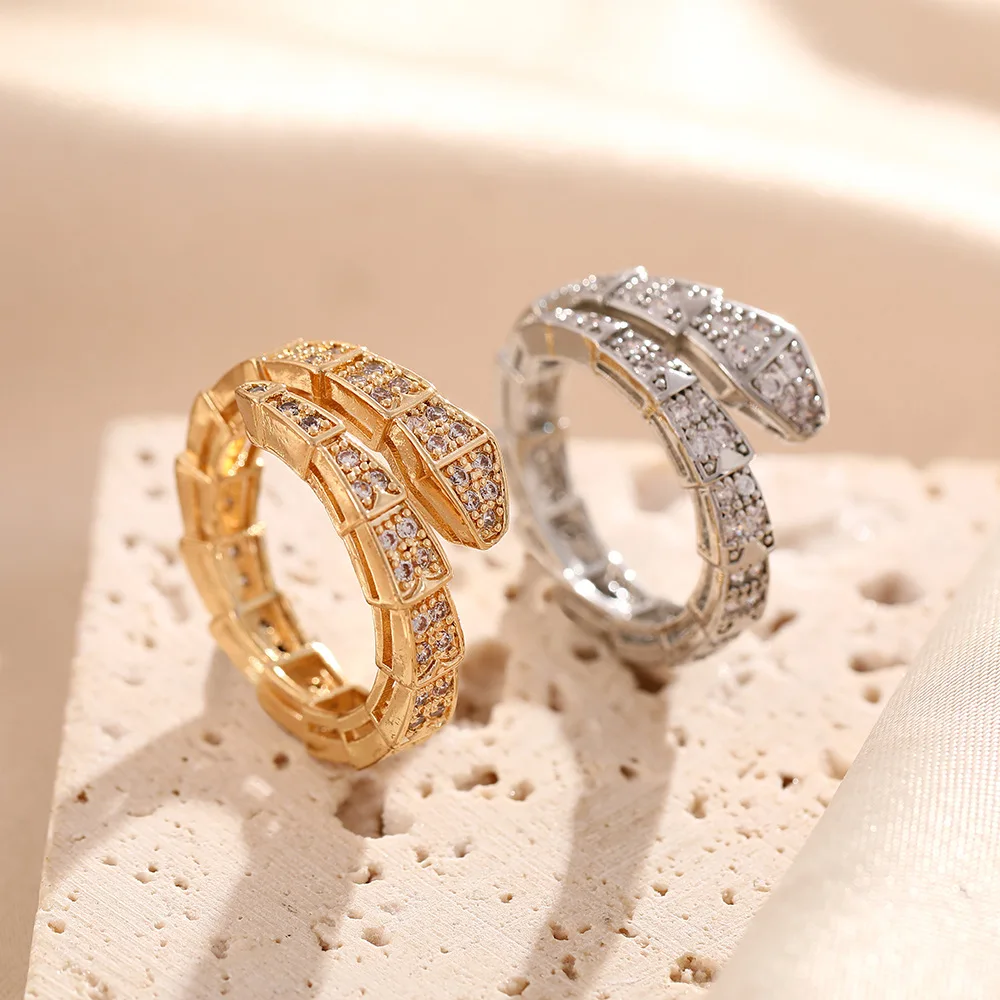 MW Trendy Hip-hop Diamond-Inlaid Designers Ring Zircons Gold Plated Stainless Steel Snake Ring Simple Geometric for Daily