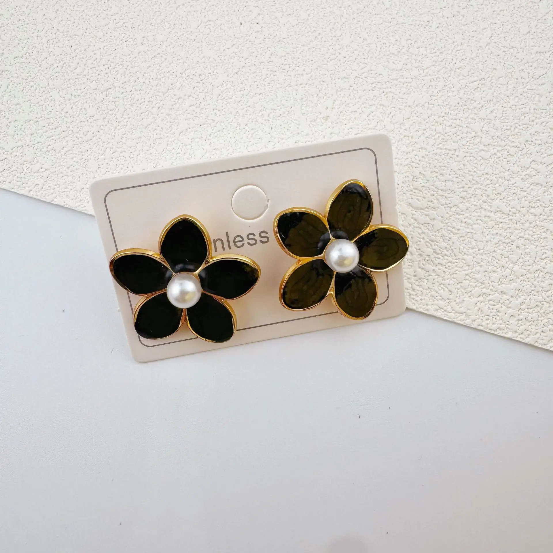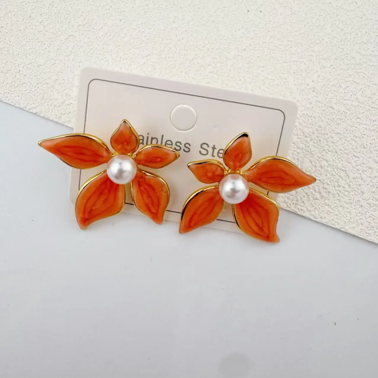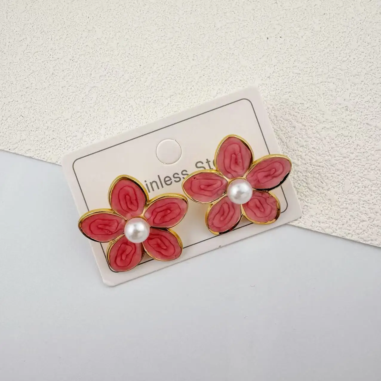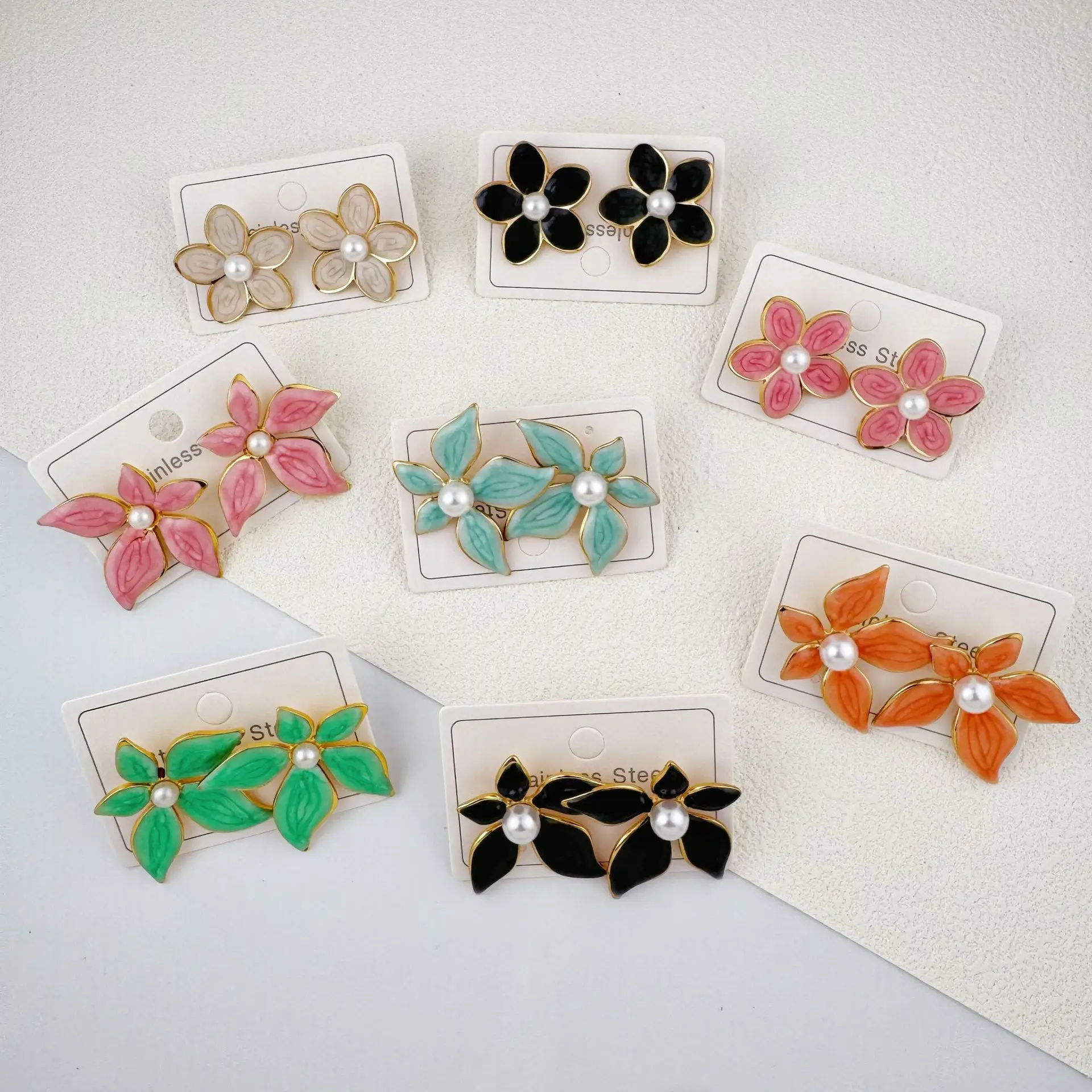 MW Simple Stainless Steel Metal Flower Shaped Plum Blossom Petals Stud Earrings Colorful Droplet Shaped Earrings Women