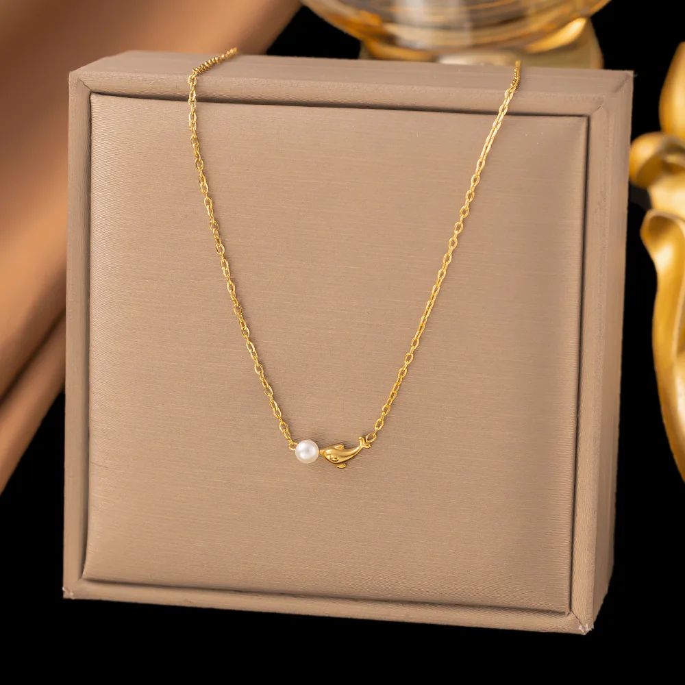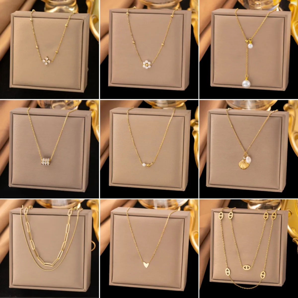 MW Wholesale Women's Fashion Minimalist 18K Gold-Plated Stainless Steel Diamond-Studded Water Drop & Flower Necklace