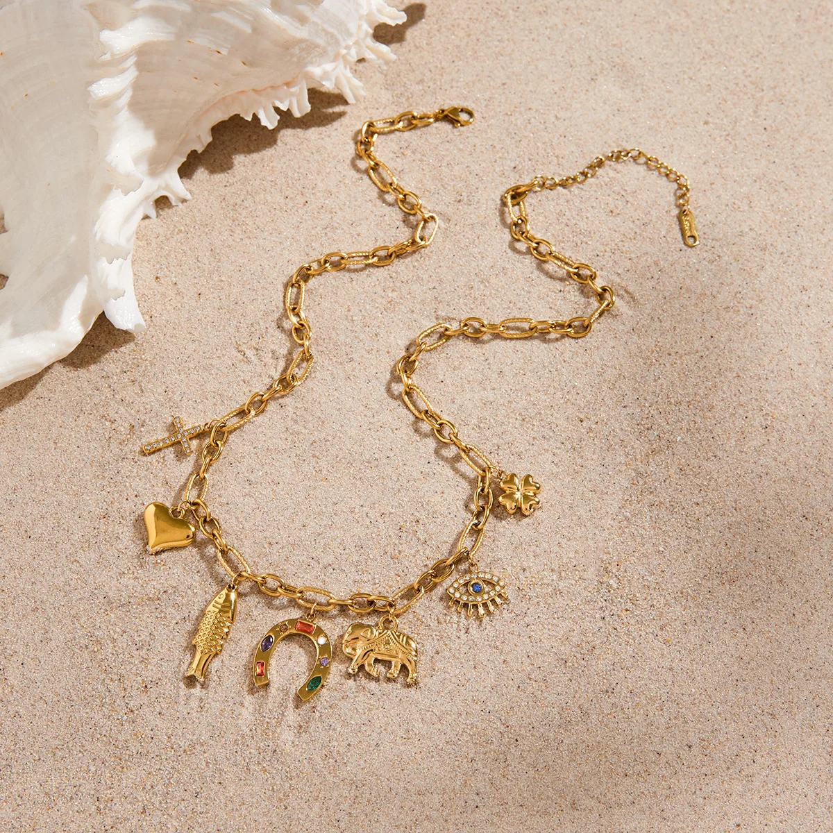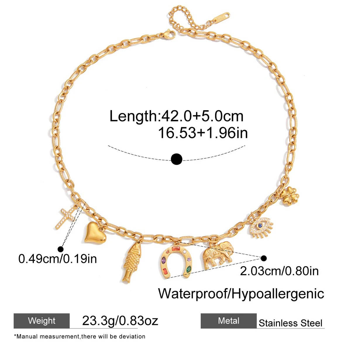 MW 18K Gold Plate Stainless Steel Necklace Classic Zircon Cross Heart Fish Devil Eye Pendant Necklace for Women Gift Wholesales