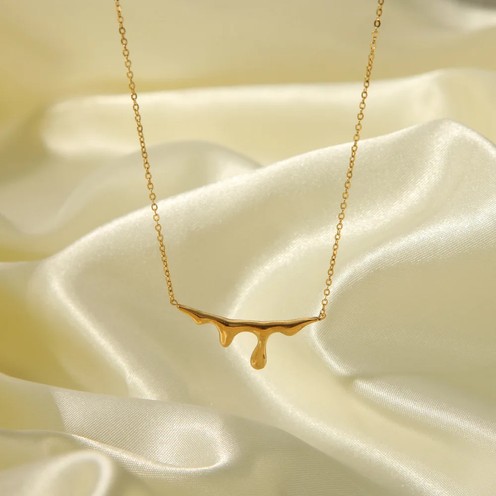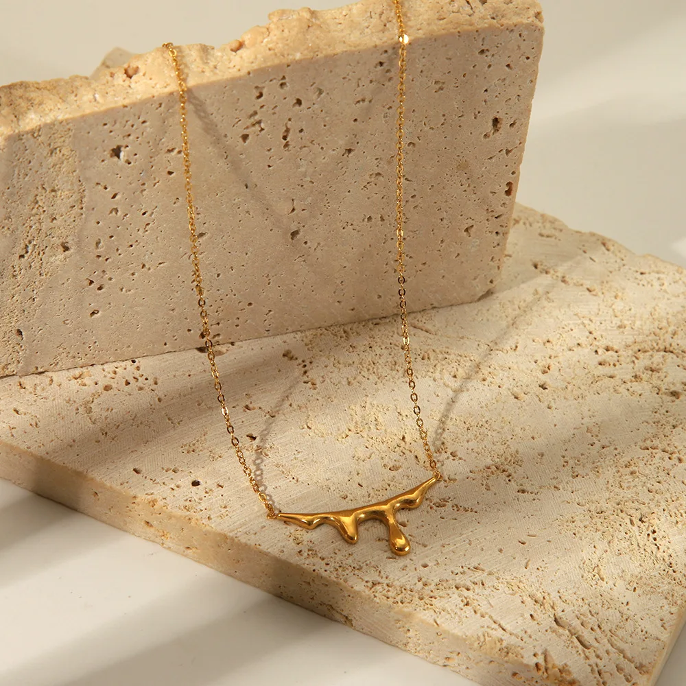 MW Women's Minimalist Ins-Style 18K Gold-Plated Stainless Steel Lava Water-Drop Shape Necklace