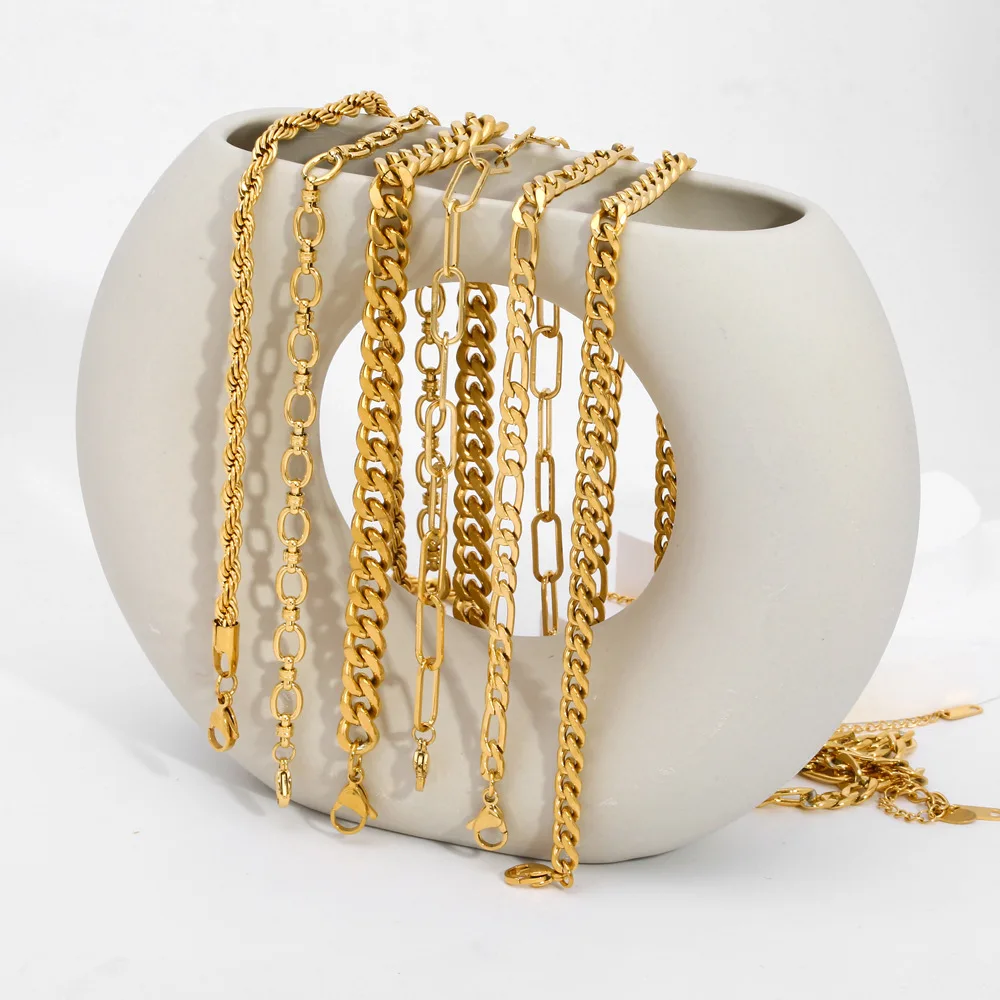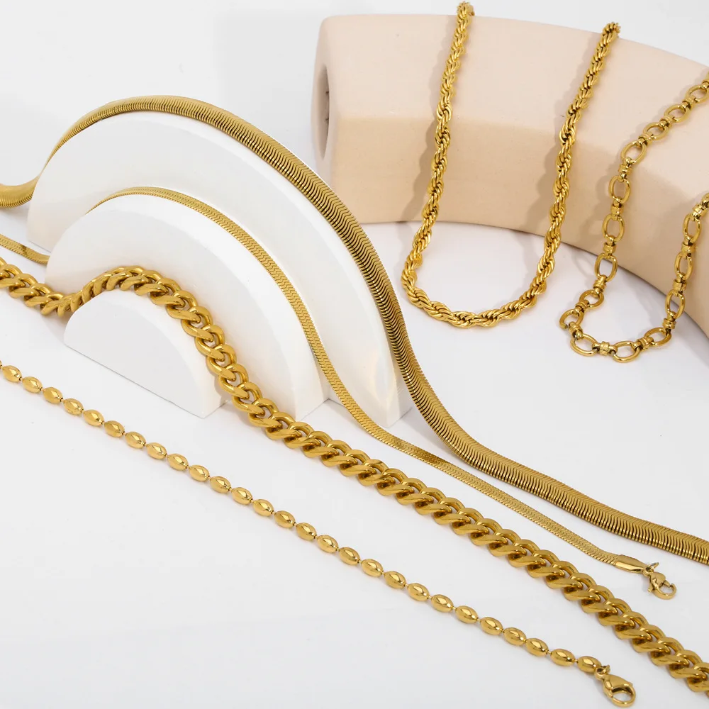 MW Hypoallergenic 18K PVD Gold Plated Stainless Steel Necklace - Women's Herringbone Cuban Paper Clip Chain Anti-Tarnish Fashion